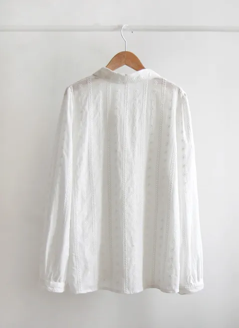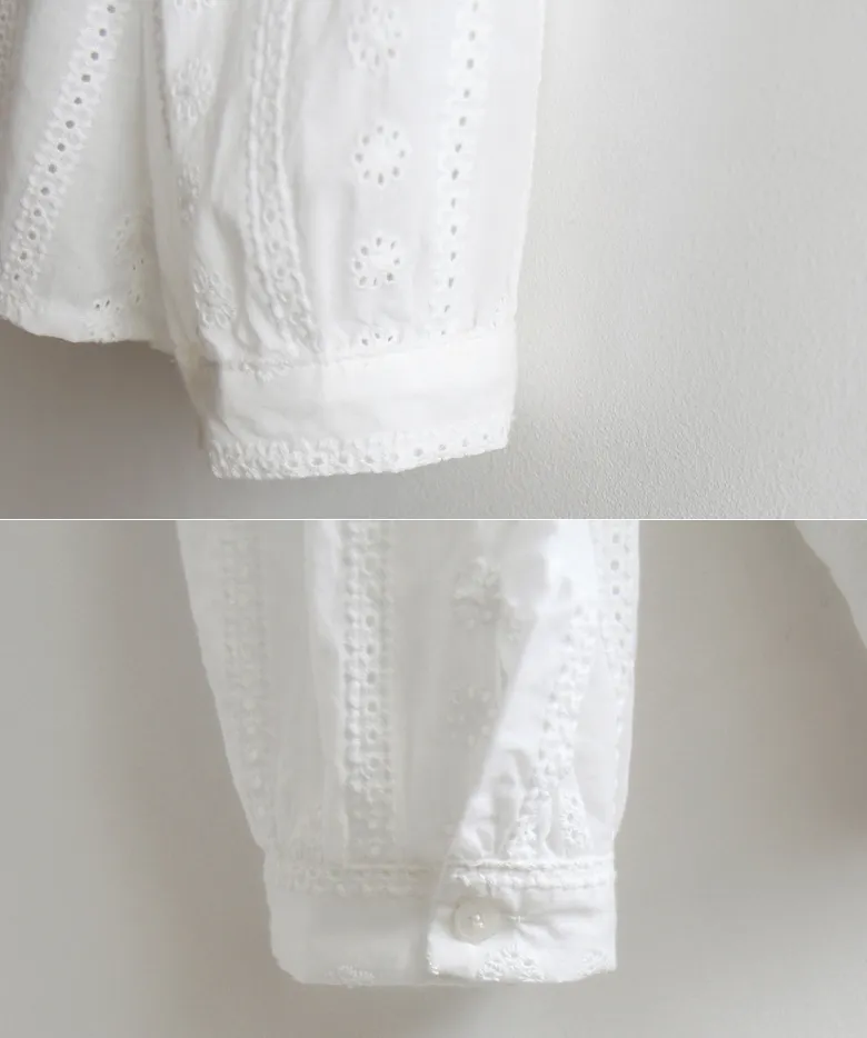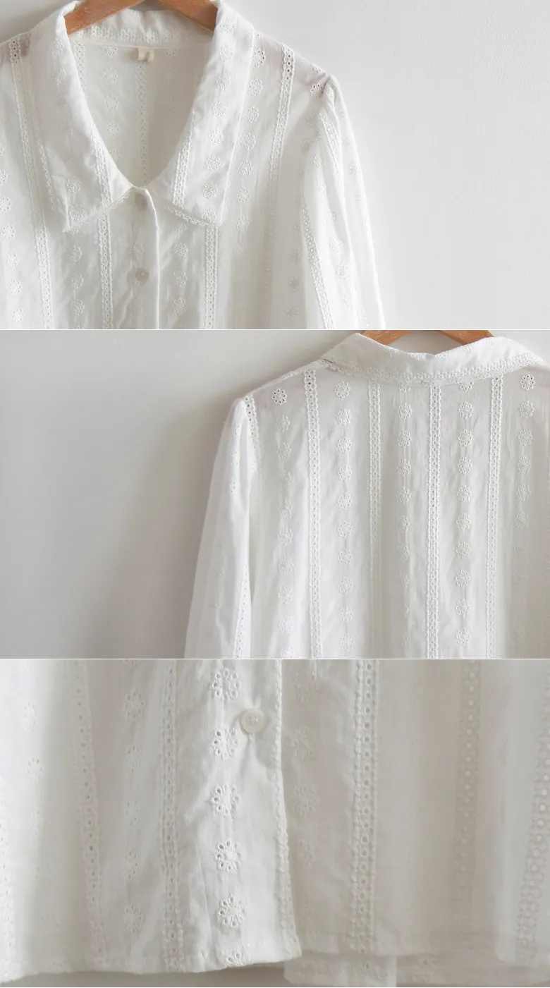 可愛迷你蕾絲飾邊領鏤空花朵刺繡排扣上衣