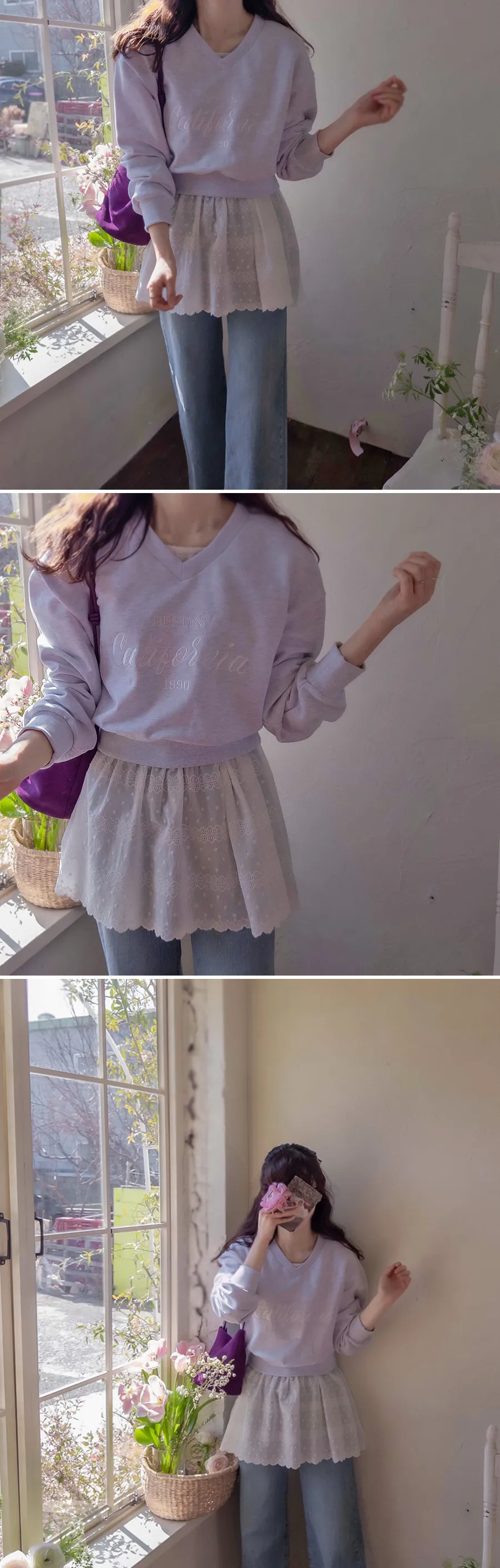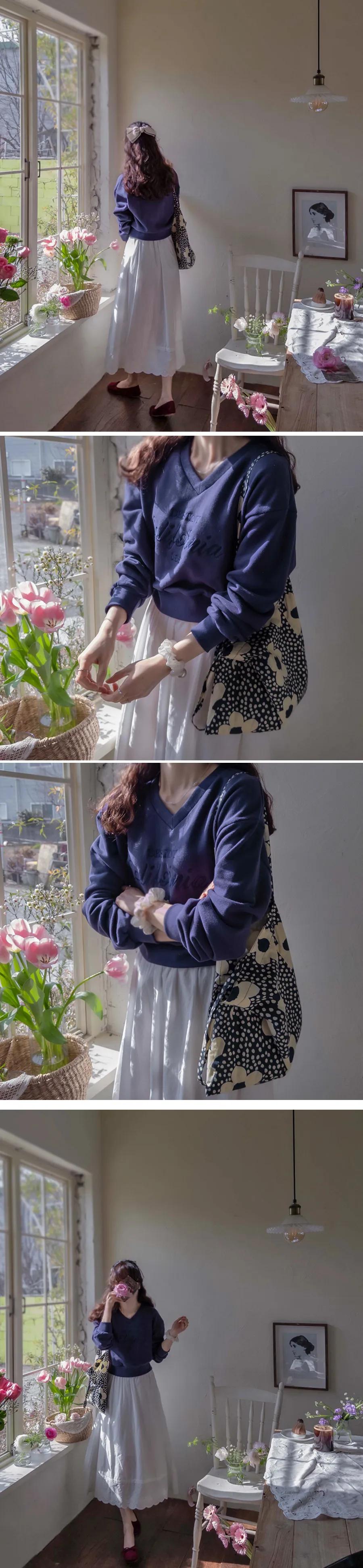 [適合日常穿著直至春季的 V 領上衣] [以字母為焦點的時尚上衣] [舒適的面料,易於穿著,可以搭配時尚的款式] [季節性色彩的精緻感]