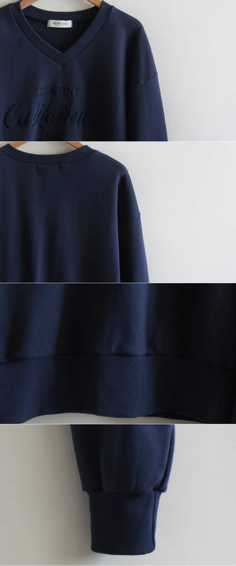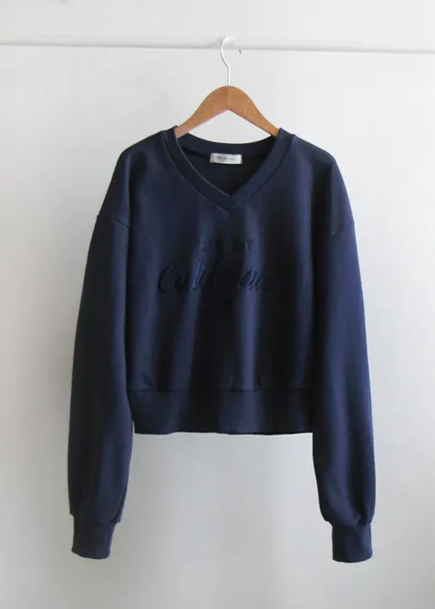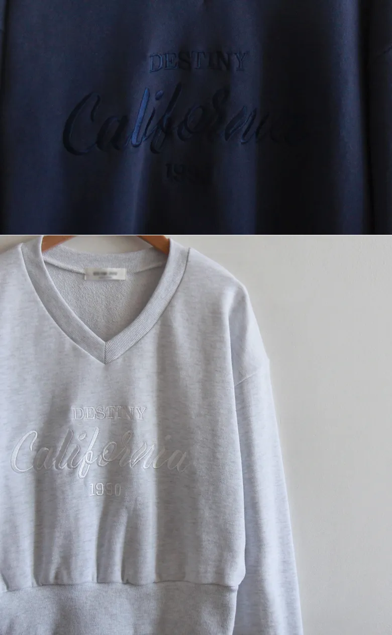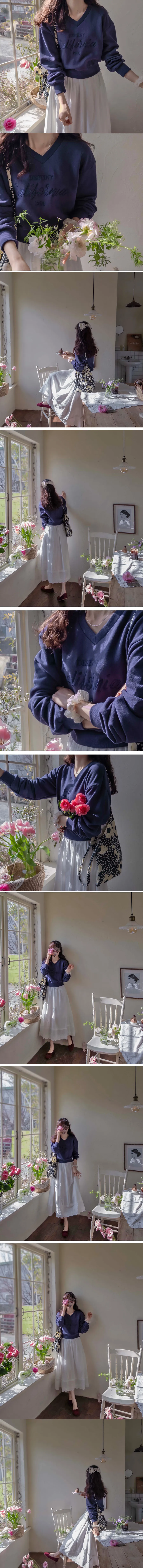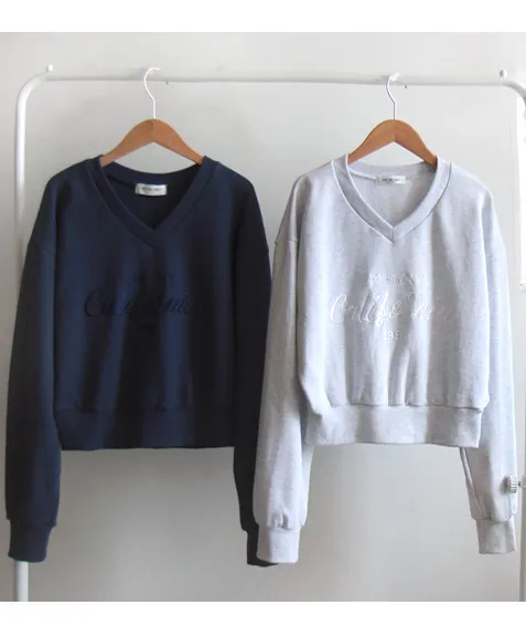 日常穿搭字母刺繡V領基本款上衣