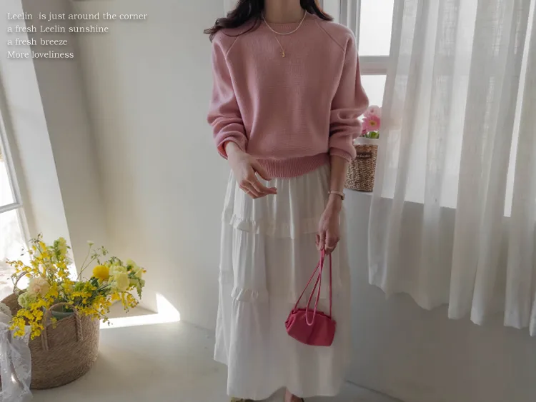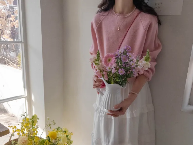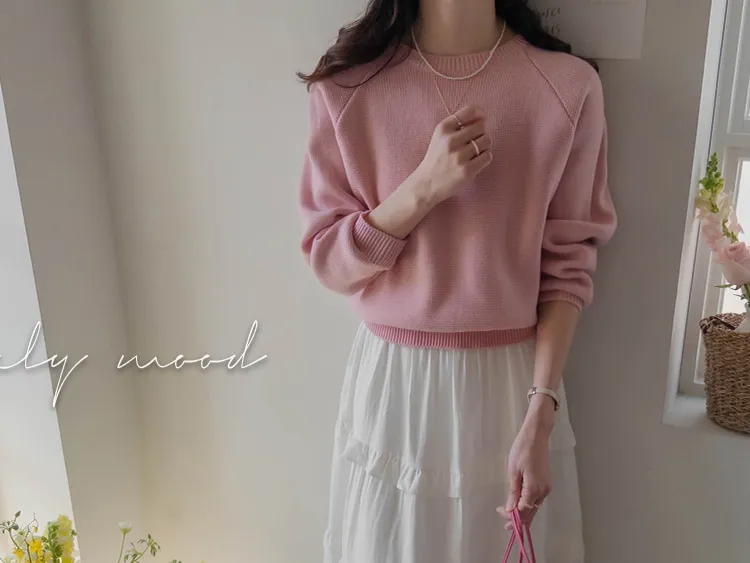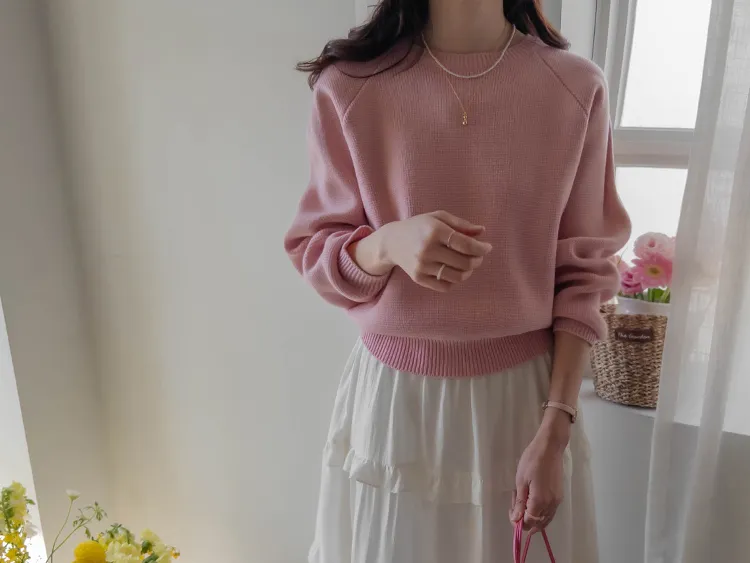 簡約華夫格編織圓領落肩針織上衣