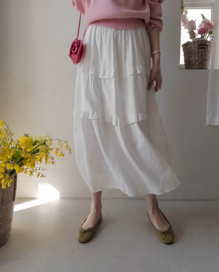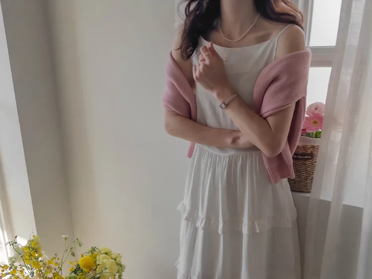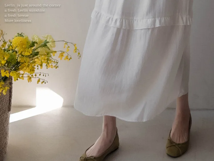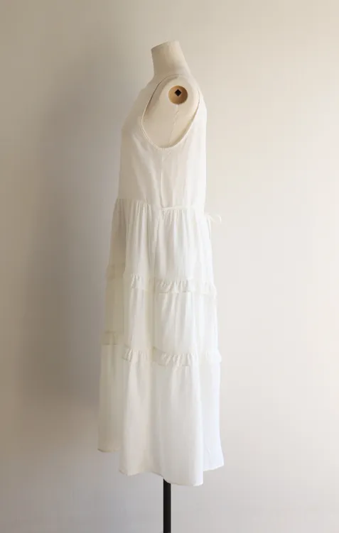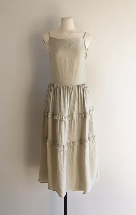 [可進行各種疊穿的褶邊層次裙擺連身裙♥] [可調整腰帶,完美貼合您的身材! ] [搖曳〜柔軟的面料,可從春季穿到夏季♥] [可覆蓋下身線條]