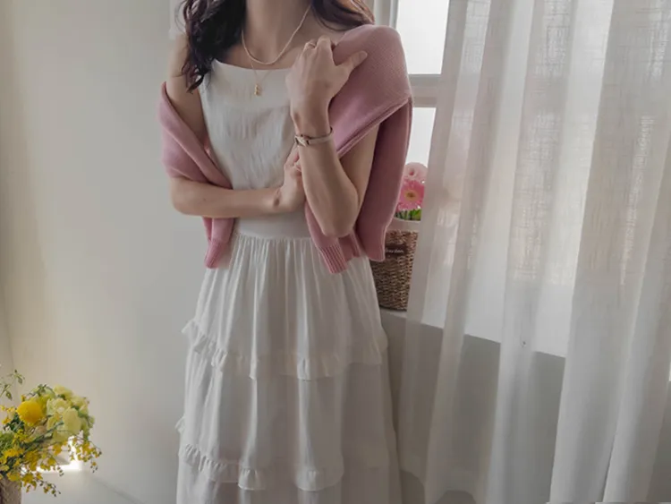 飄逸穿搭腰綁帶褶邊層次裙擺連身裙