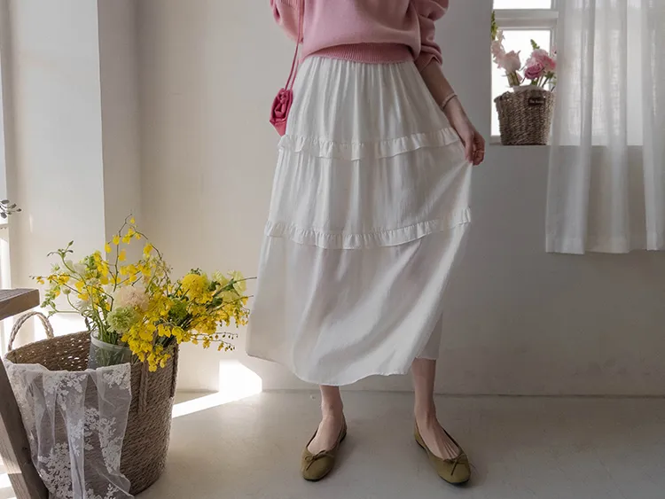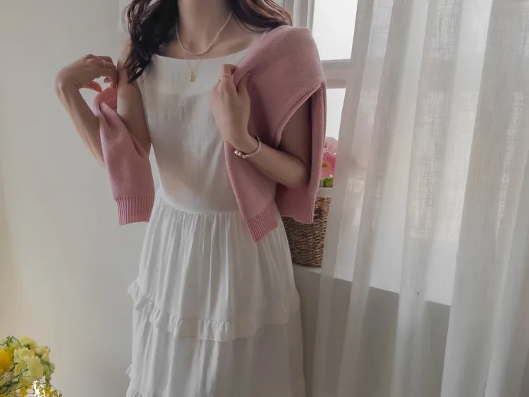 飄逸穿搭腰綁帶褶邊層次裙擺連身裙
