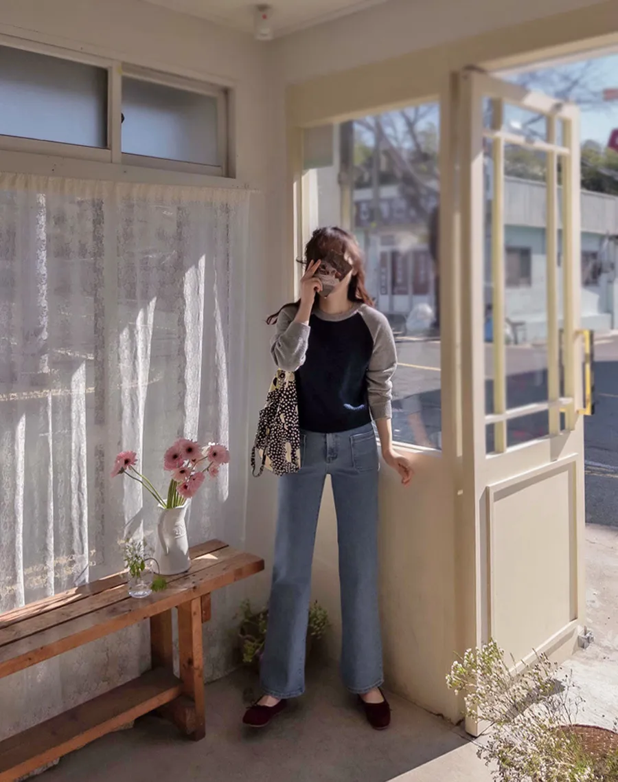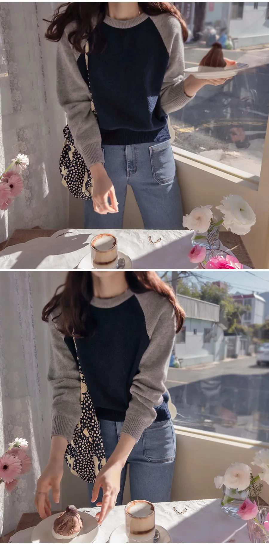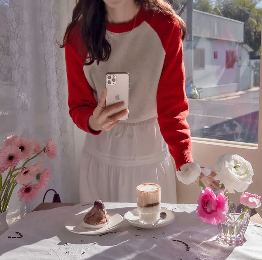春天氣息配色柔軟舒適針織上衣