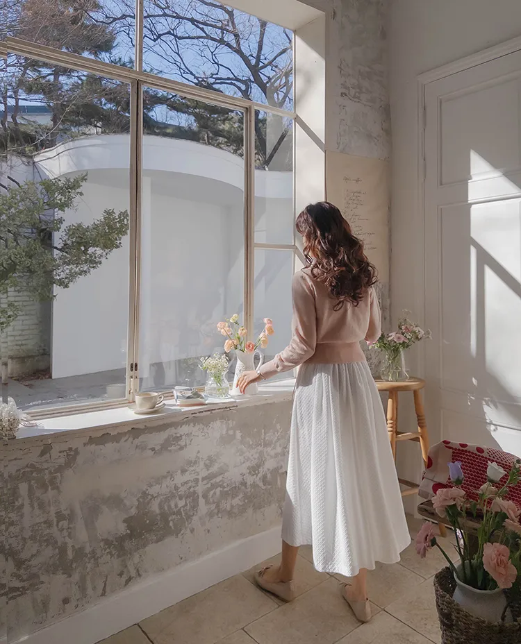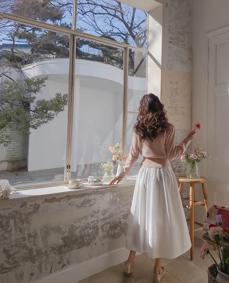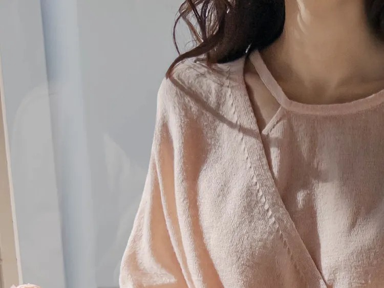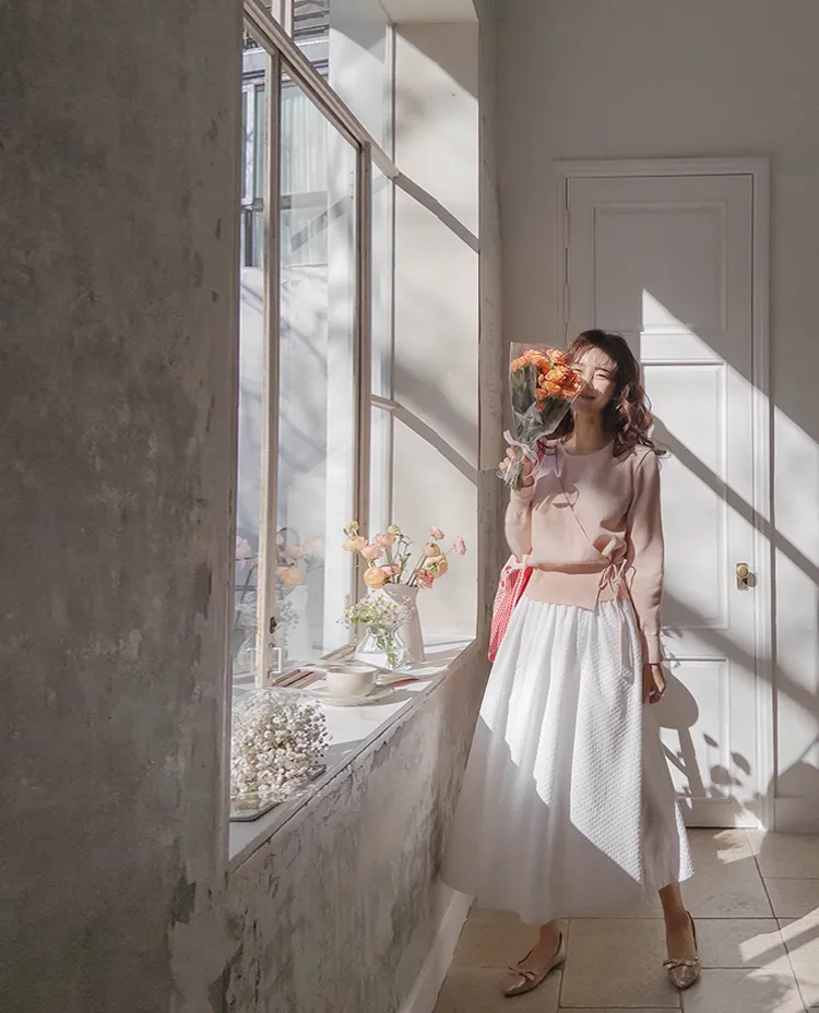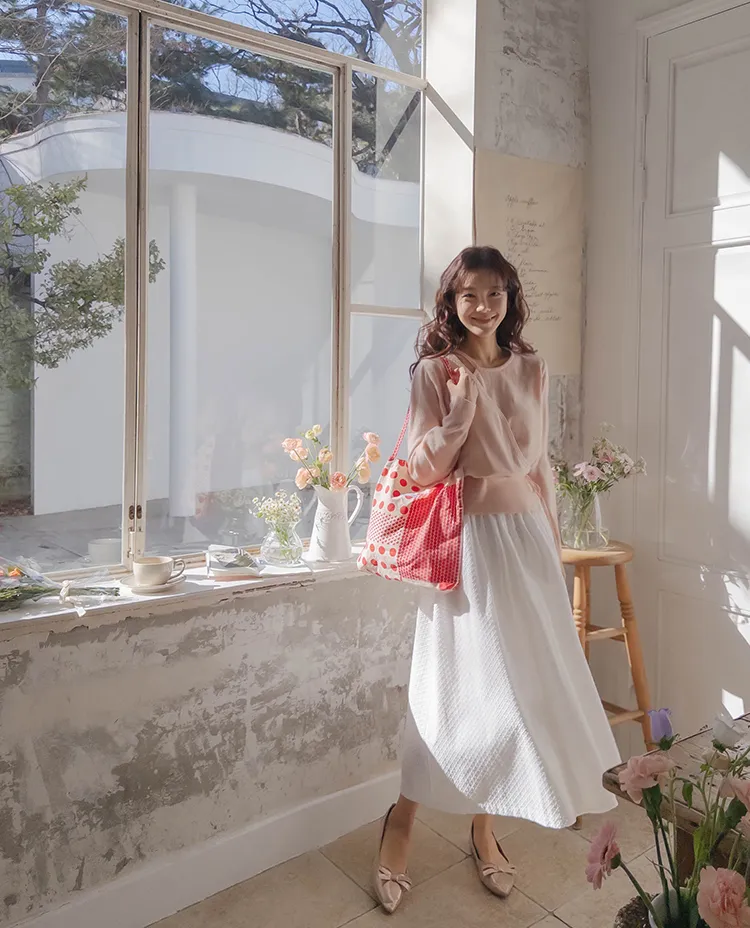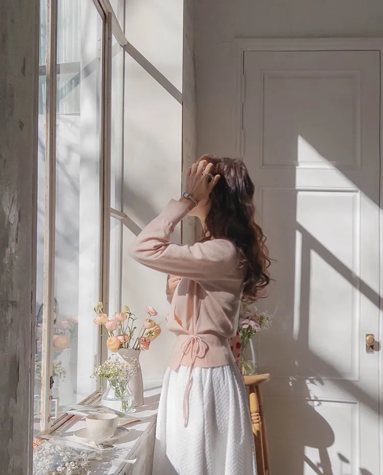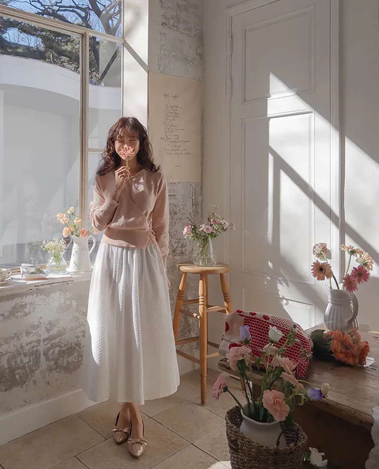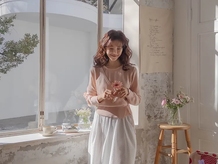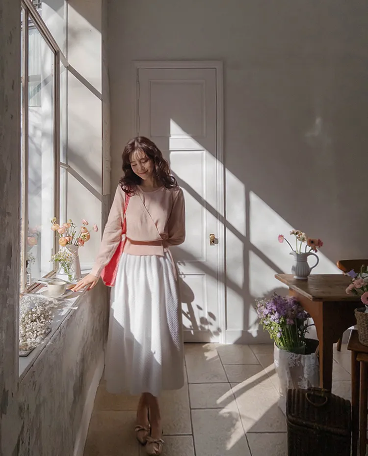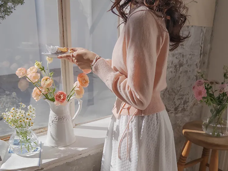 [帶有裹身款式和肩縫的女性化裹身針織♥] [不對稱領口設計] [腰線上有綁帶蝴蝶結!
