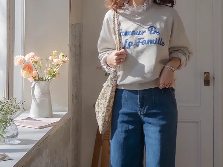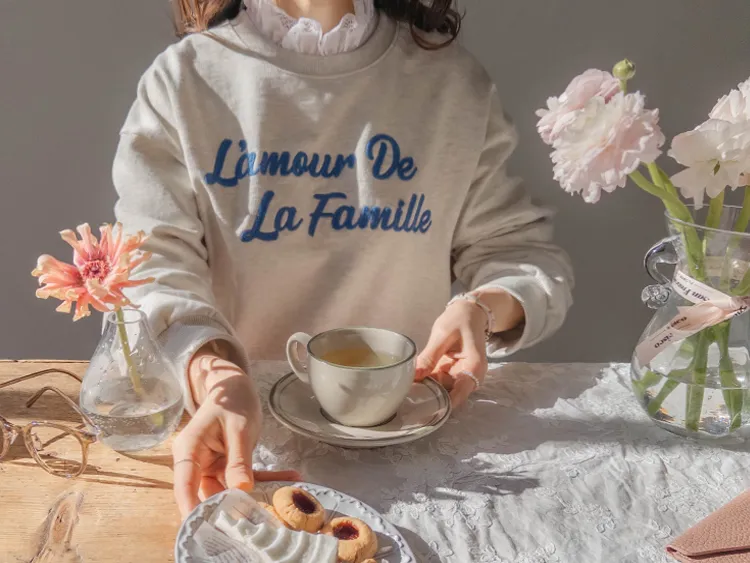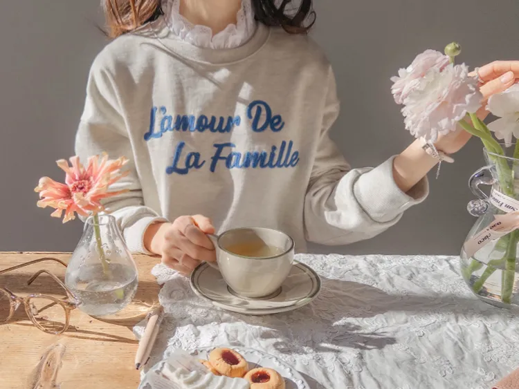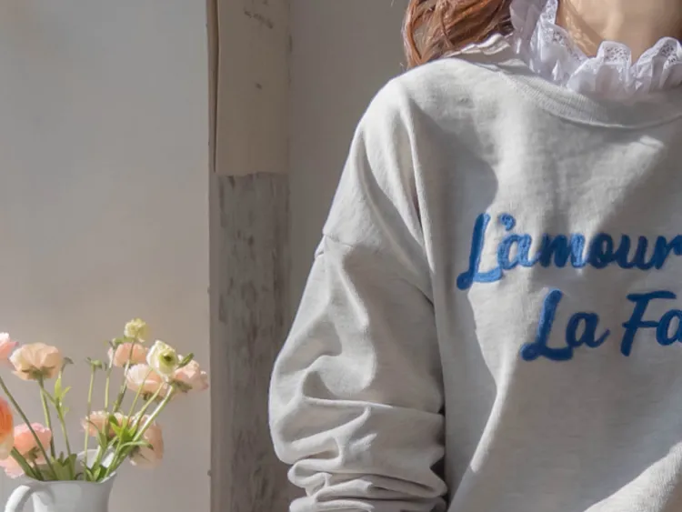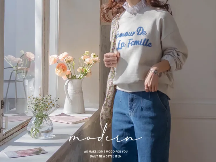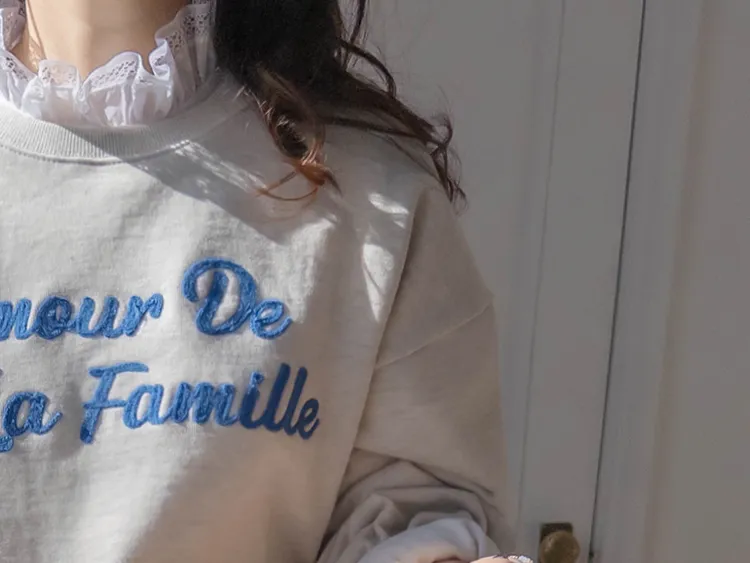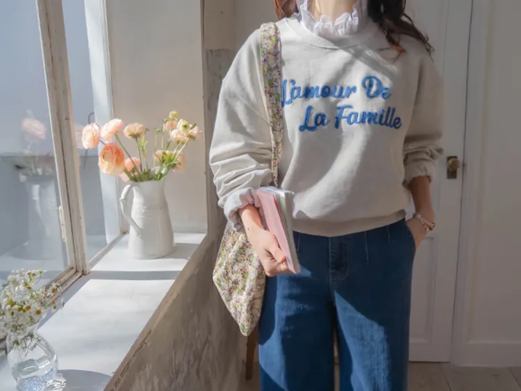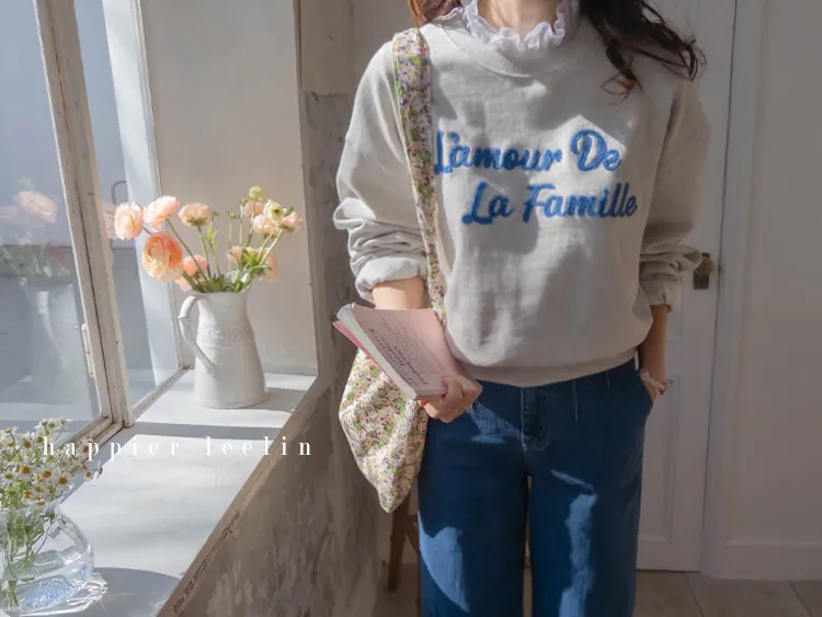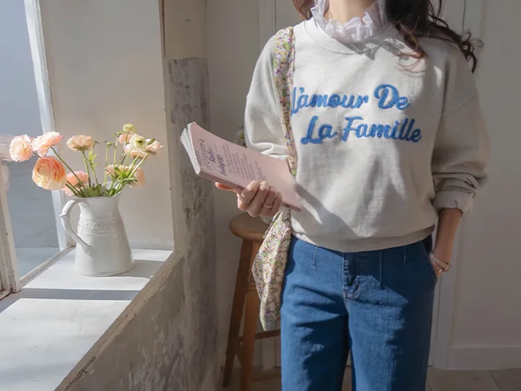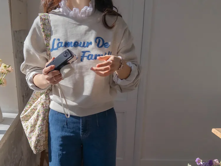 [簡單設計!刺繡字母上衣♥] 【寬鬆的版型完美遮蓋上身線條~】【單獨穿著與分層搭配和外套可以有多種穿搭