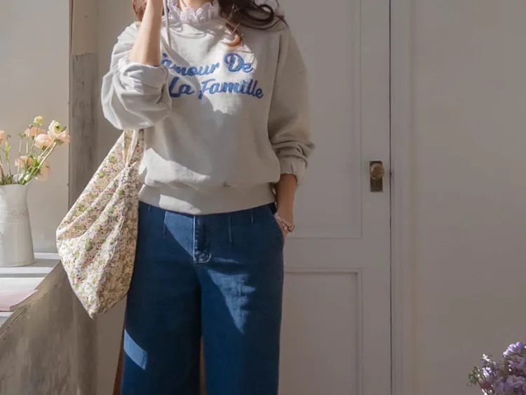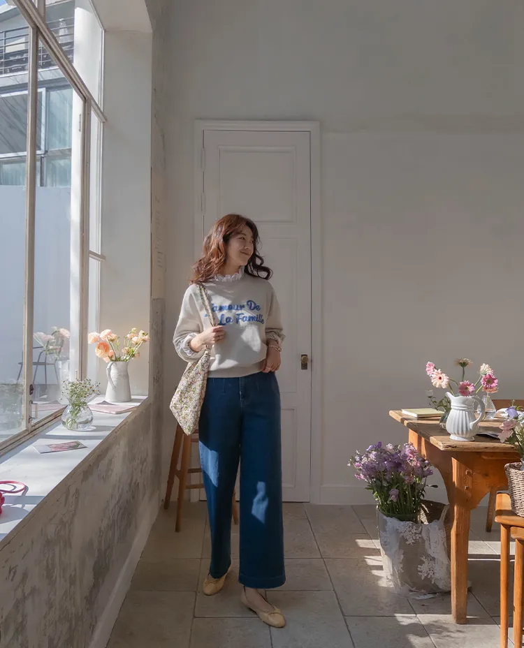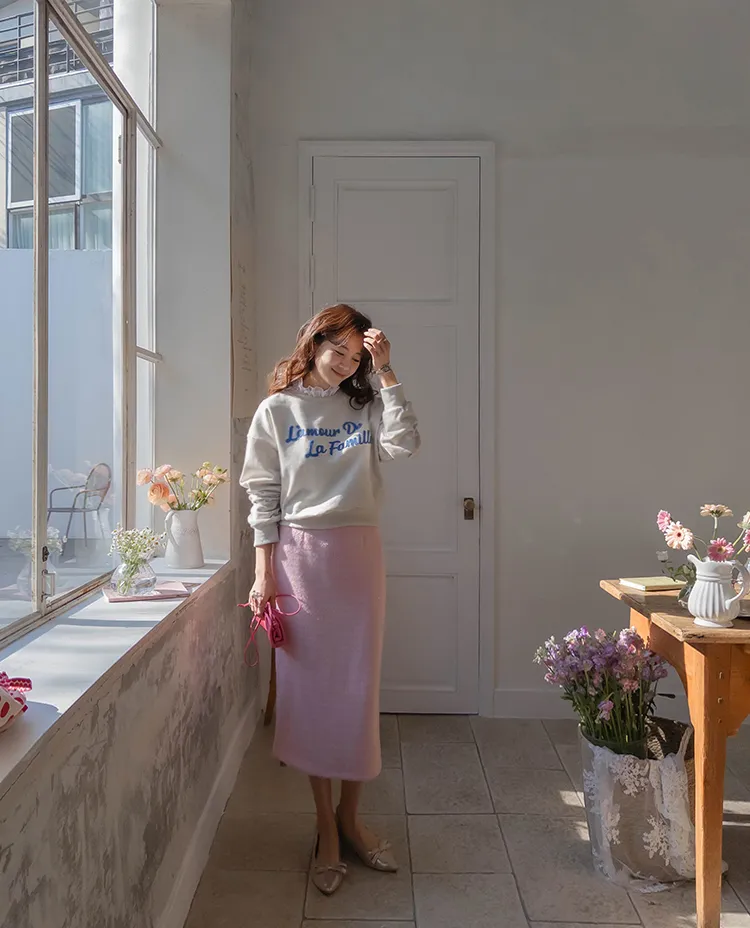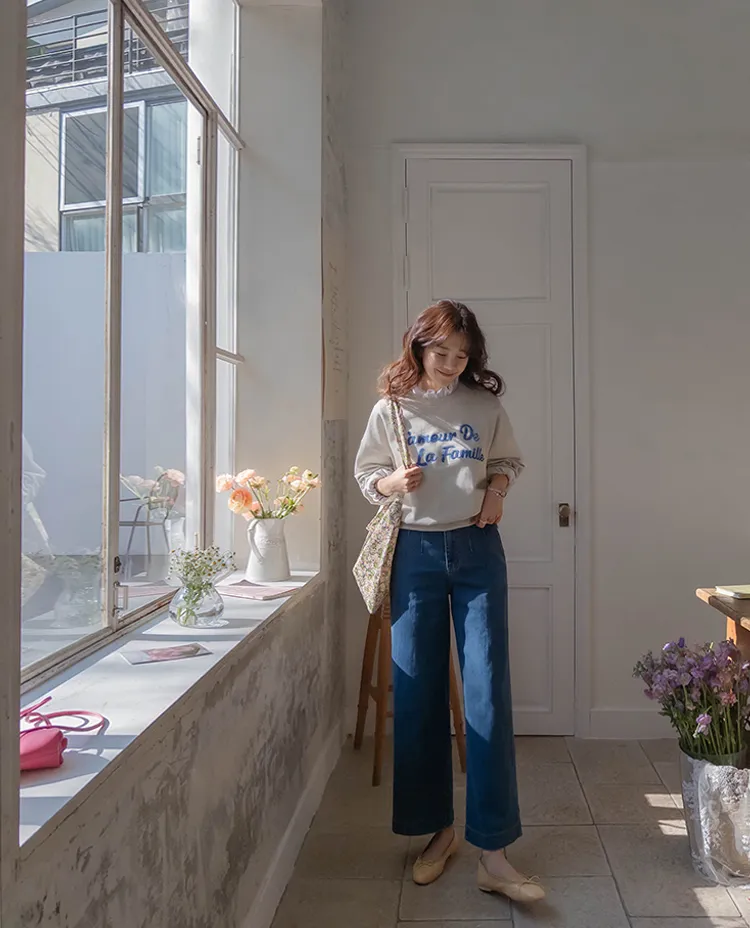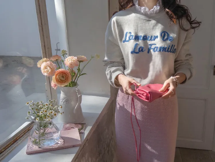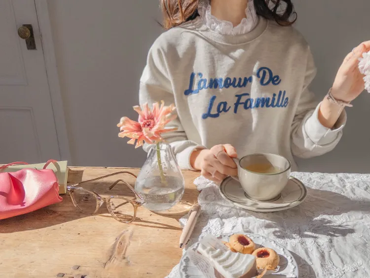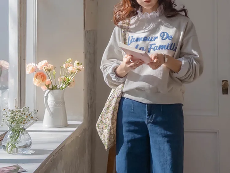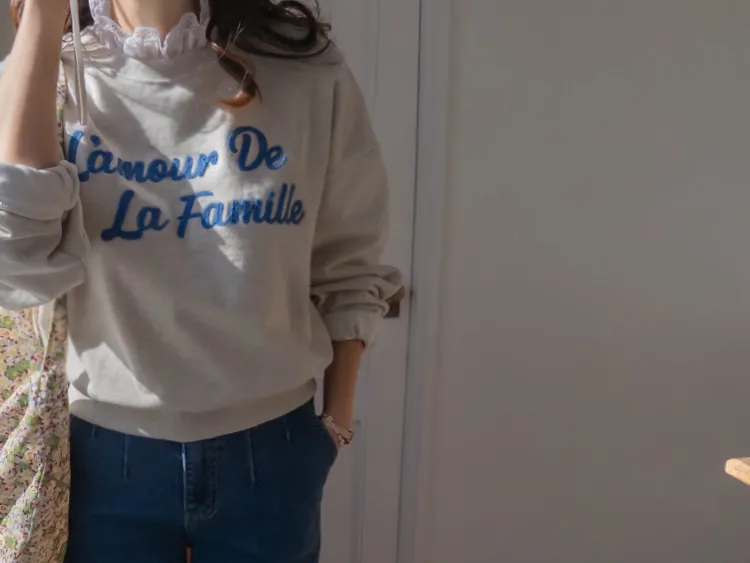 [簡單設計!刺繡字母上衣♥] 【寬鬆的版型完美遮蓋上身線條~】【單獨穿著與分層搭配和外套可以有多種穿搭