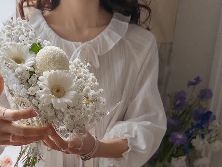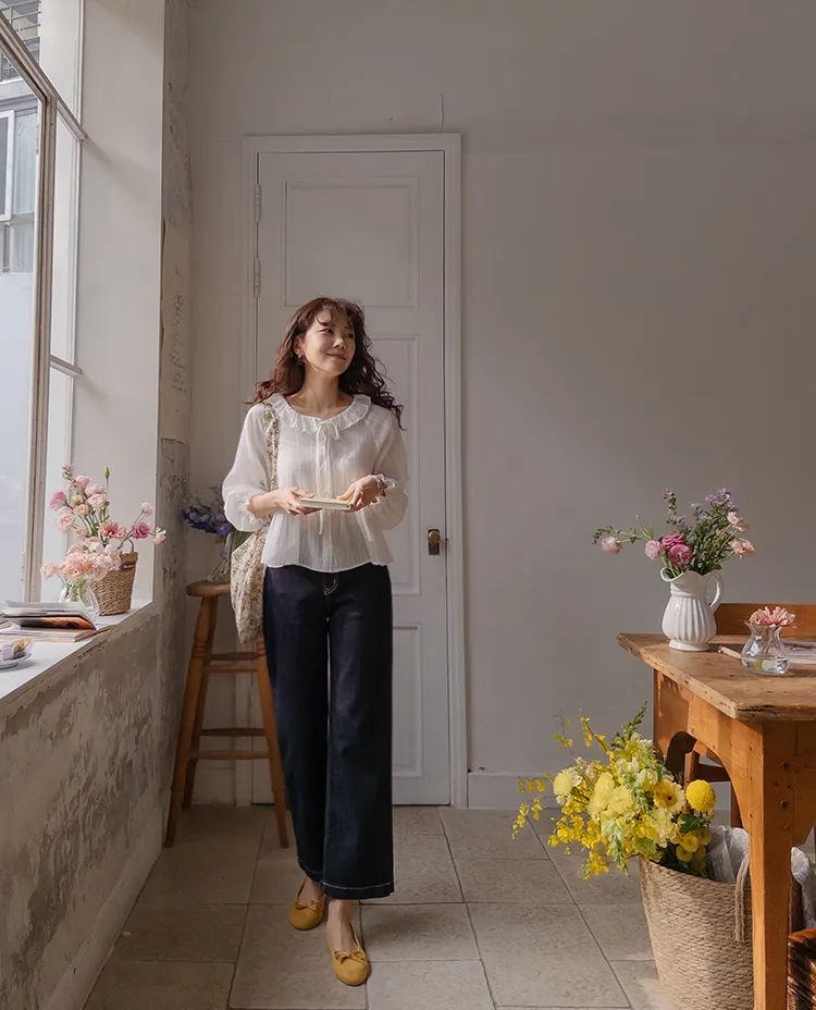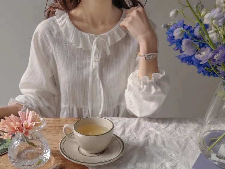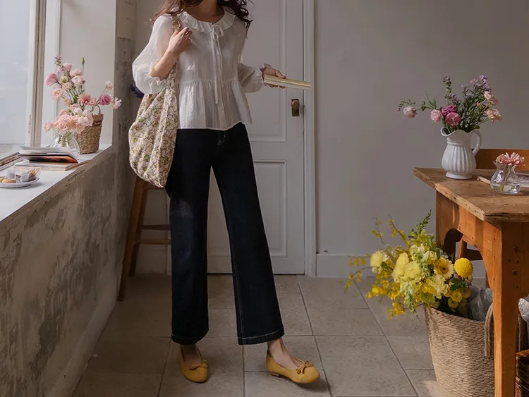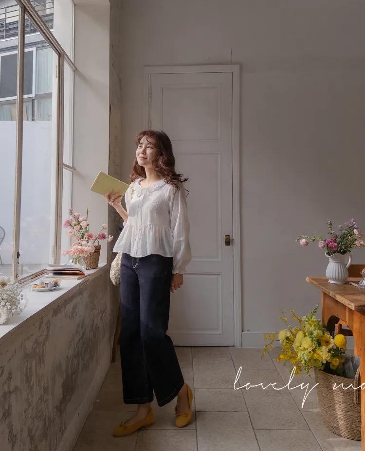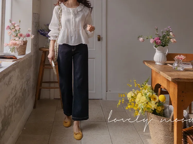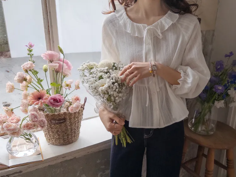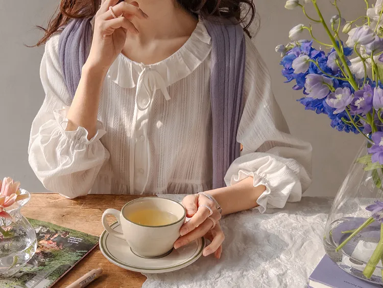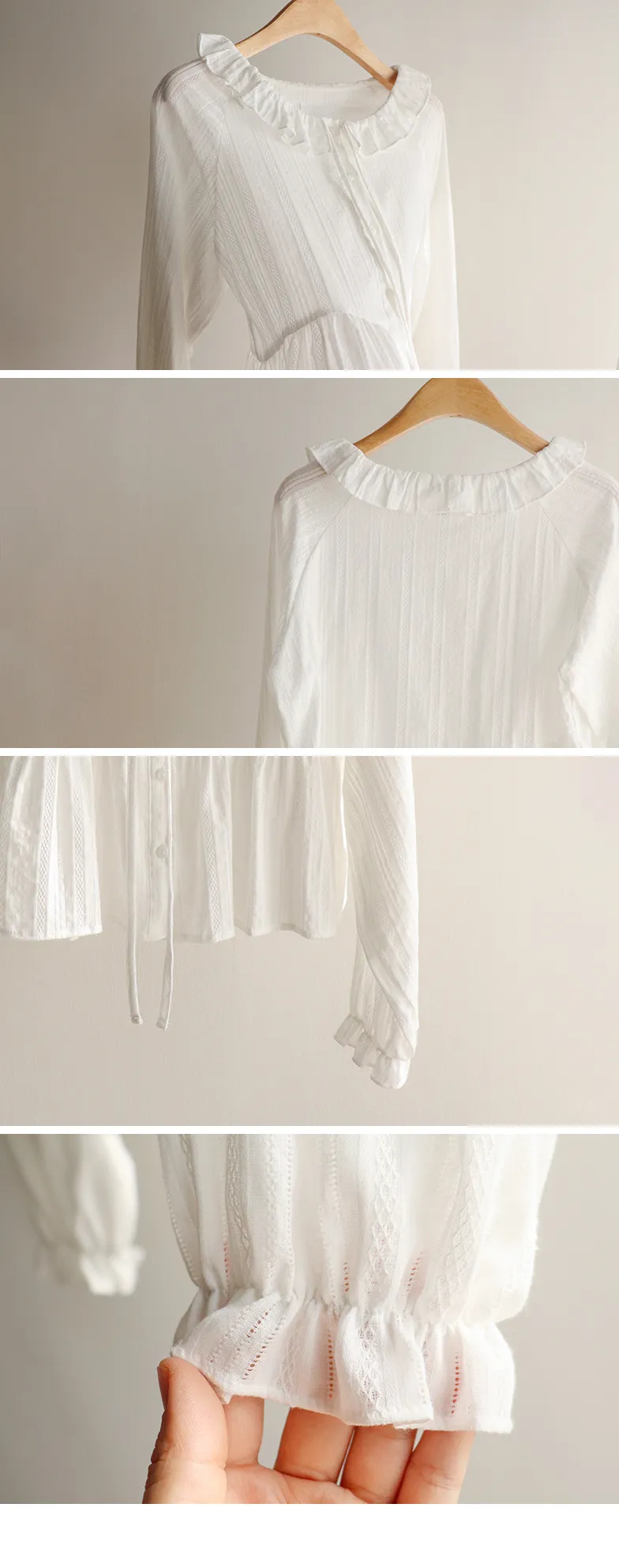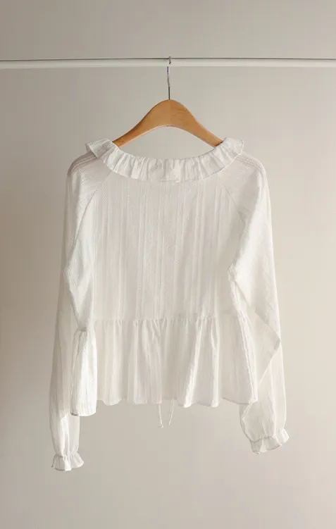 [腰部有褶皺細節,打造腰身線條! ] [繫帶設計,打造多種造型] [可愛的荷葉邊領口細節] [袖口束邊舒適〜]