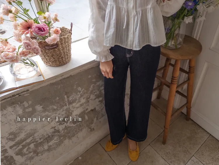 深邃魅力縫線直筒寬版牛仔褲