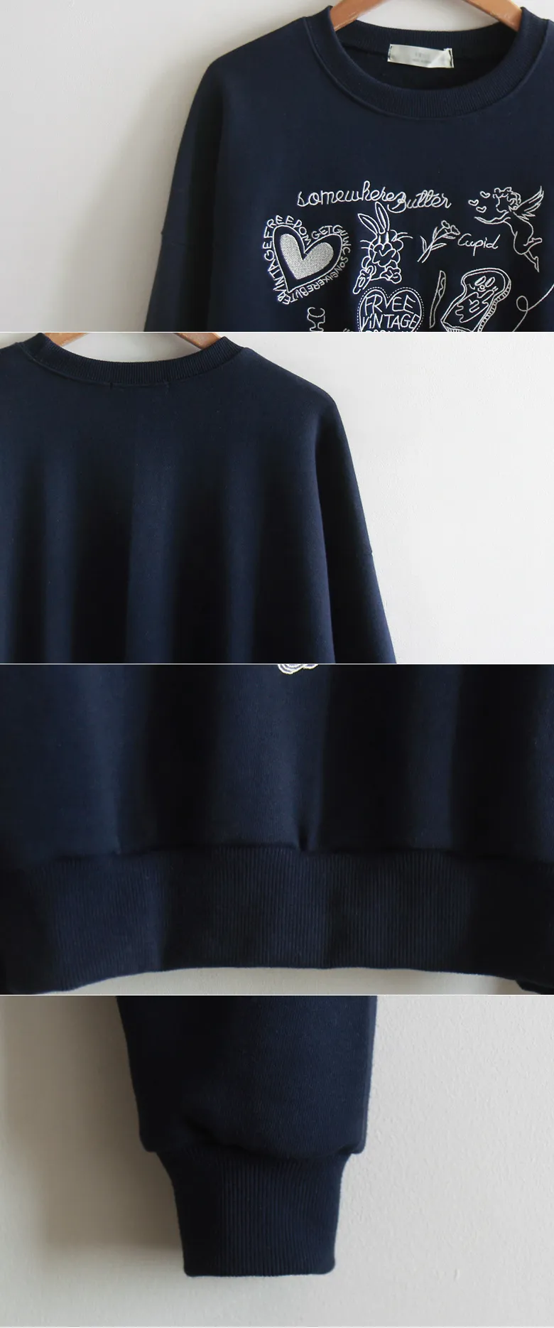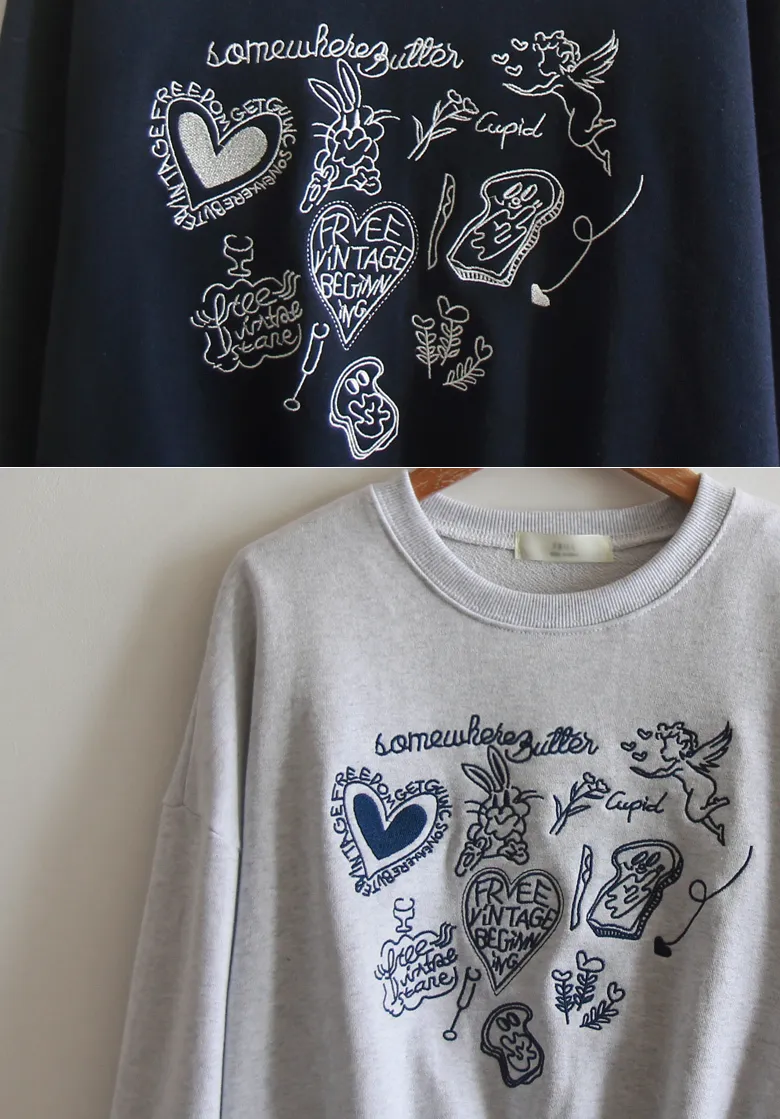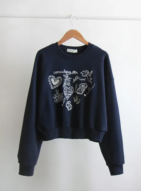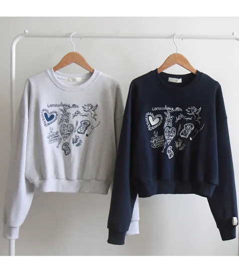 [以愛心和字母刺繡為重點] [色彩成熟,符合季節感] [穿著舒適,靈活,充滿春天氣息] [短款長度,適合多種搭配] [推薦作為春天穿搭的日常上衣]