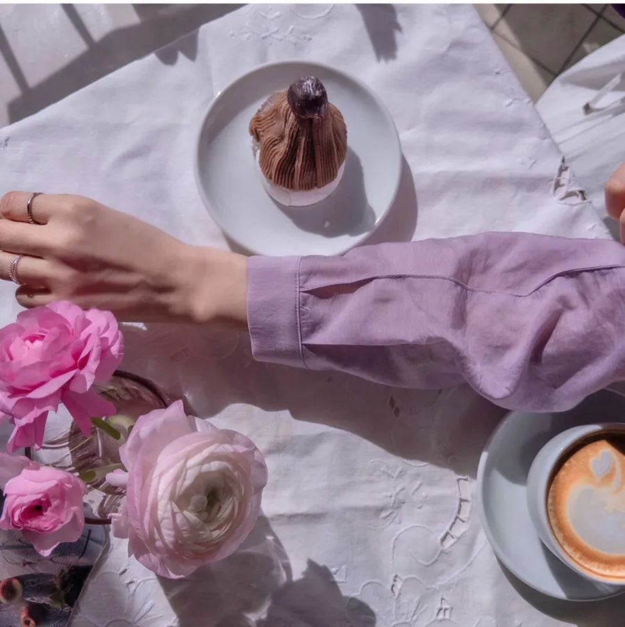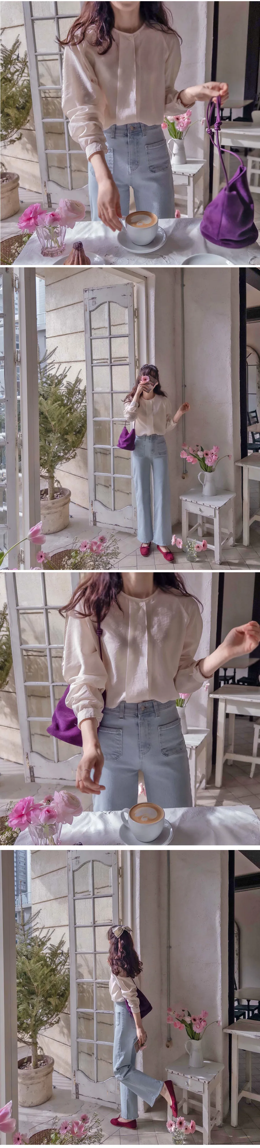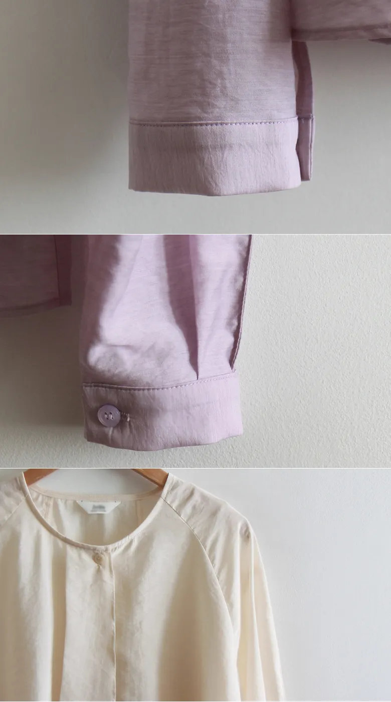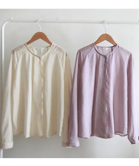 [天絲含量44%的輕款上衣,非常漂亮] [柔軟優雅,充滿春天氣息] [充滿春天氣息的可愛而奢華的上衣] [隱藏式紐扣的設計] [肩袖針摺簡潔漂亮]