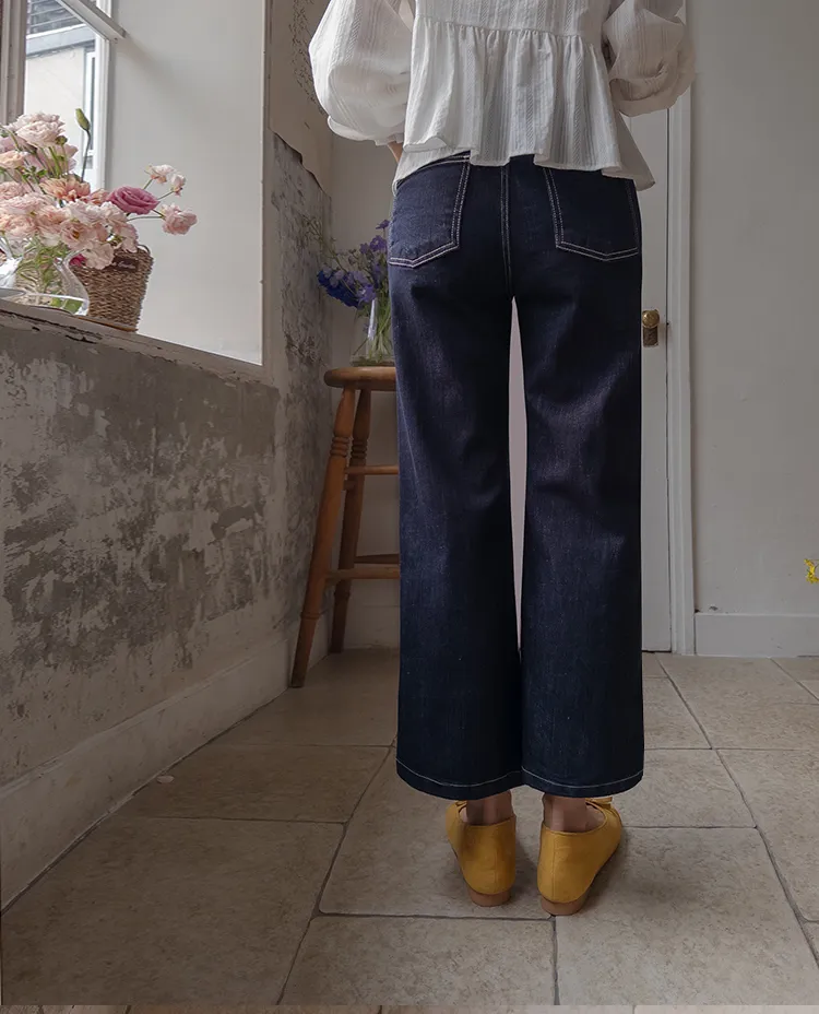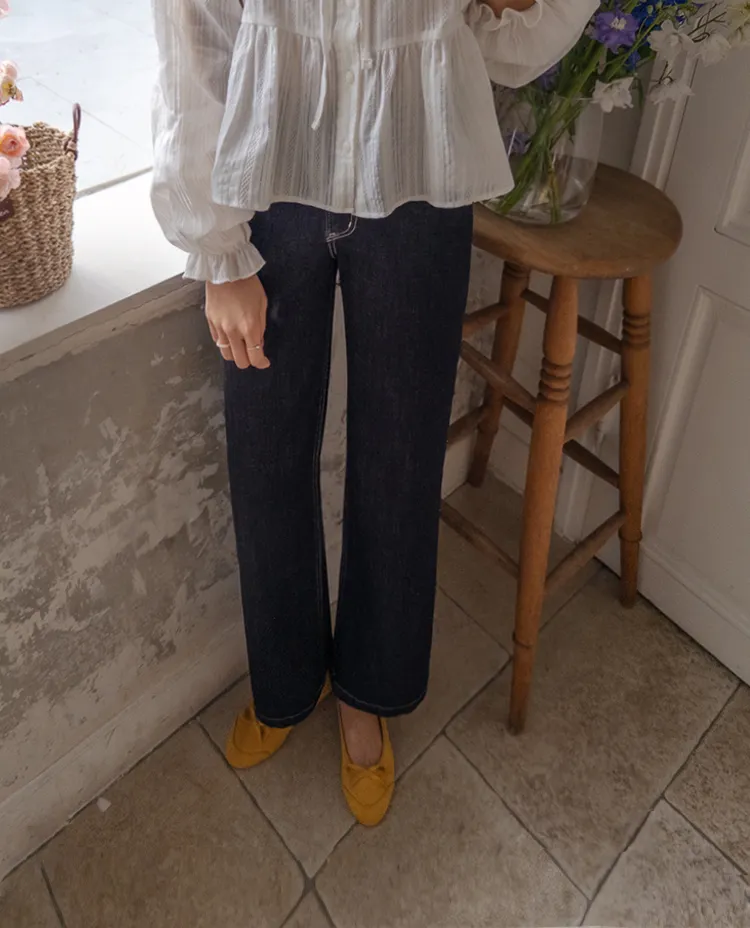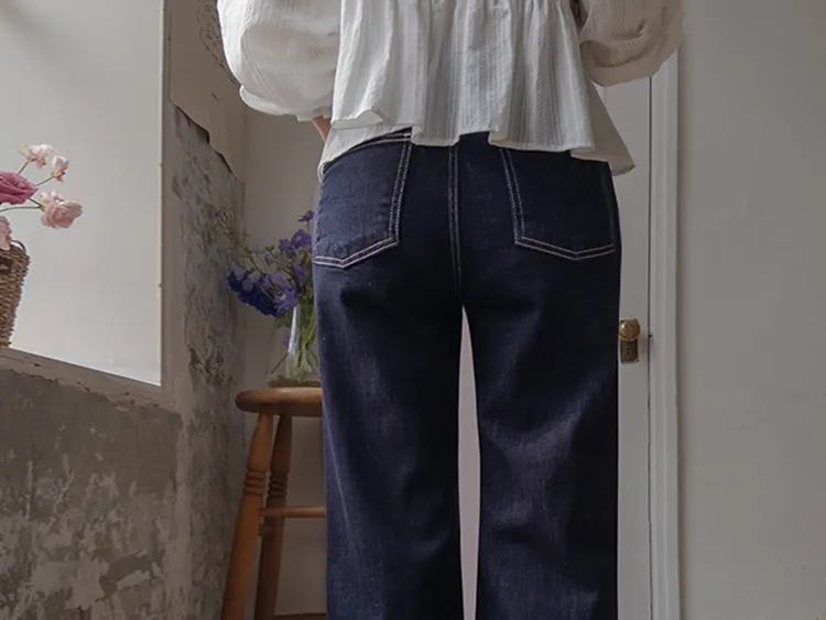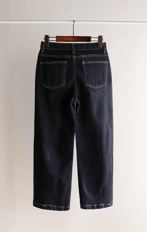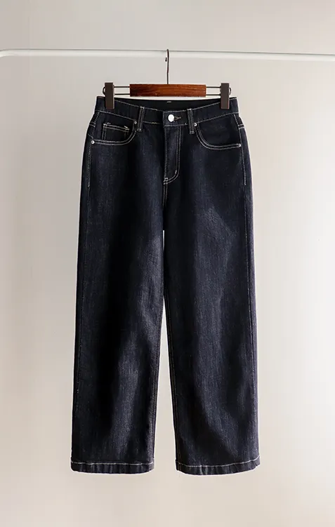深邃魅力縫線直筒寬版牛仔褲