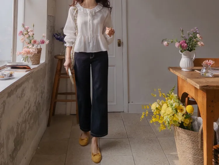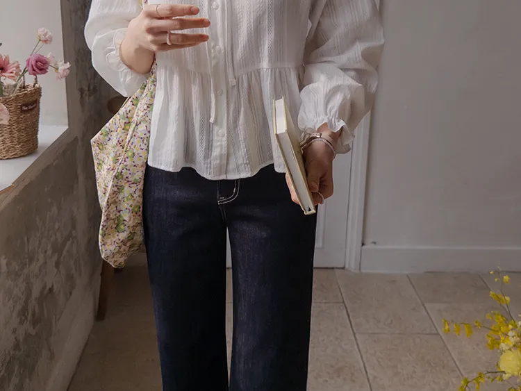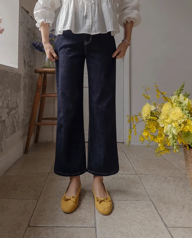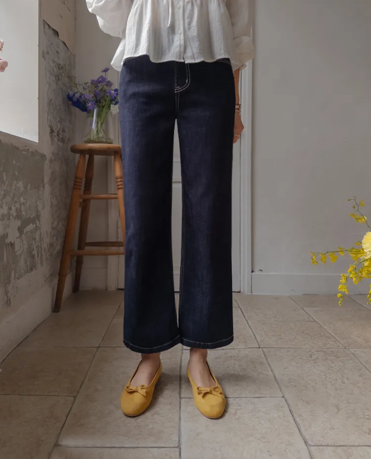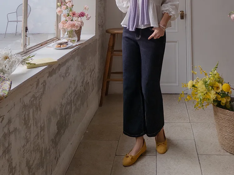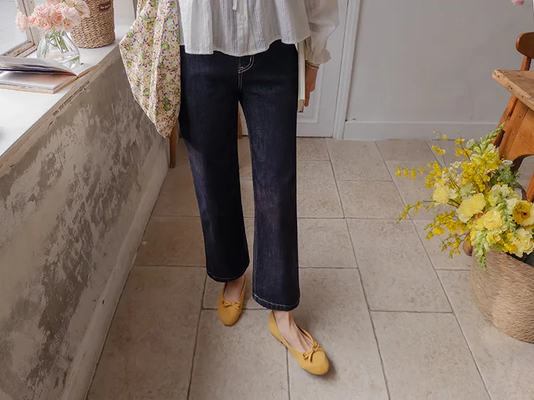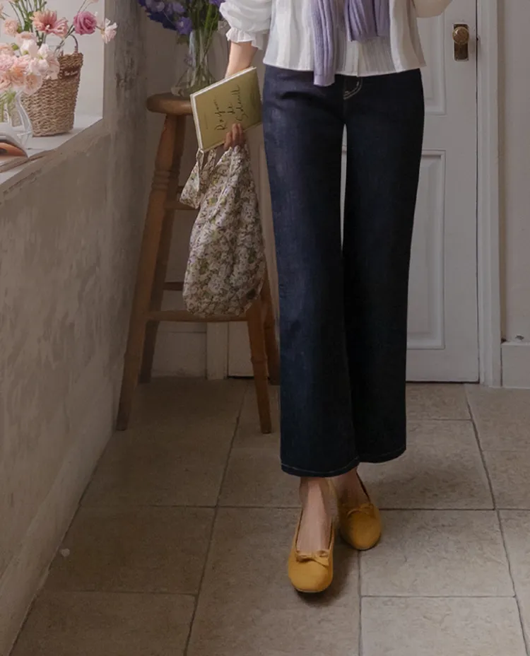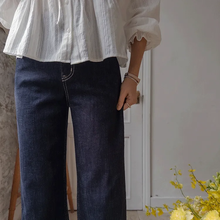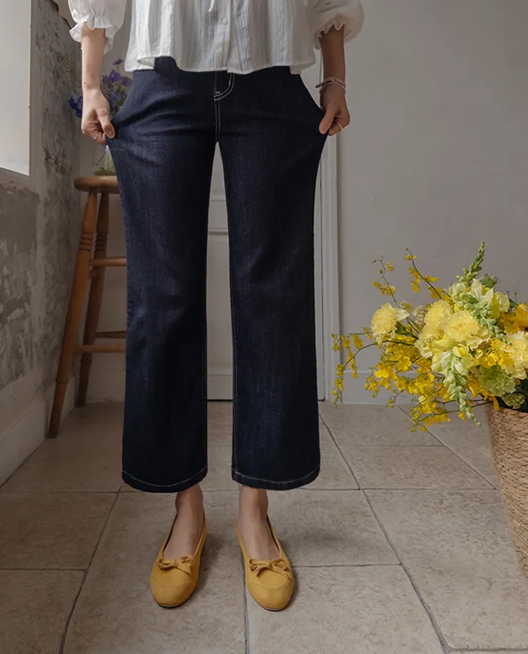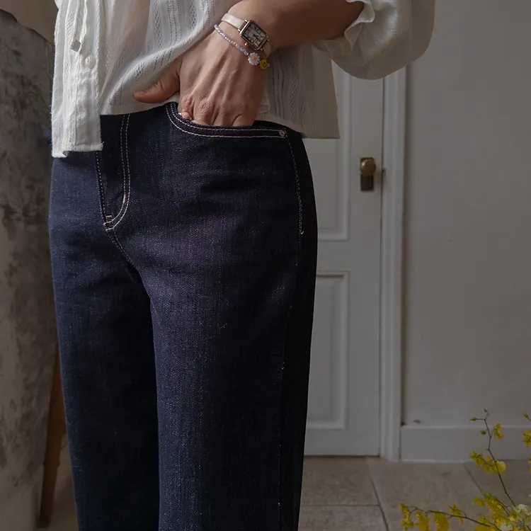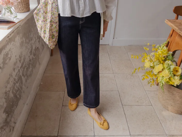 [不褪色的原色牛仔褲!完全不用擔心顏色轉移! ] [修飾線條! ][稍微剪短的長度帶來清新的氛圍]