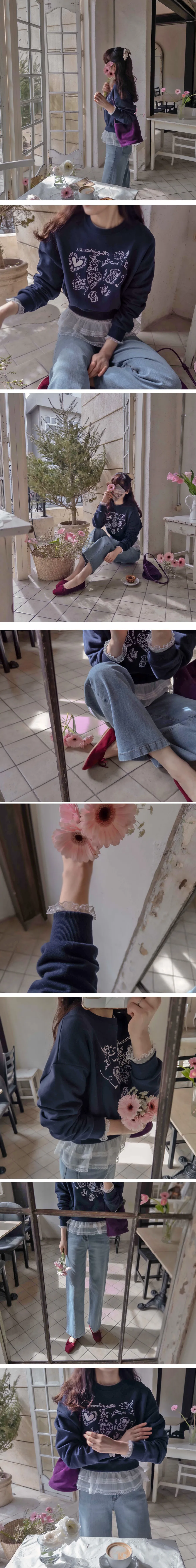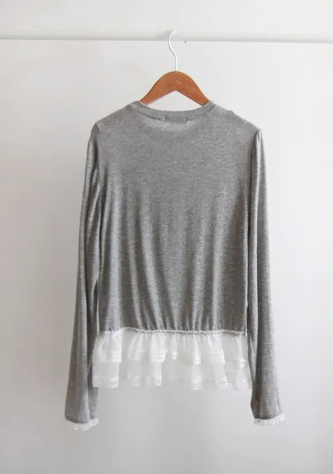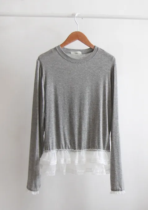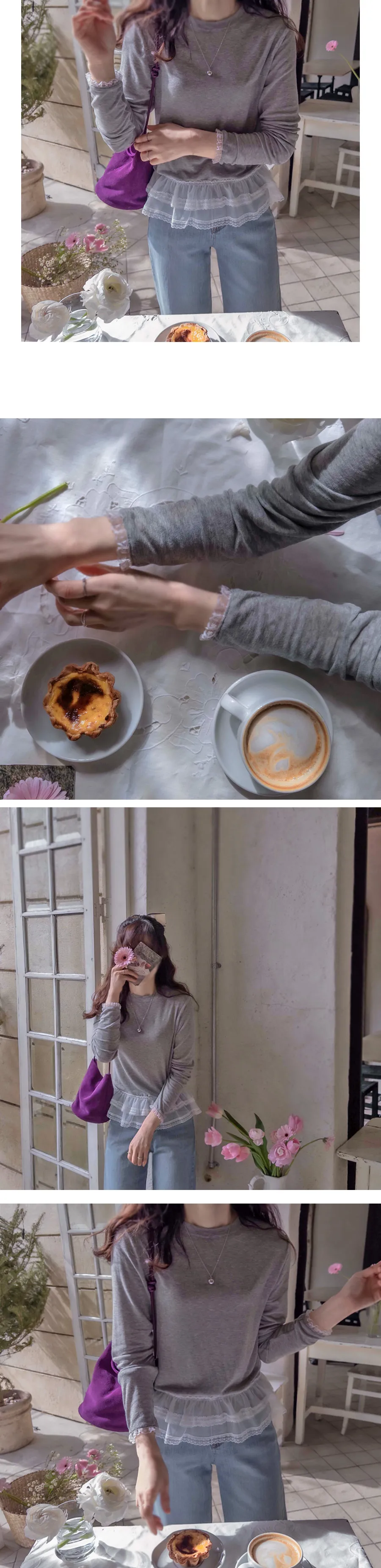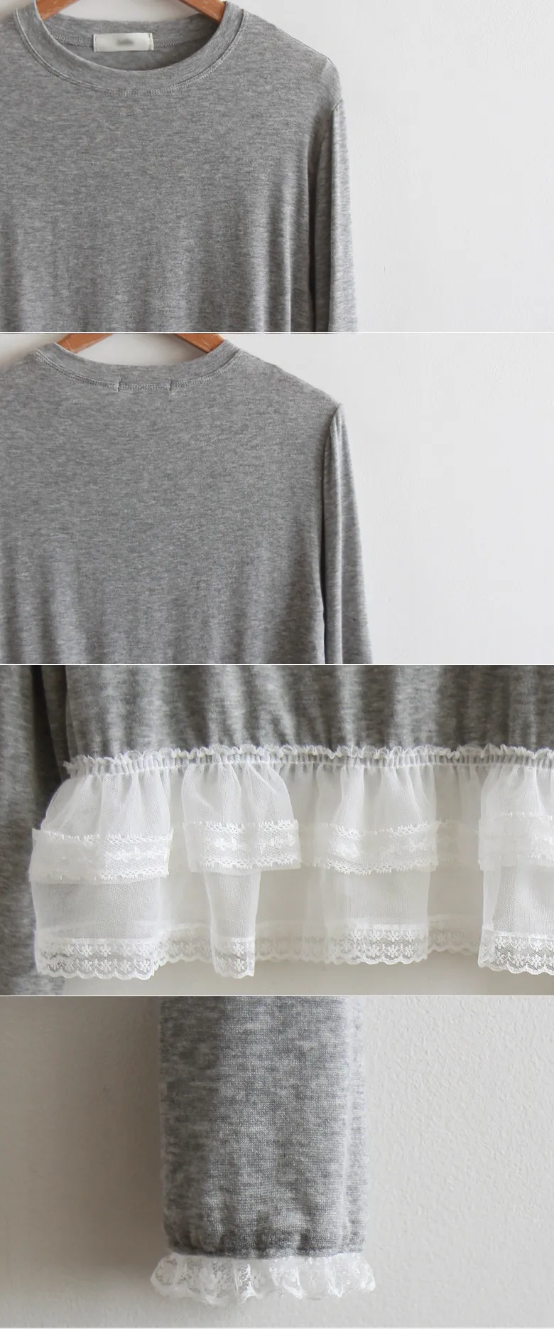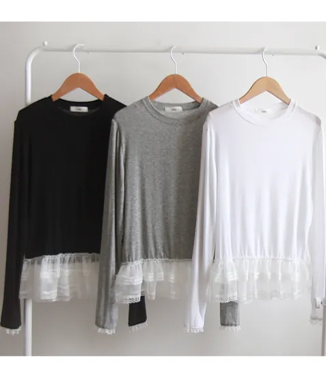 可疊穿穿搭配色下擺蕾絲彈性柔軟上衣
