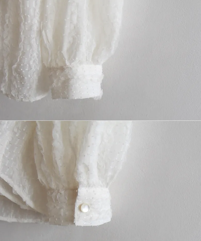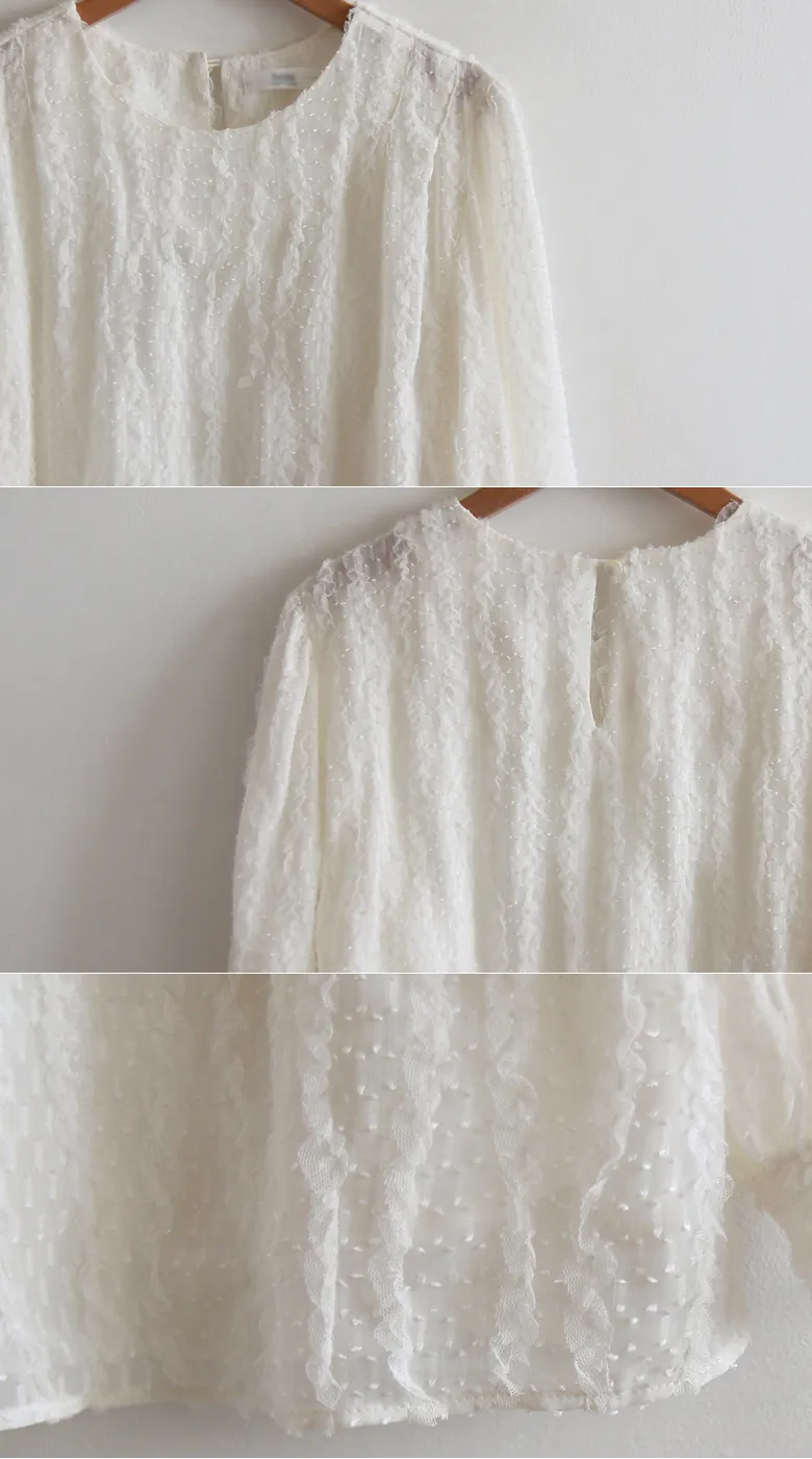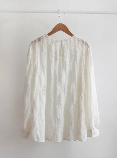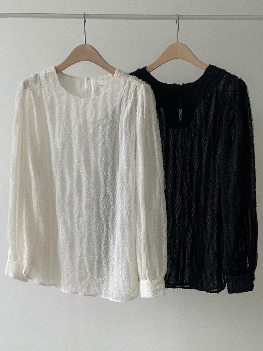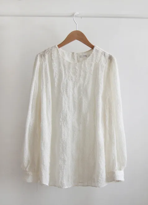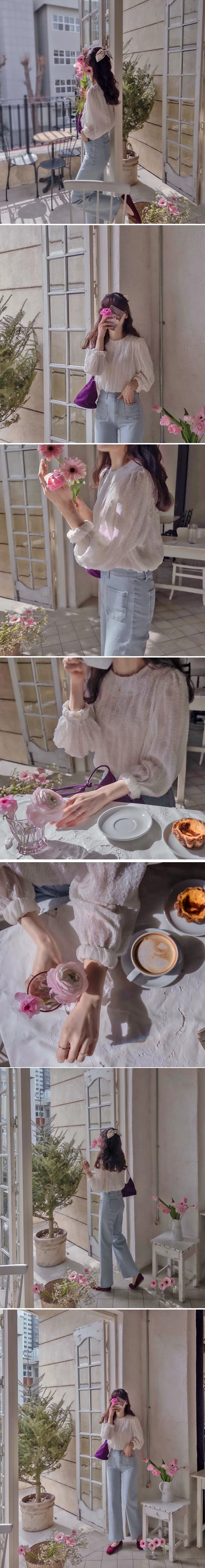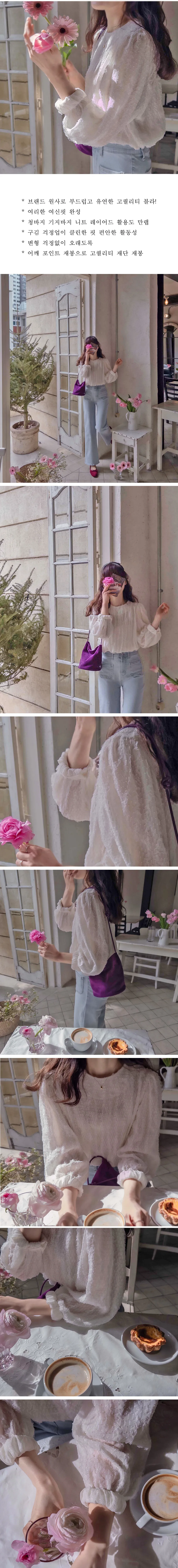 【用蕾絲打造出可愛的造型】 【充滿浪漫與光彩的上衣】 【預示春天的時尚版型上衣,推薦】 【奢華的蕾絲面料】 【肩部有褶襉,精緻感十足】 【作為如春天般精緻的蕾絲】