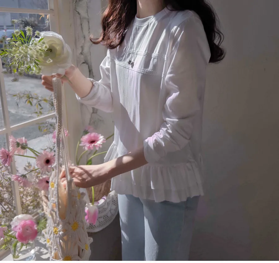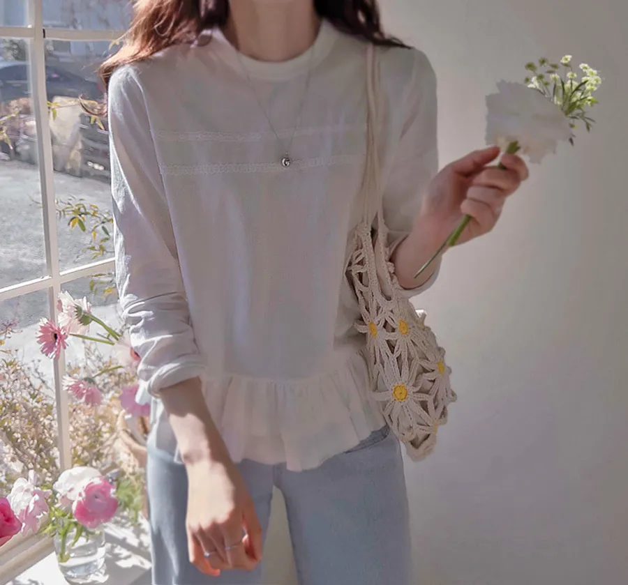 [柔軟有彈性的棉質上衣] [底部有雙層次摺邊,非常漂亮] [材質柔軟且舒適] [