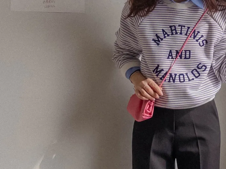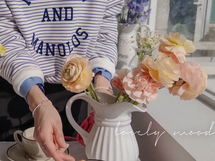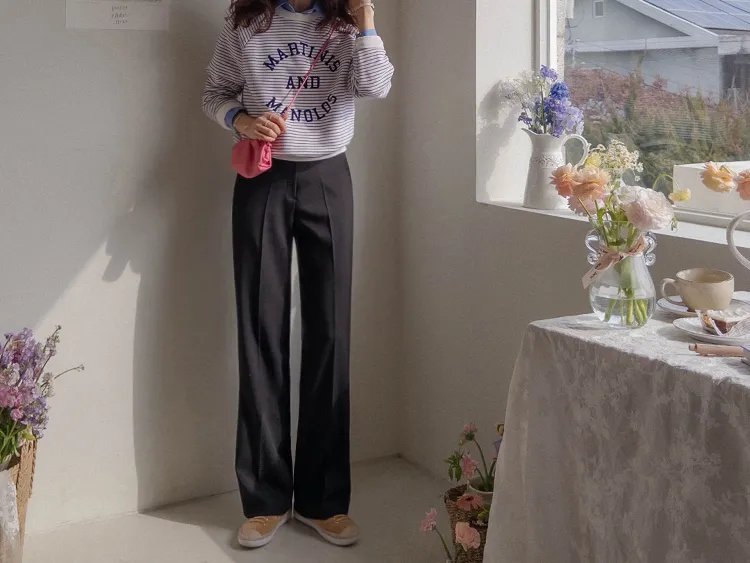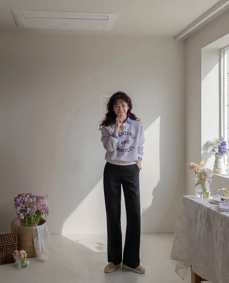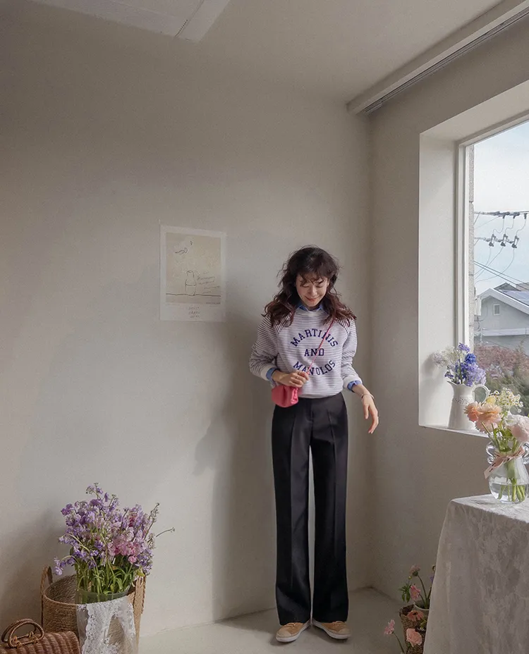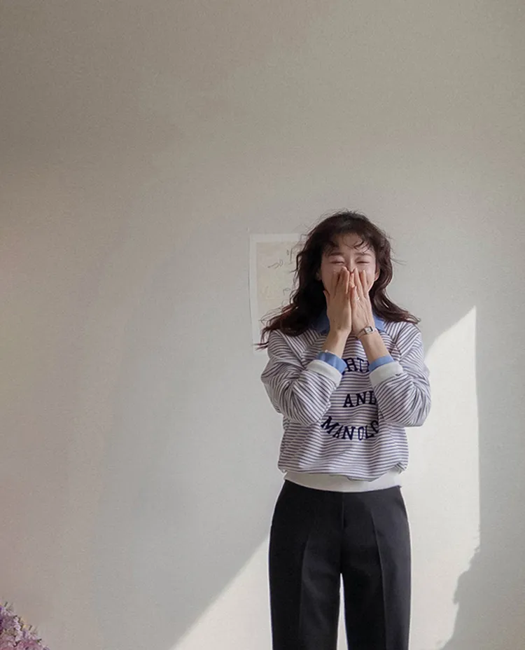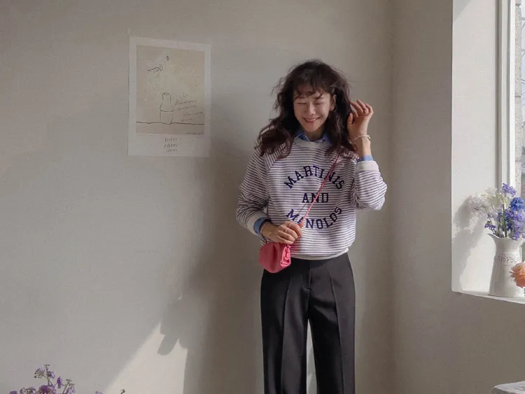 【現代風格!條紋圖案春季上衣♥] [末端有色塊] [從肩線垂落的輪廓] [寬鬆版型剪裁]