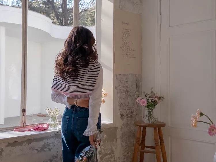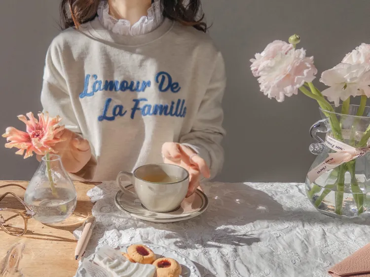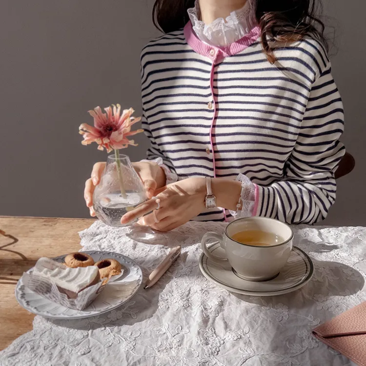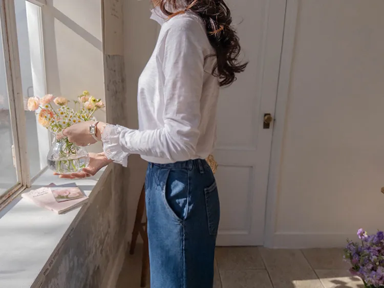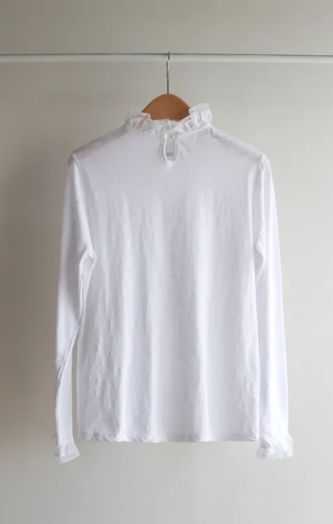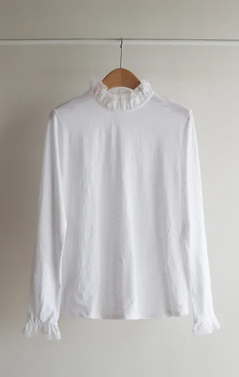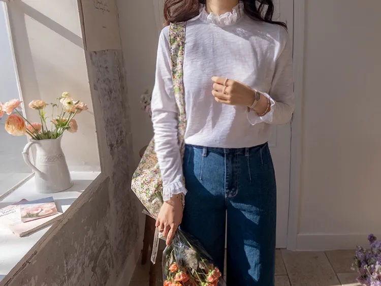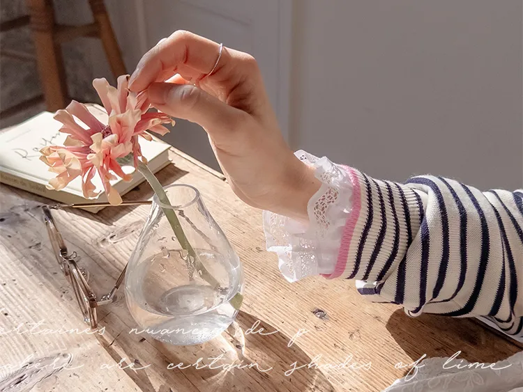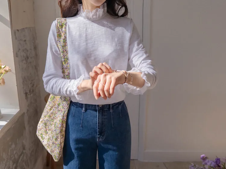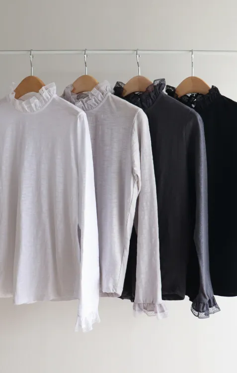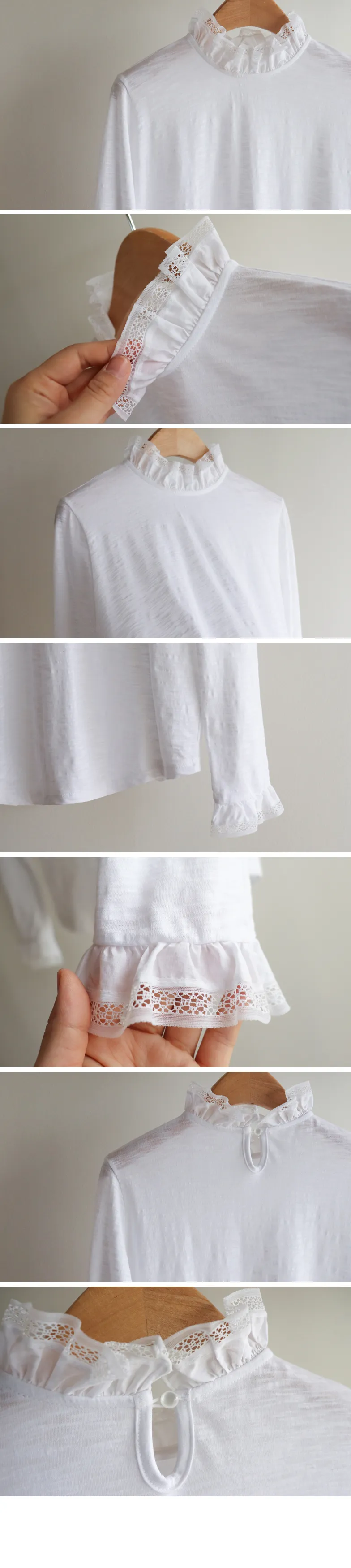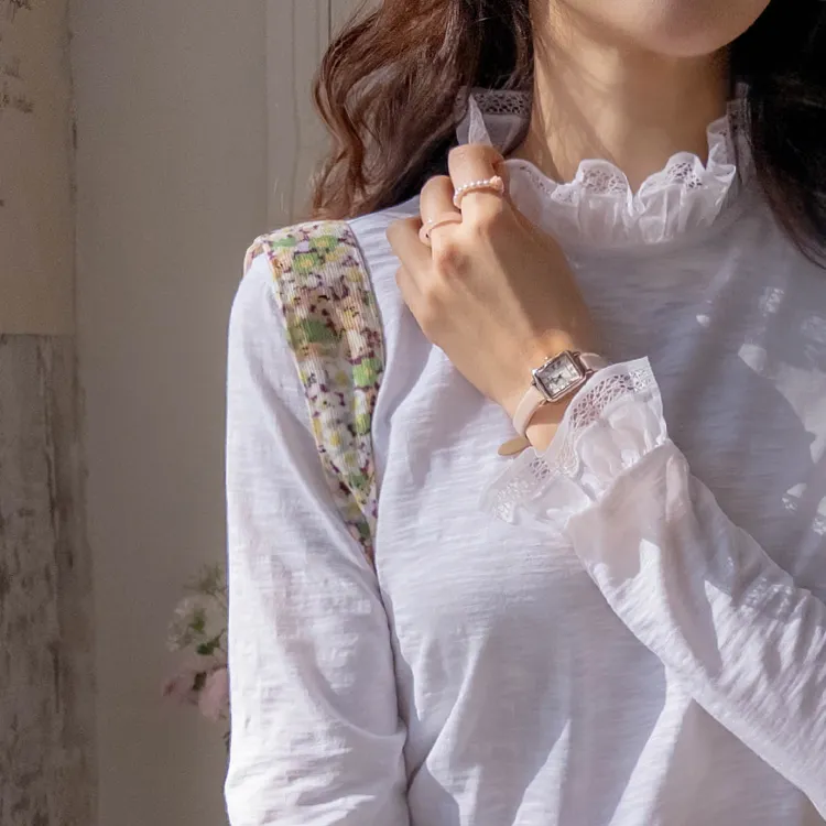 浪漫領口袖末蕾絲摺邊疊穿上衣