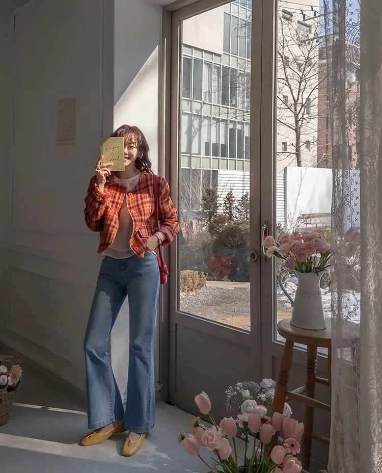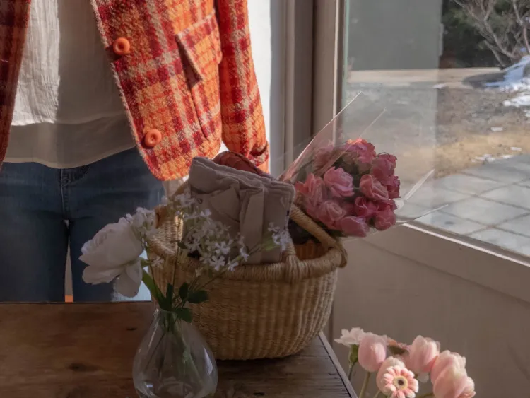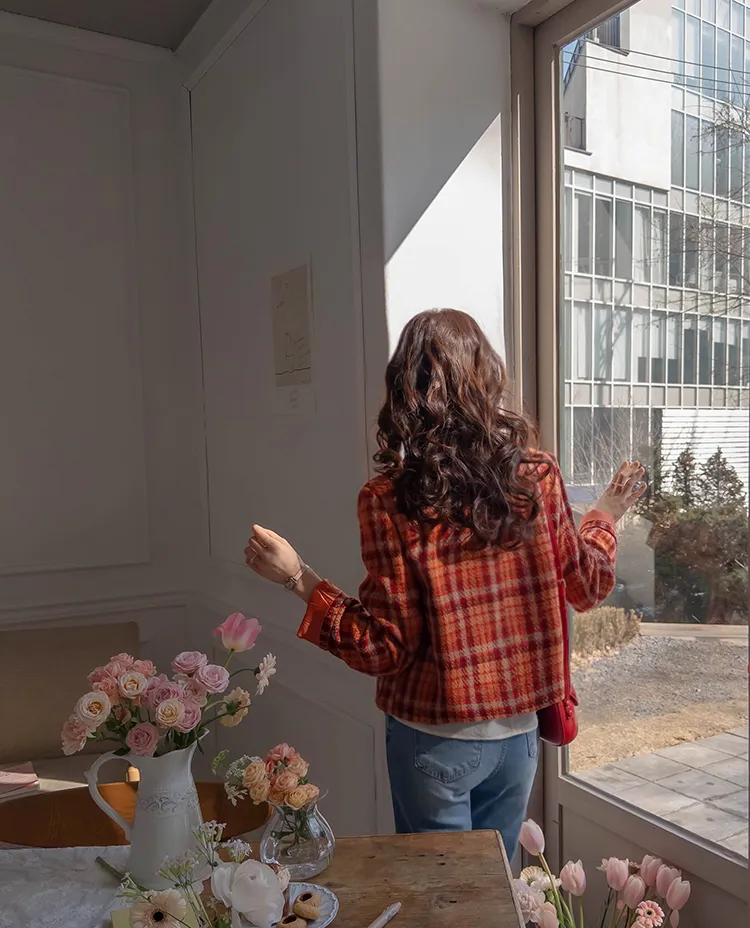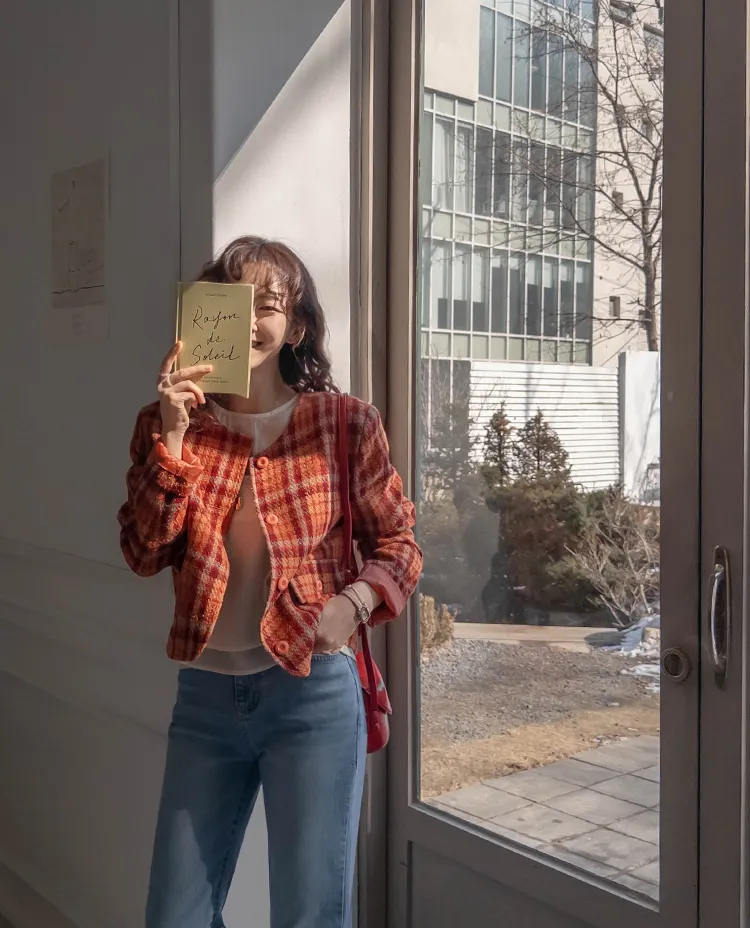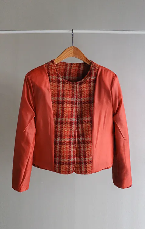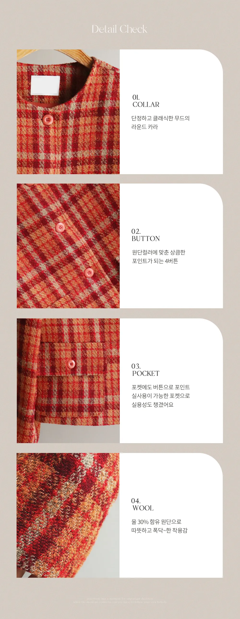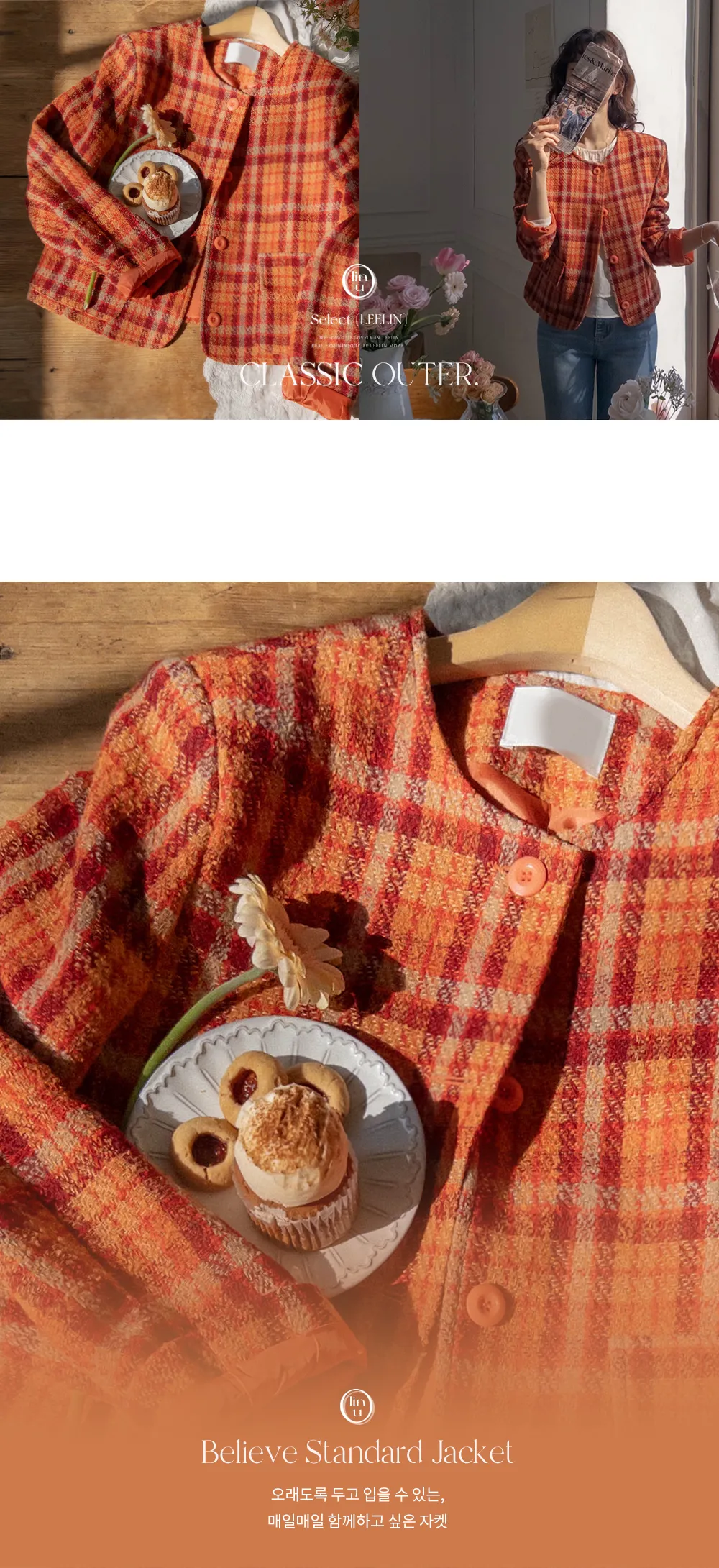 【橘色調引人注目的花呢外套♥】 【含30%羊毛】 【為整體造型錦上添花的單品】 【無領&圓領】