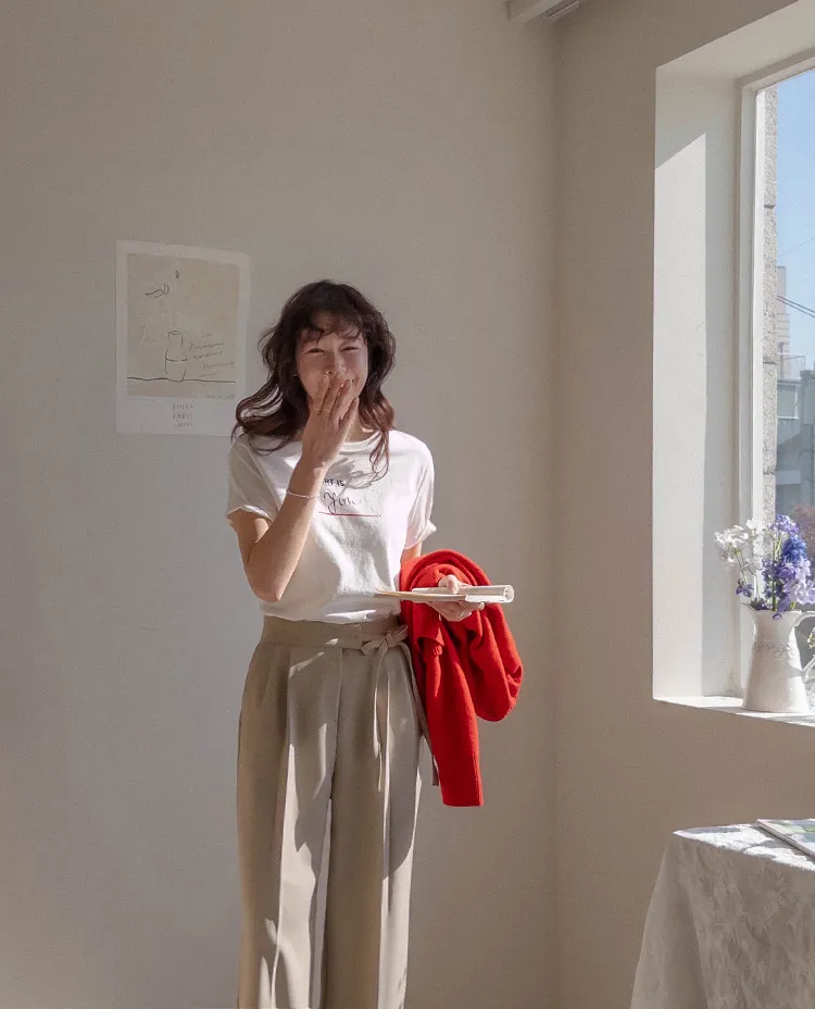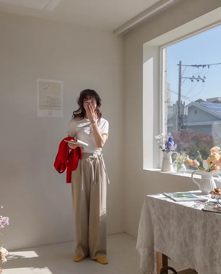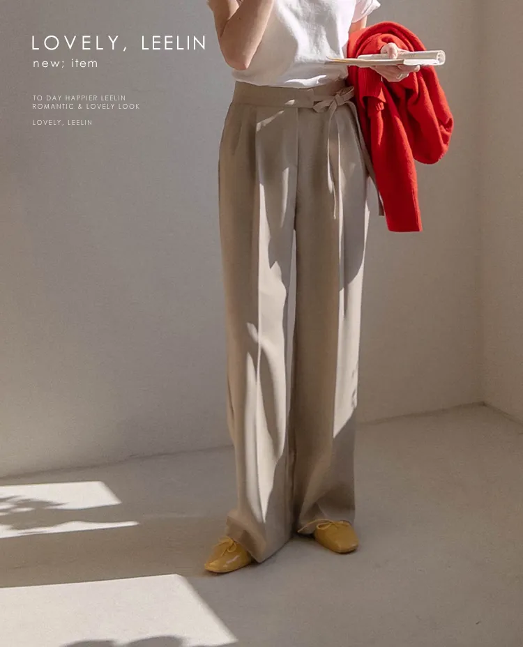 【腰部有綁帶設計的獨特直筒褲♥】 【輕盈沙沙作響的材質,散發出精緻氣息!】【顯腿長顯瘦,腿部線條筆直~】【寬版完美修飾線條!】