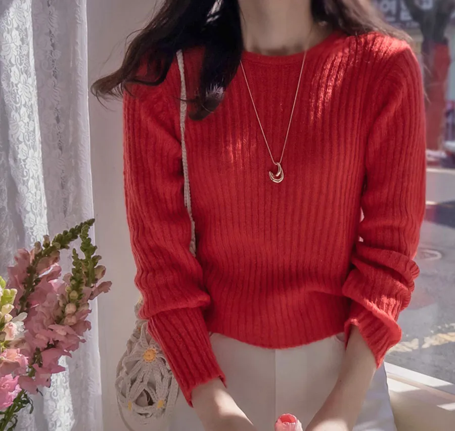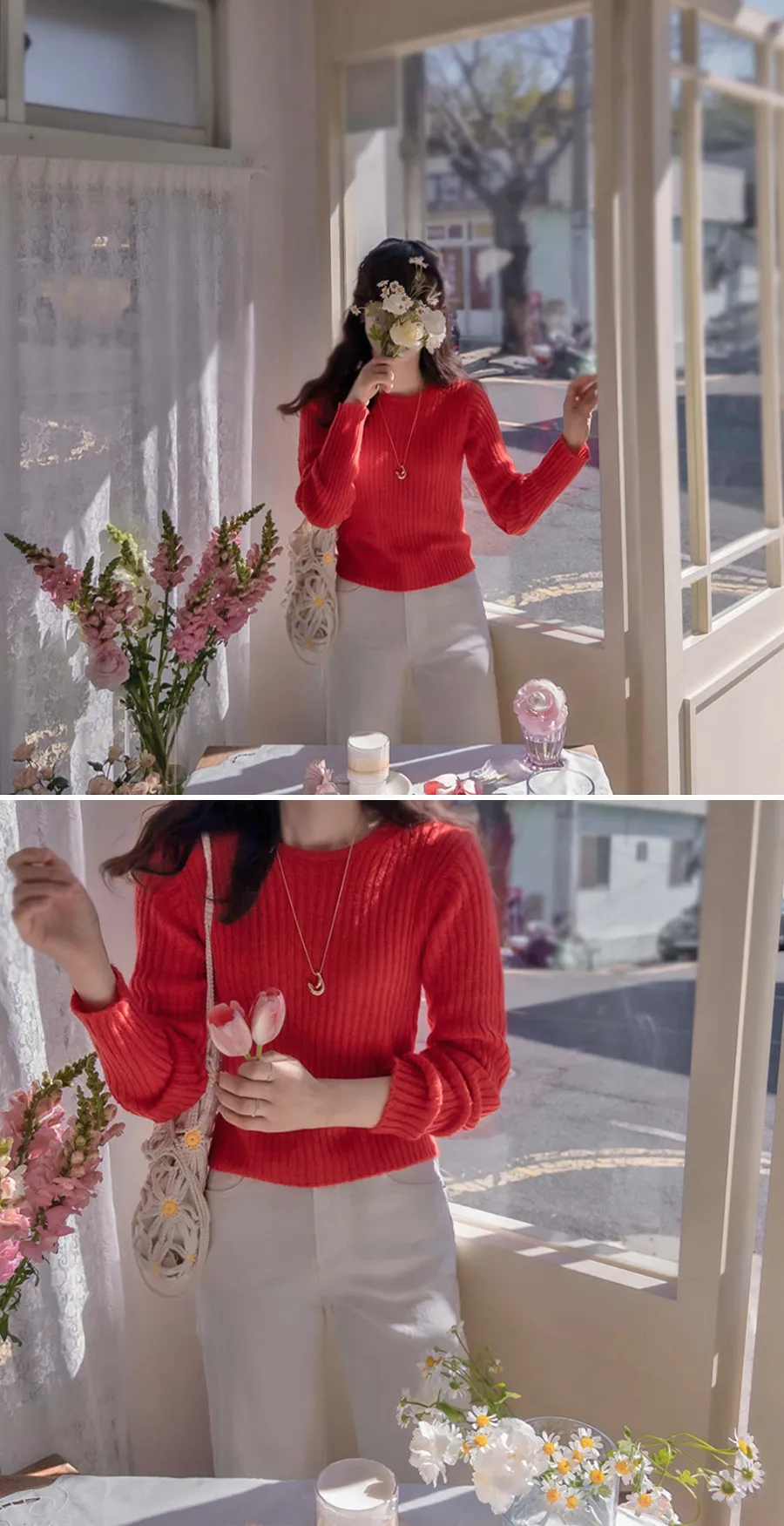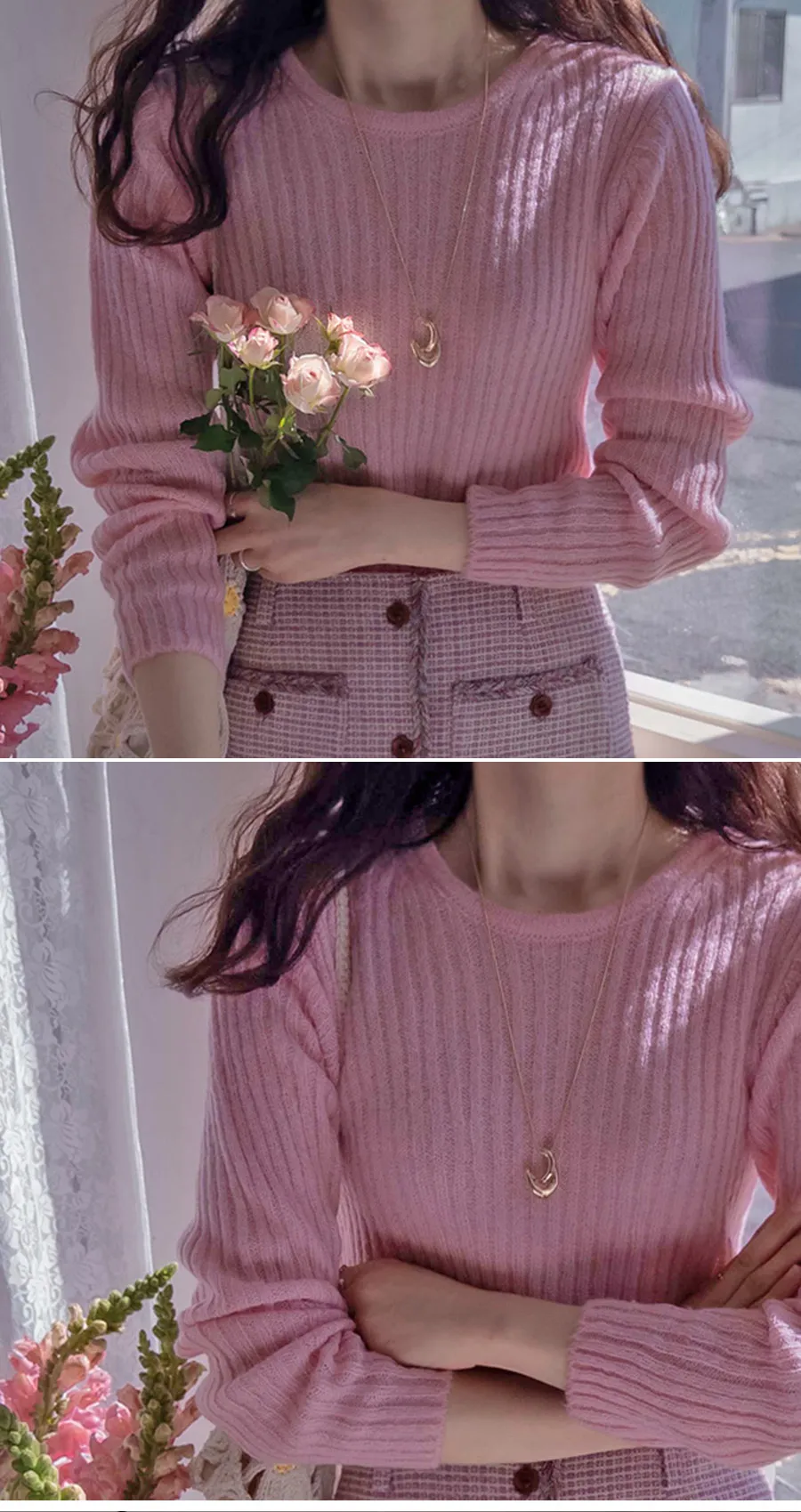 [含馬海毛材質] [適合季節的羅紋針織,顏色富有春天氣息] [修身版型,非常漂亮] [背面的吊墜是亮點] [舒適的版型,適合日常穿著] [春季風格羅紋針織] [顏色非常漂亮] [搭配性好,推薦的羅紋針織]