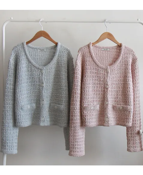 [擁有舒適的外套感的優質開衫] [具有微妙立體感的花呢開衫] [具有吸引力合身度,營造時尚氛圍] [春天般的色彩,穿起來明亮有趣] [優雅地提升風格] [作為時尚合身的春天般的時尚花呢開衫,強烈推薦]