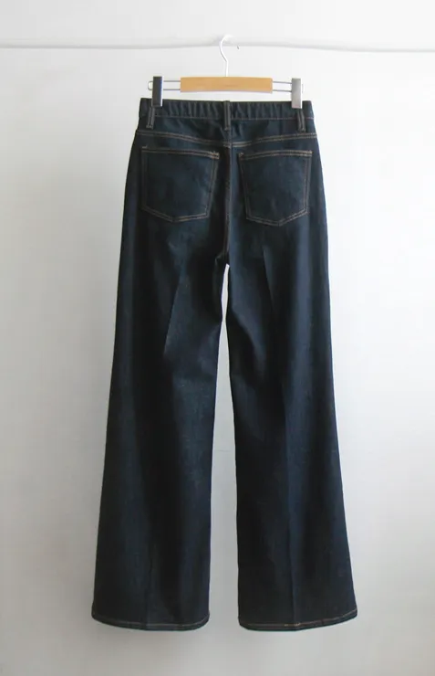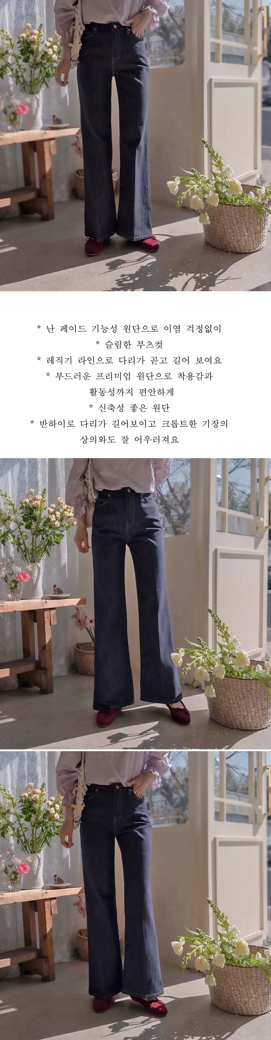 [腰帶處理] [柔軟有彈性的高級面料,具有牢固的彈性] [不褪色面料,不用擔心變色:保持牛仔布顏色的功能性面料,最大程度地減少洗滌時的變色和褪色,並長時間保持面料的顏色] [採用長腿牛仔靴剪裁,線條優美]