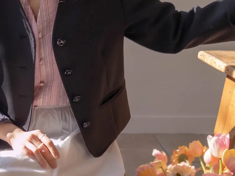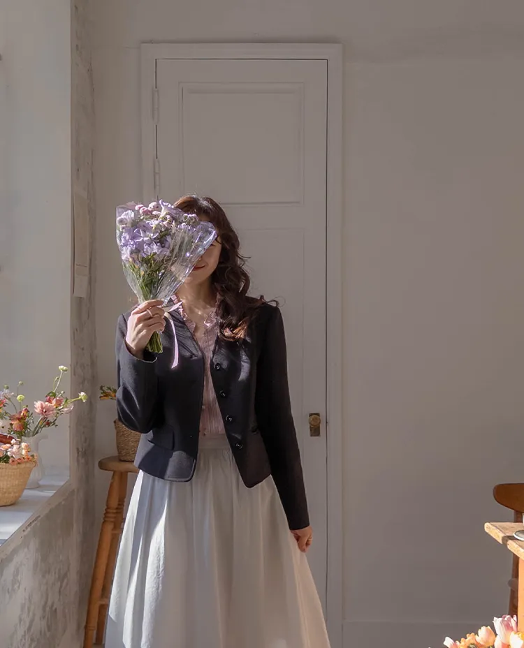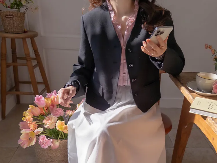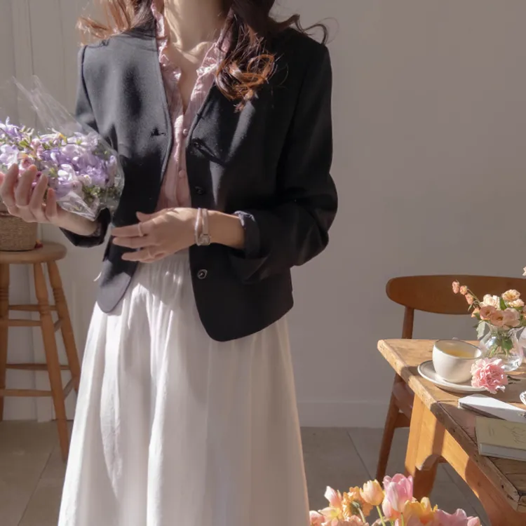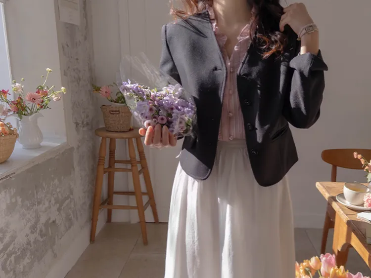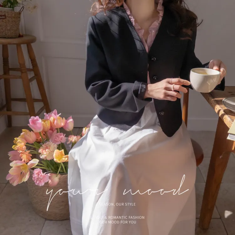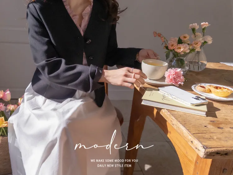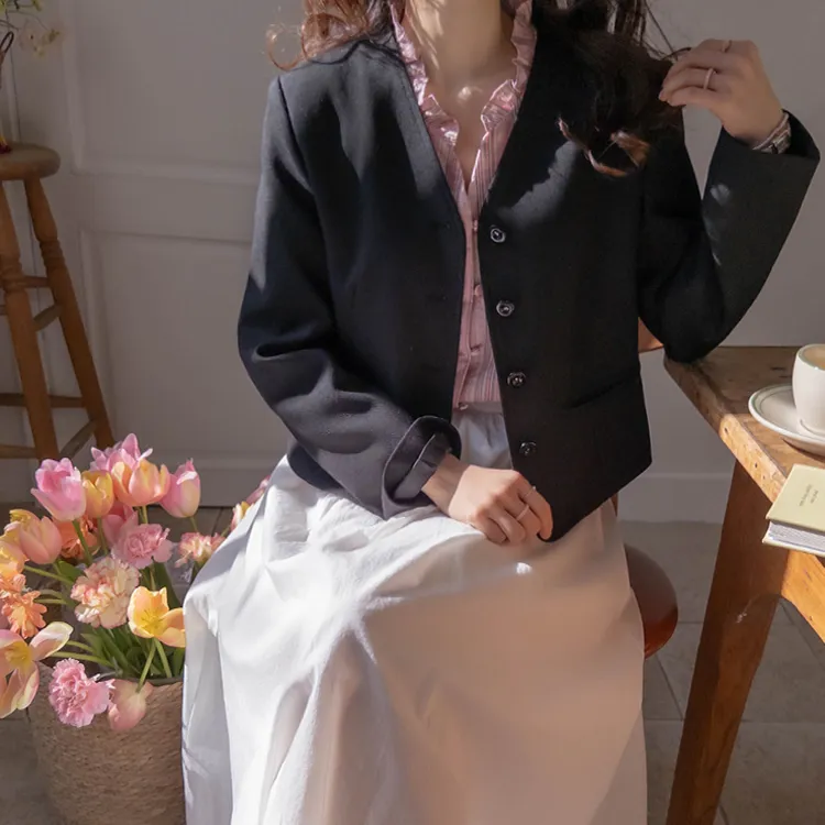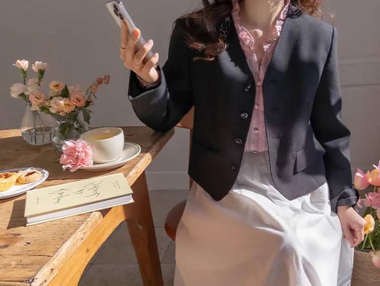 [品牌品質外套♥] [帶有奢華線條的外套] [半短款長度] [氨綸面料]
