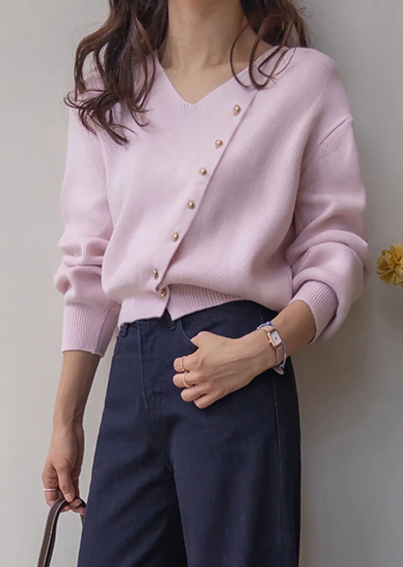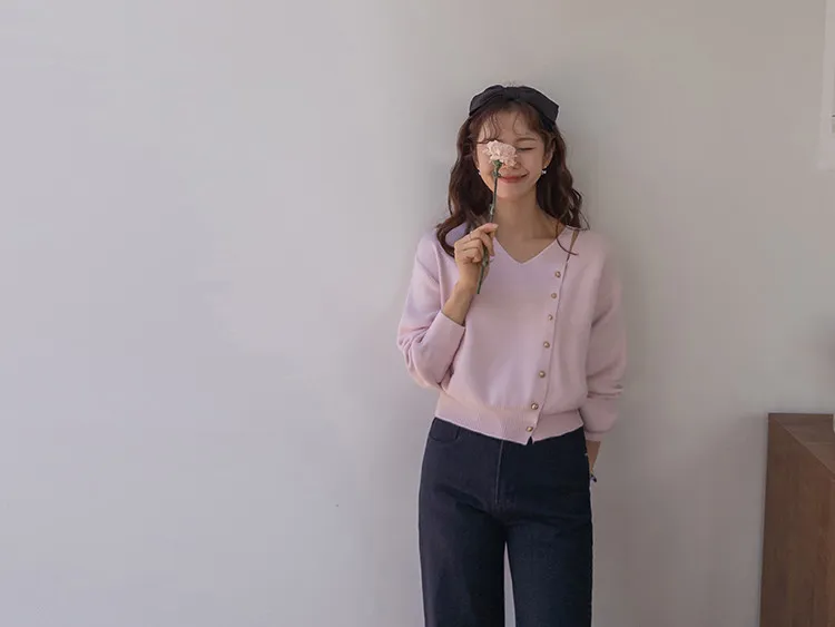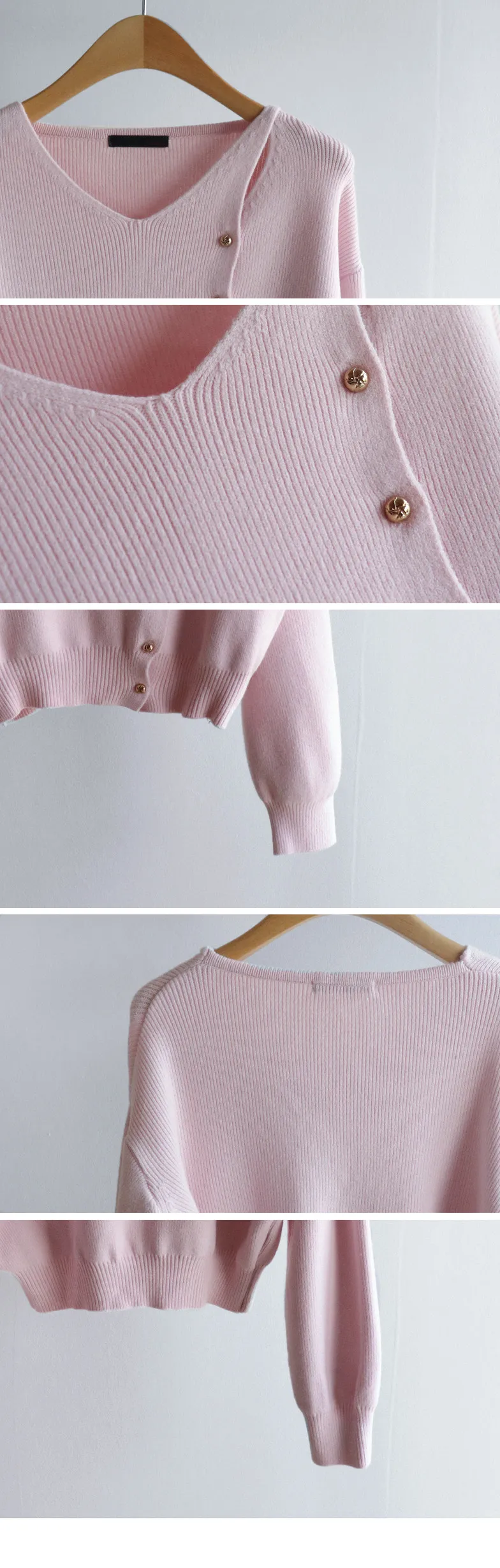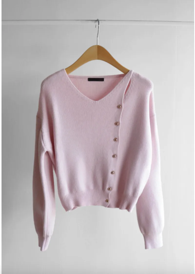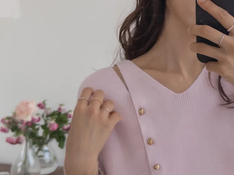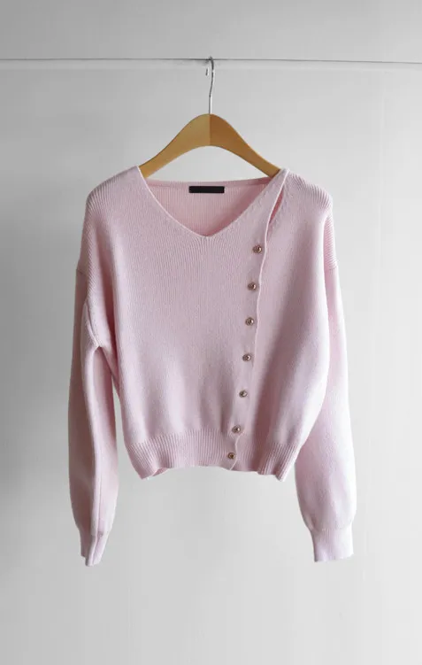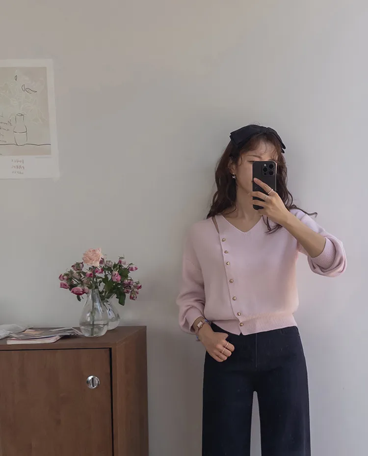 金色鈕扣] [柔軟且富有彈性的材質,穿著舒適] [充滿春天氣息的針織衫] [優雅甜美]