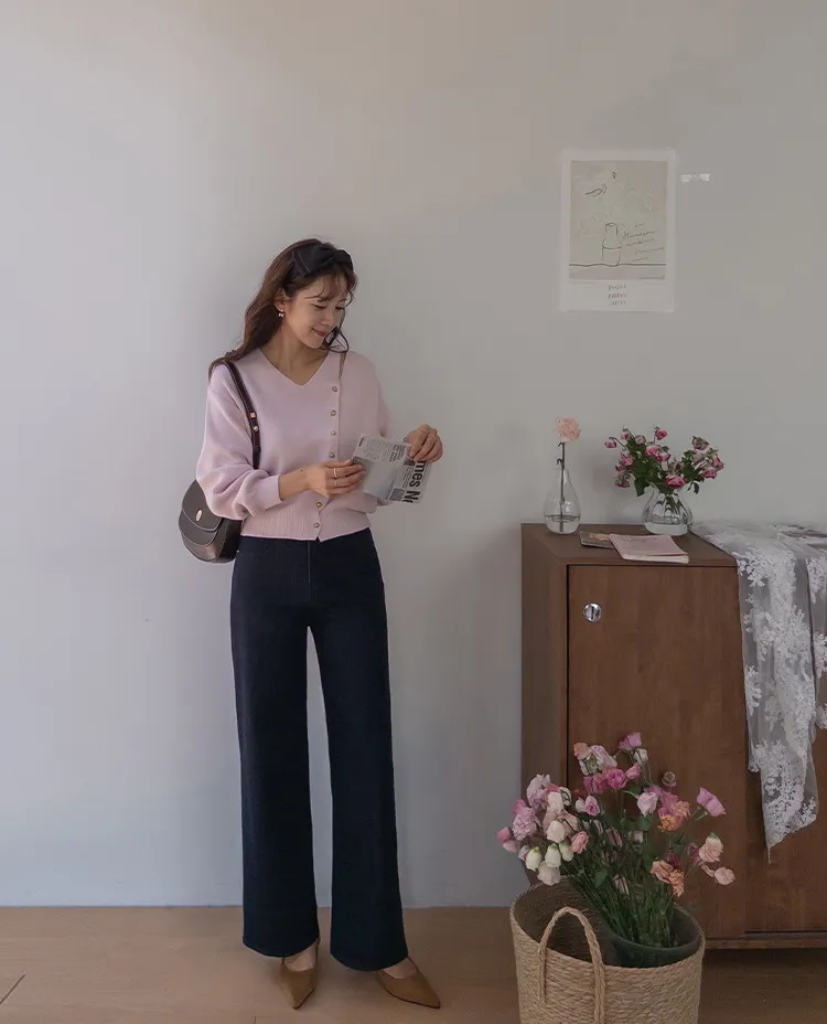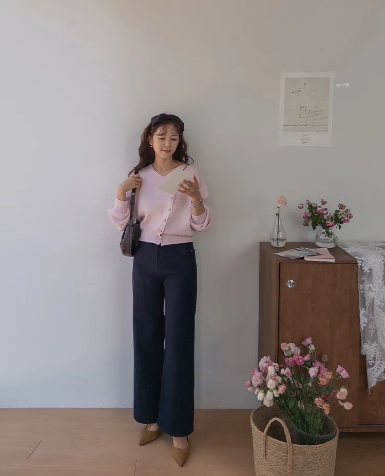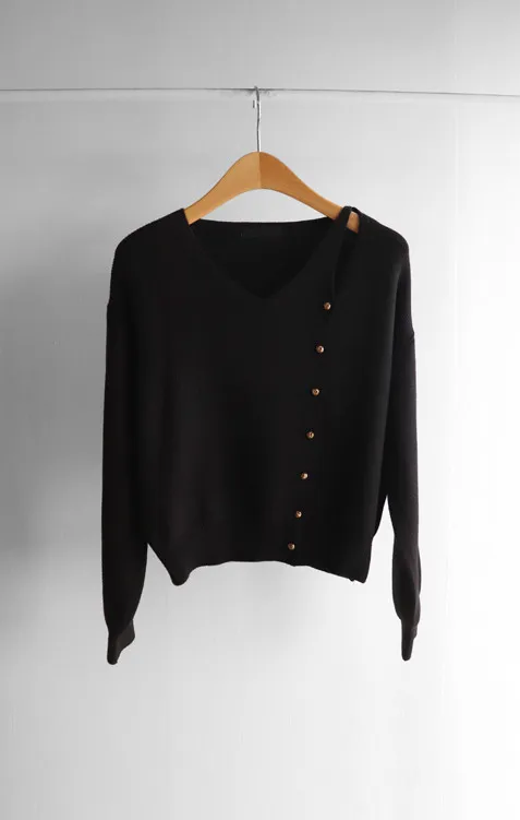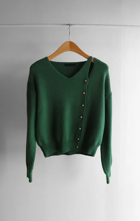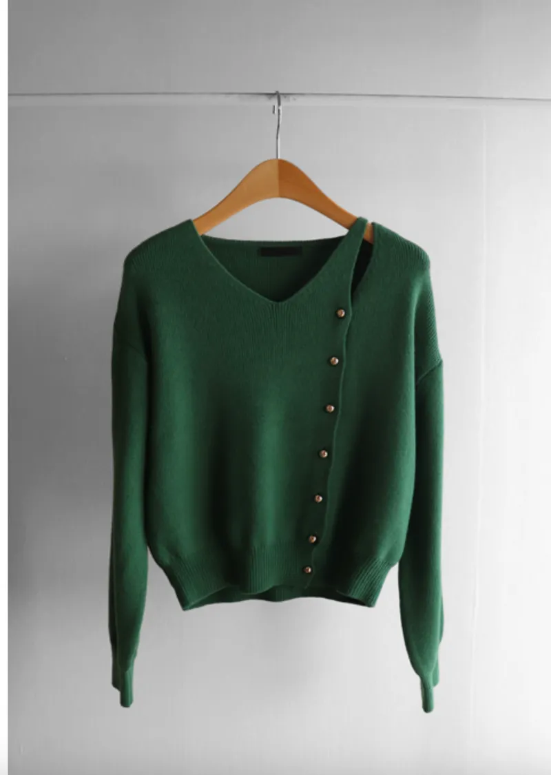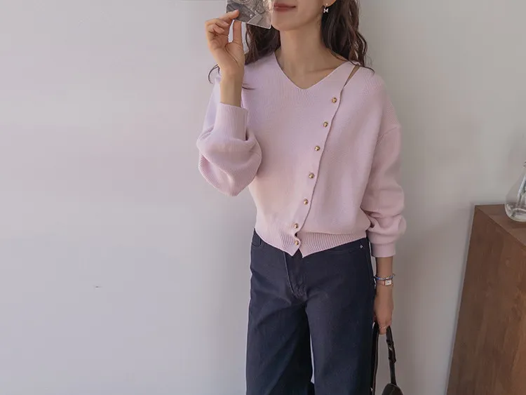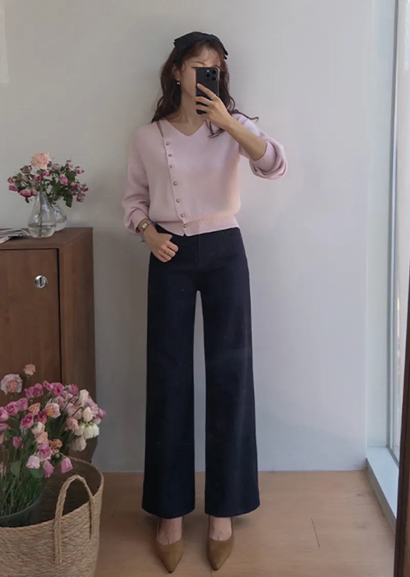 金色鈕扣] [柔軟且富有彈性的材質,穿著舒適] [充滿春天氣息的針織衫] [優雅甜美]