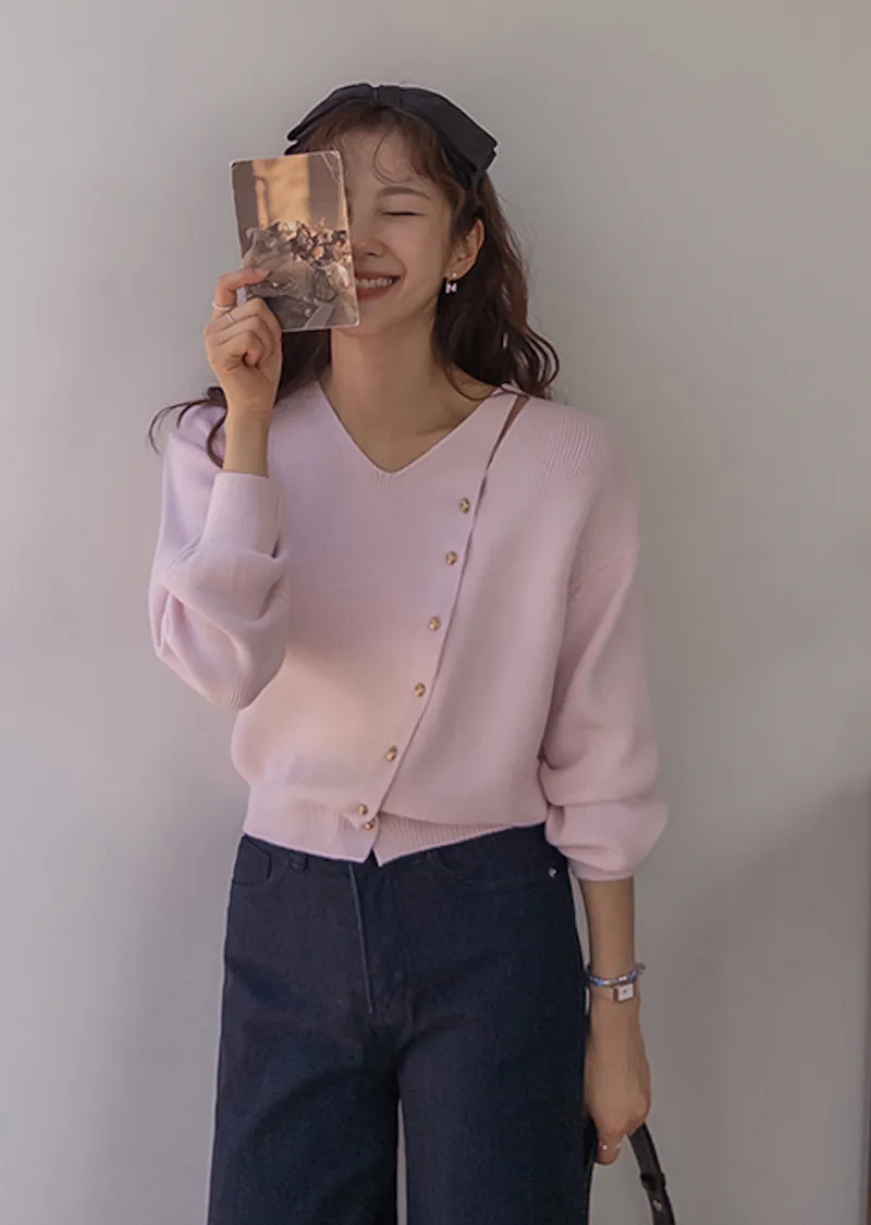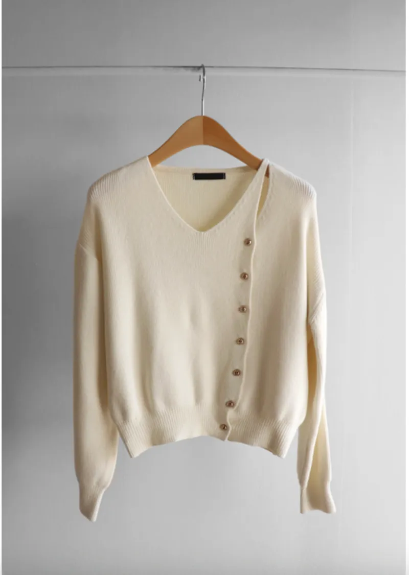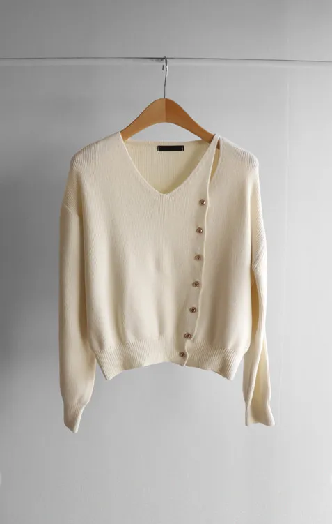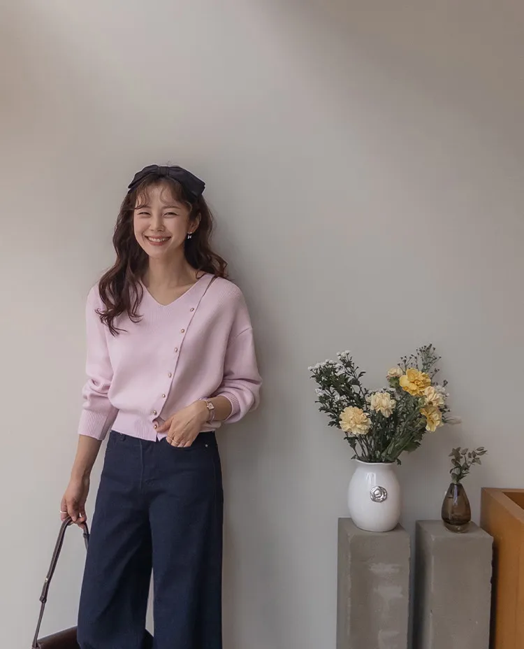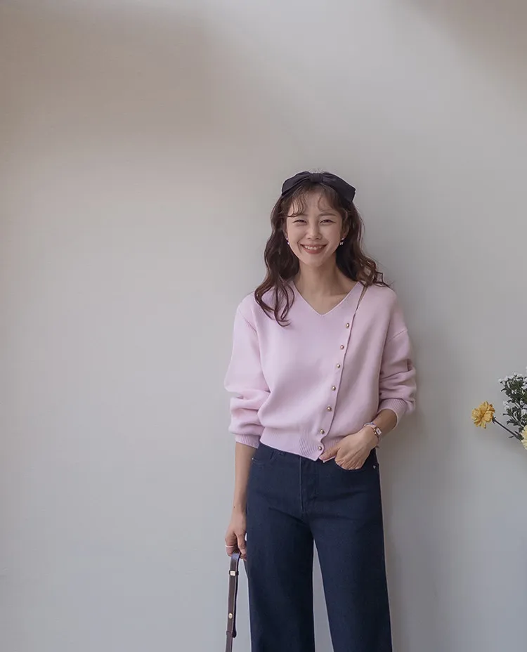 [鈕扣閉合] [柔軟有彈性的針織] [性價比高] [柔和色調的春天氣息針織] [領口有