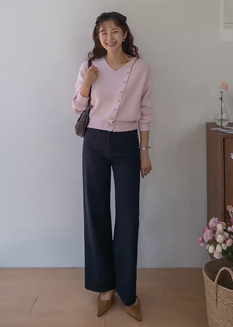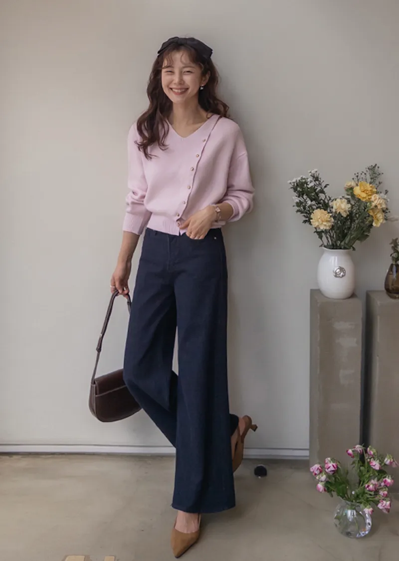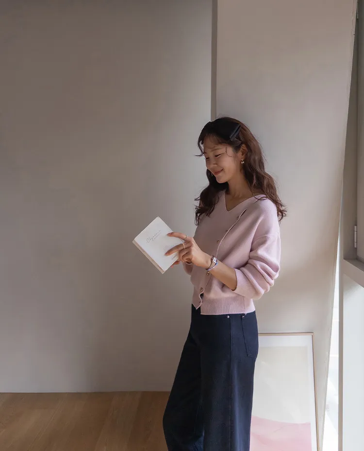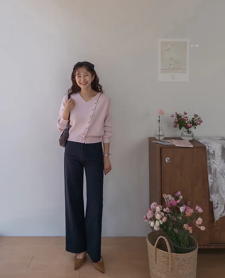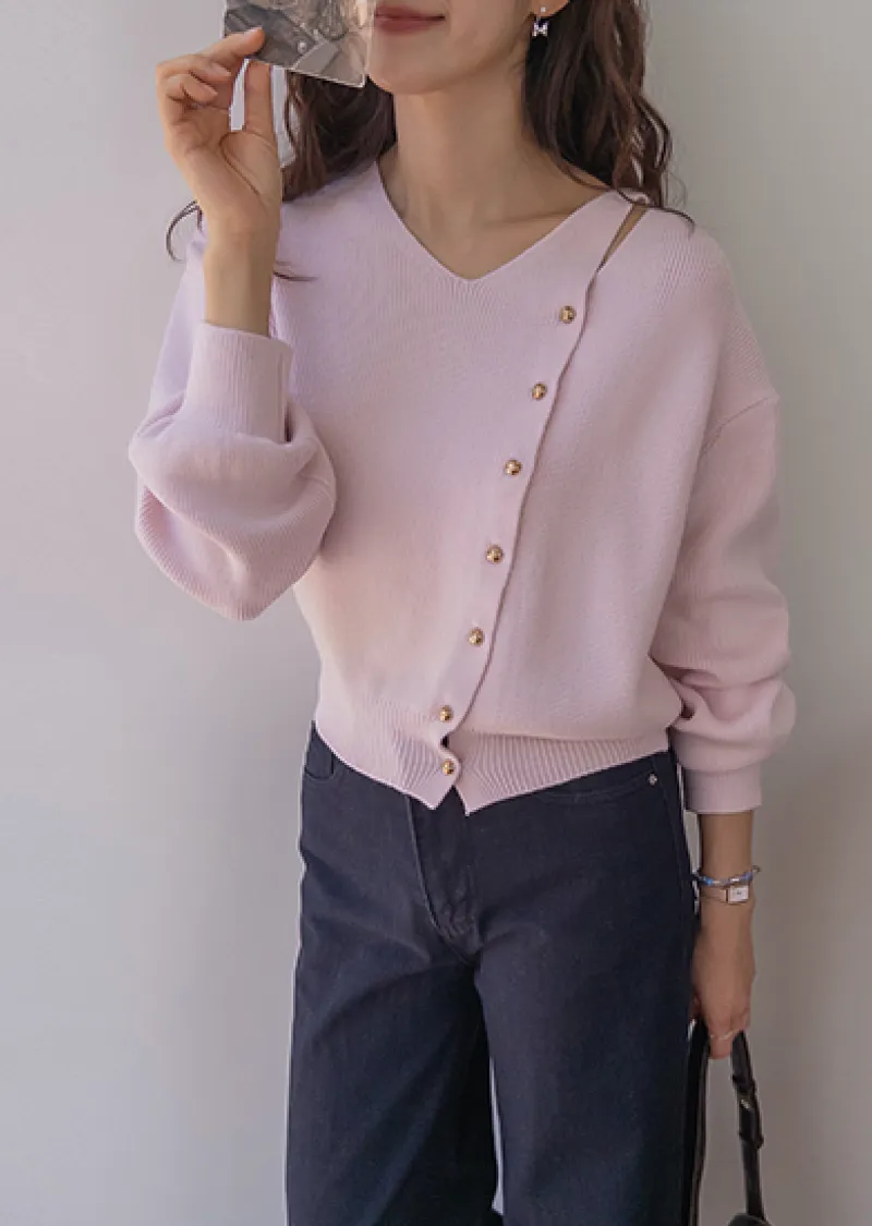 [鈕扣閉合] [柔軟有彈性的針織] [性價比高] [柔和色調的春天氣息針織] [領口有