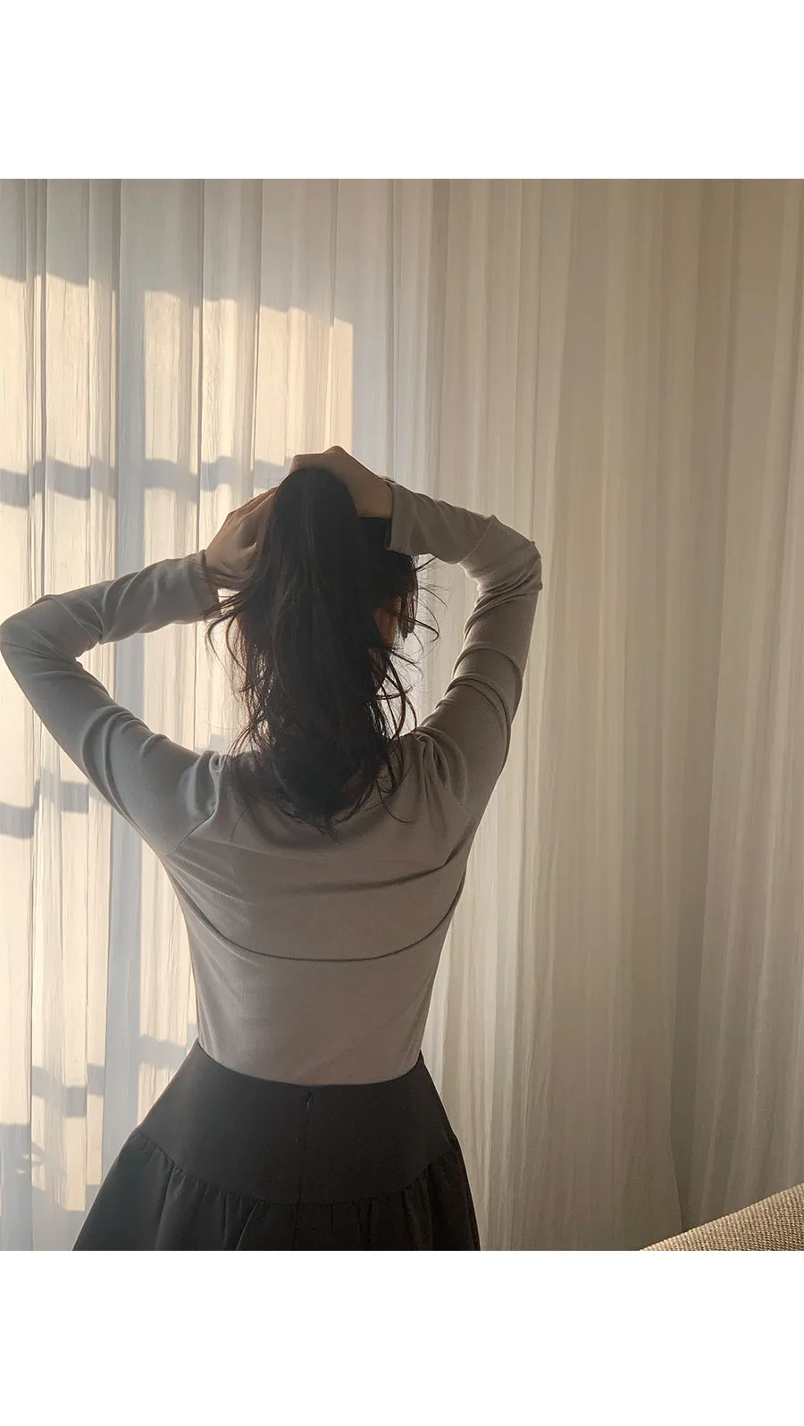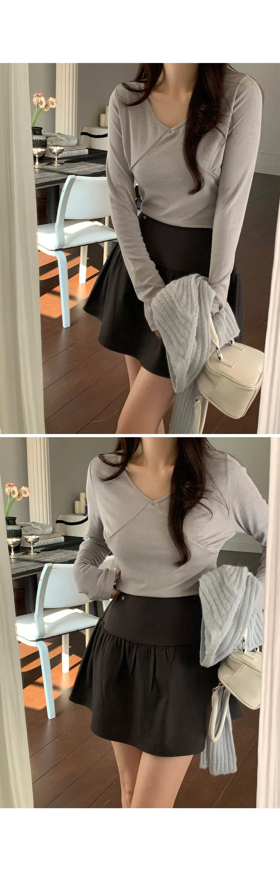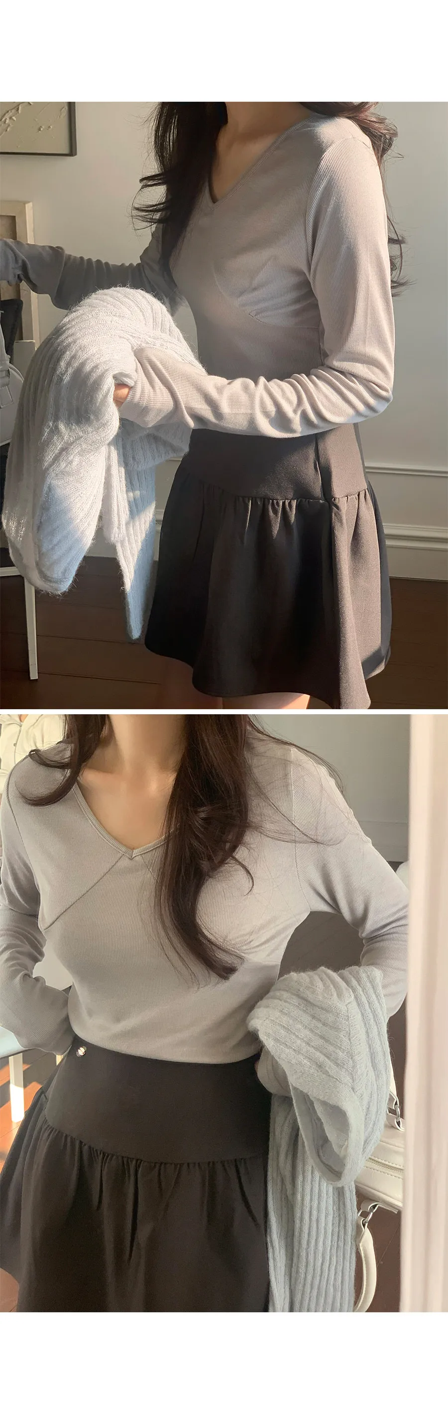 魅力胸線線條感性V領袖長款上衣
