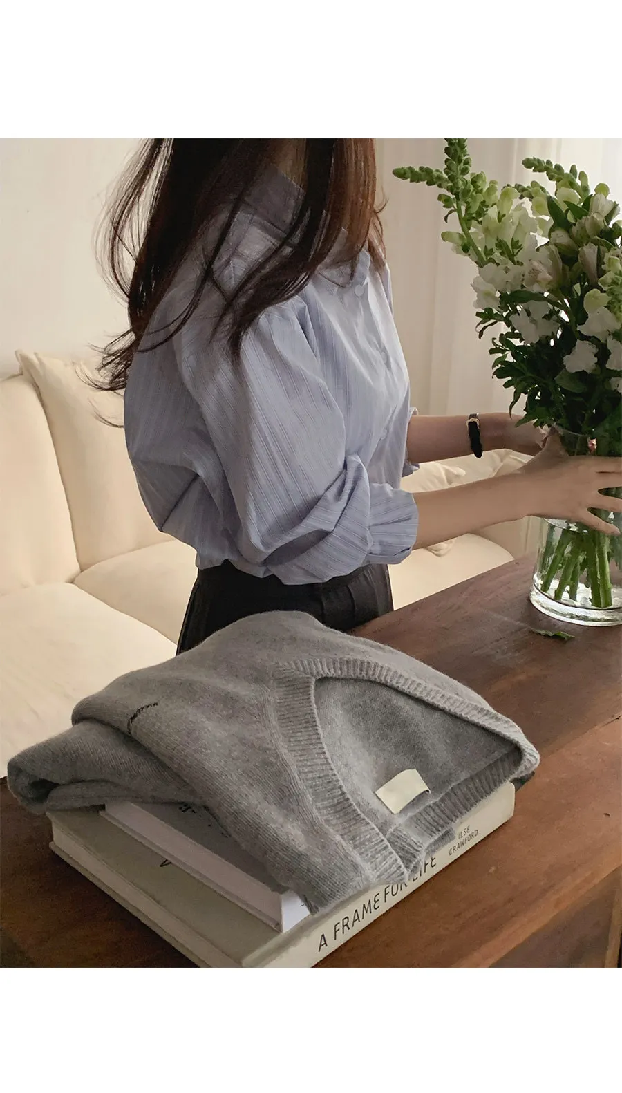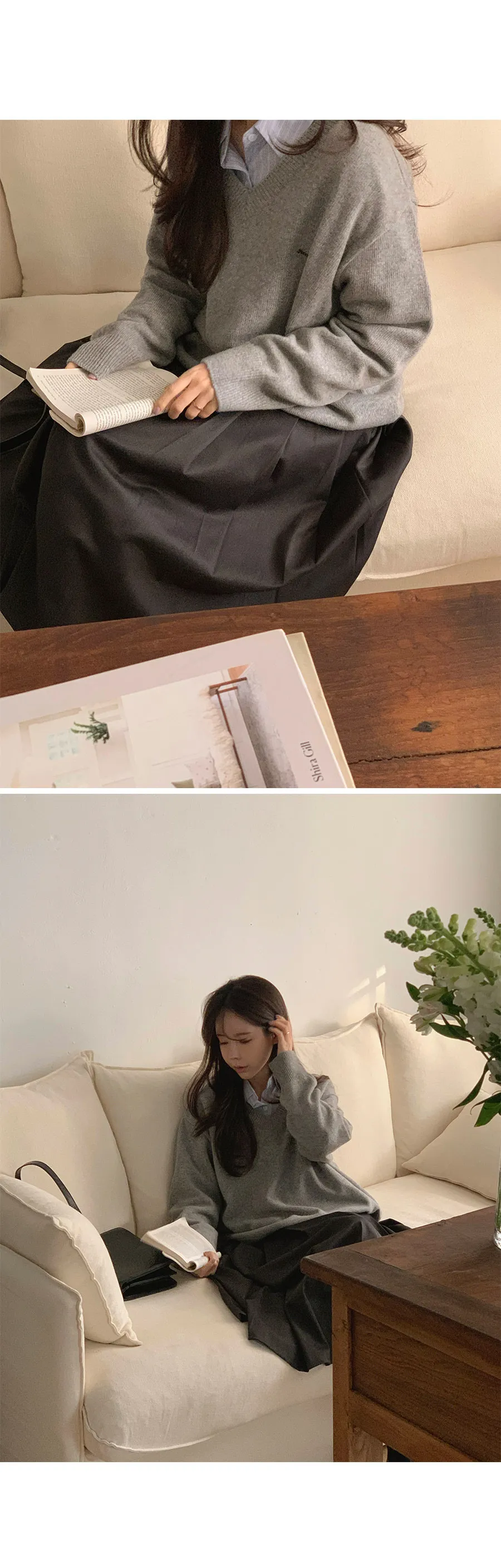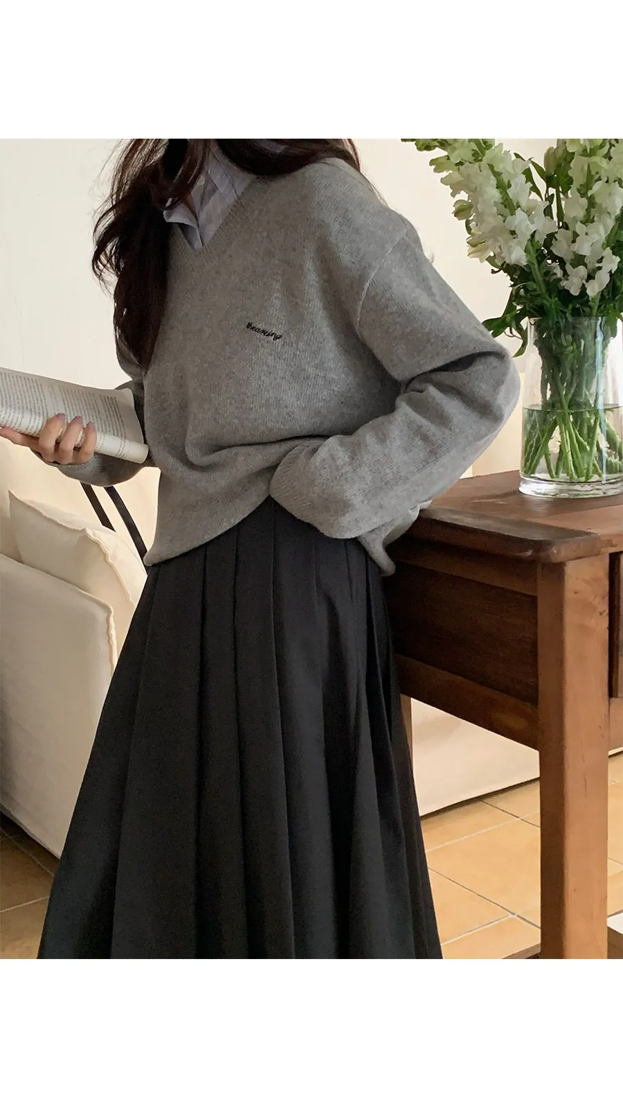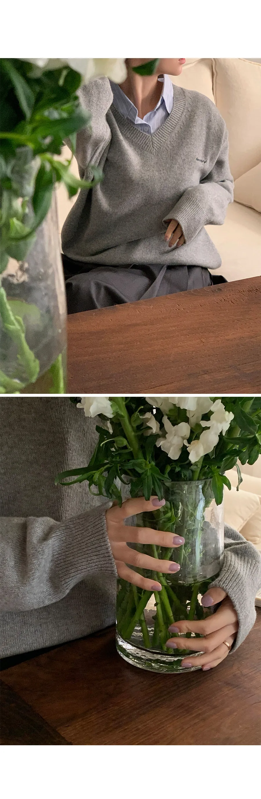 精緻氛圍V領側字母刺繡寬鬆版型針織上衣