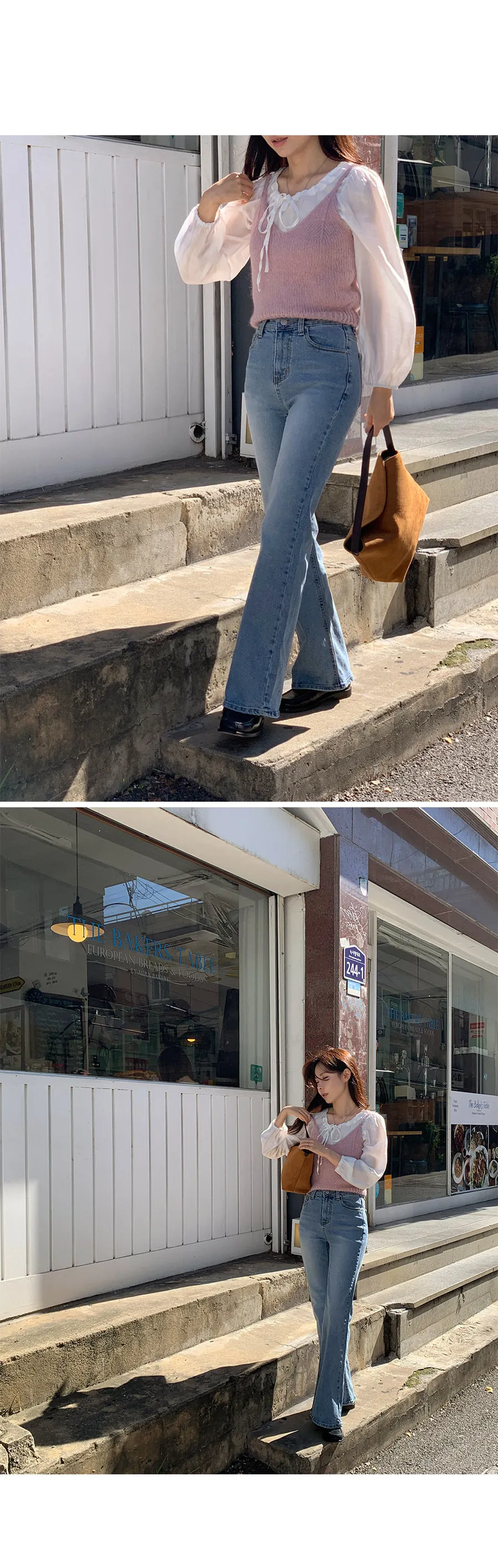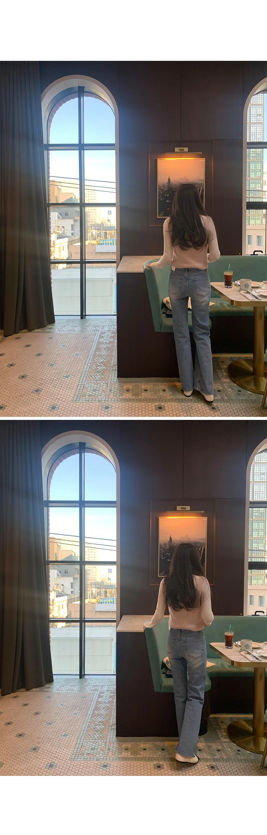 明亮清澈氛圍半靴型剪裁修身牛仔褲