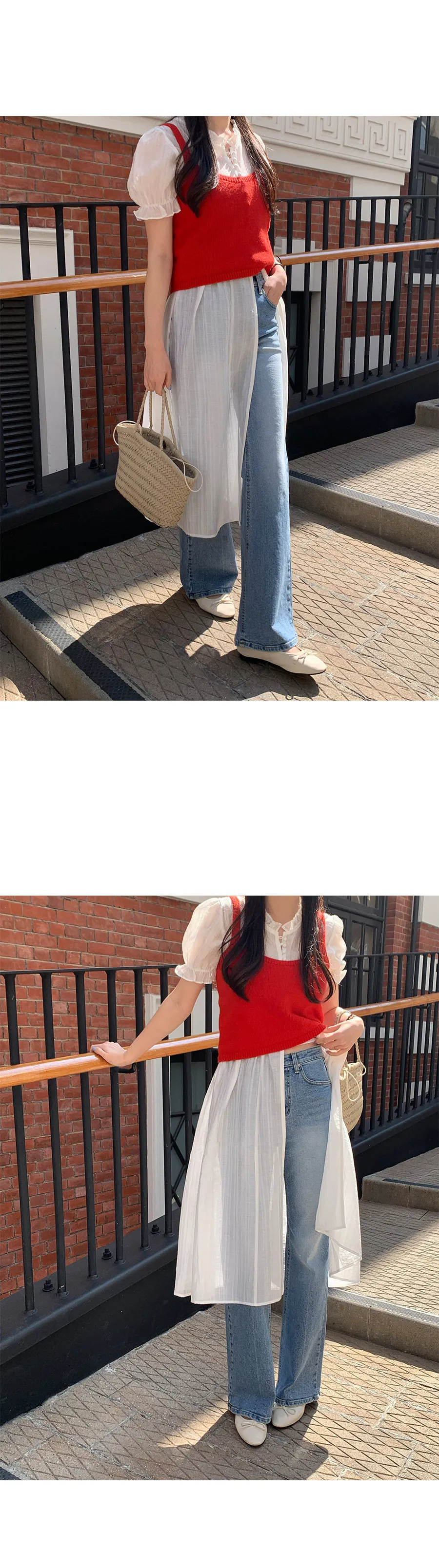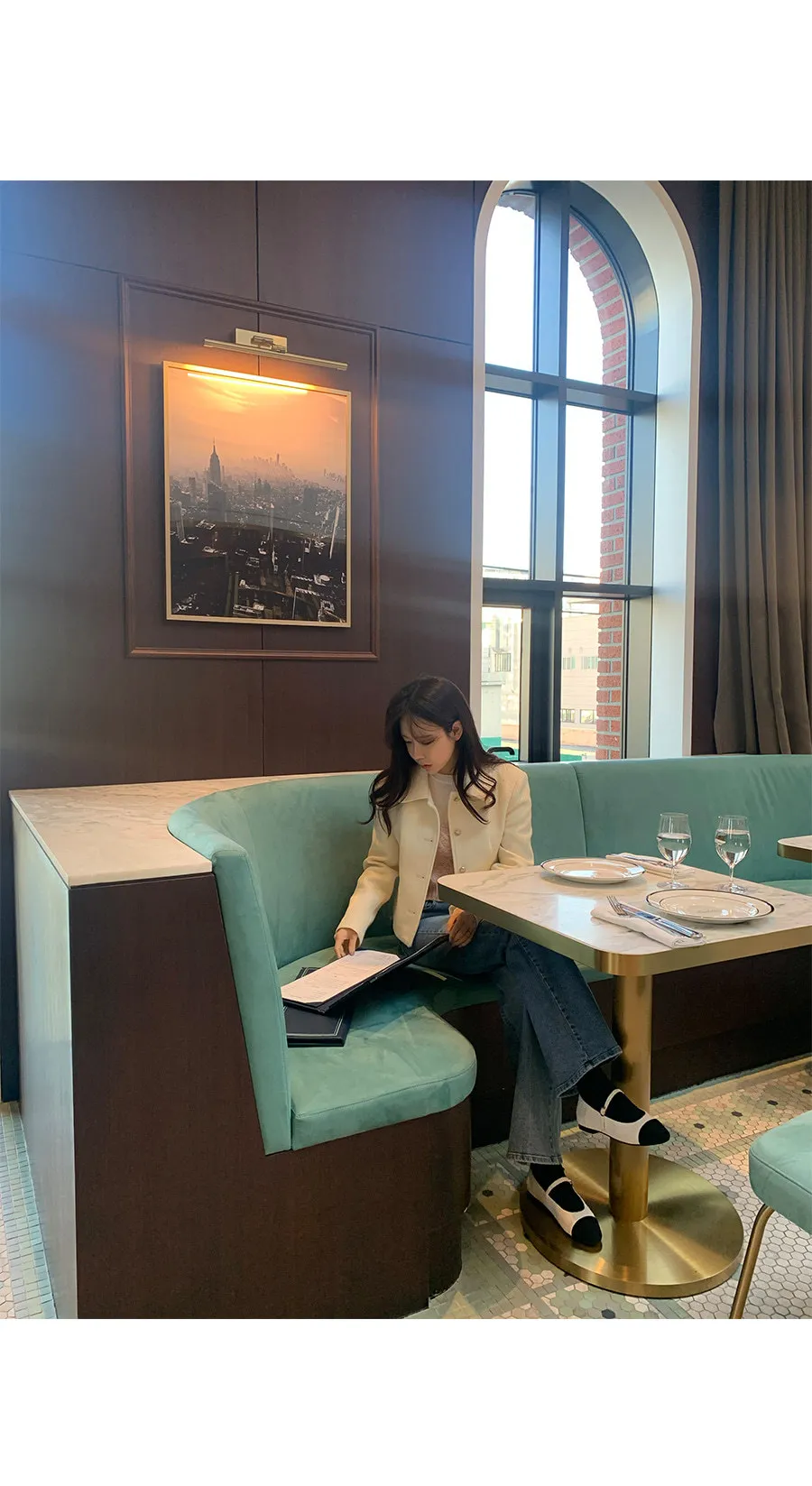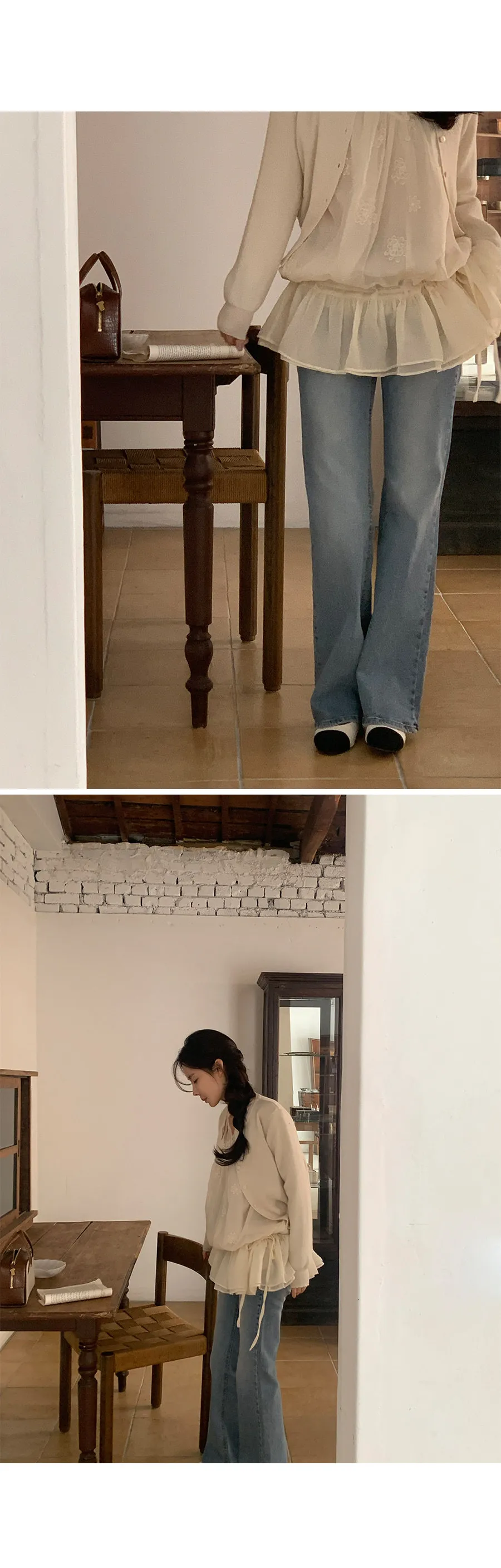 以淡藍色營造出明亮清澈的氛圍,並採用從膝蓋處略微向外展開的半靴型剪裁,打造出精緻的服裝!