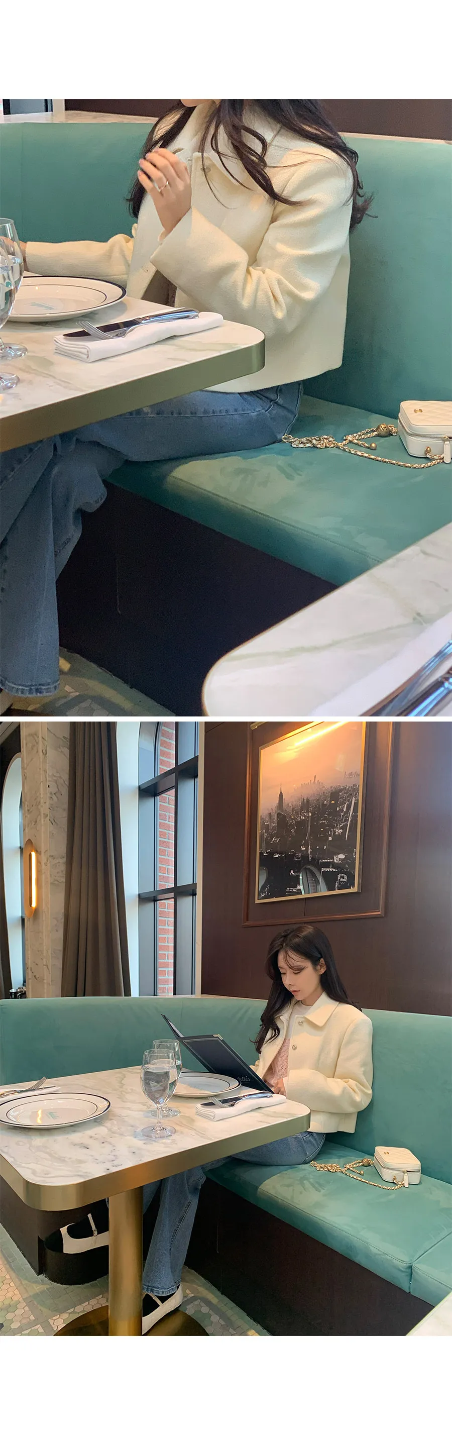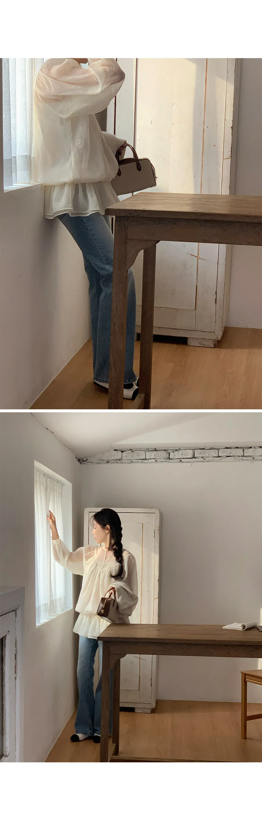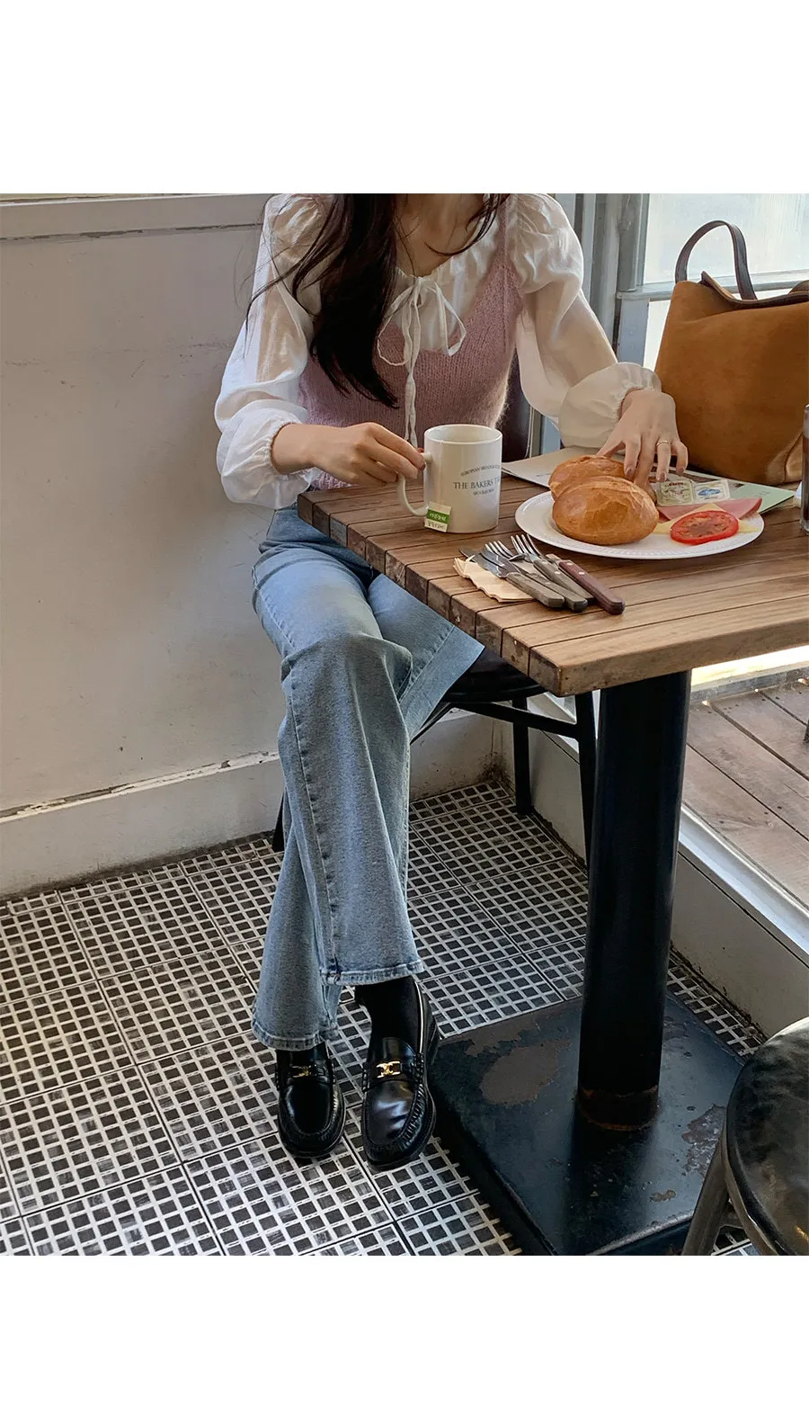 以淡藍色營造出明亮清澈的氛圍,並採用從膝蓋處略微向外展開的半靴型剪裁,打造出精緻的服裝!