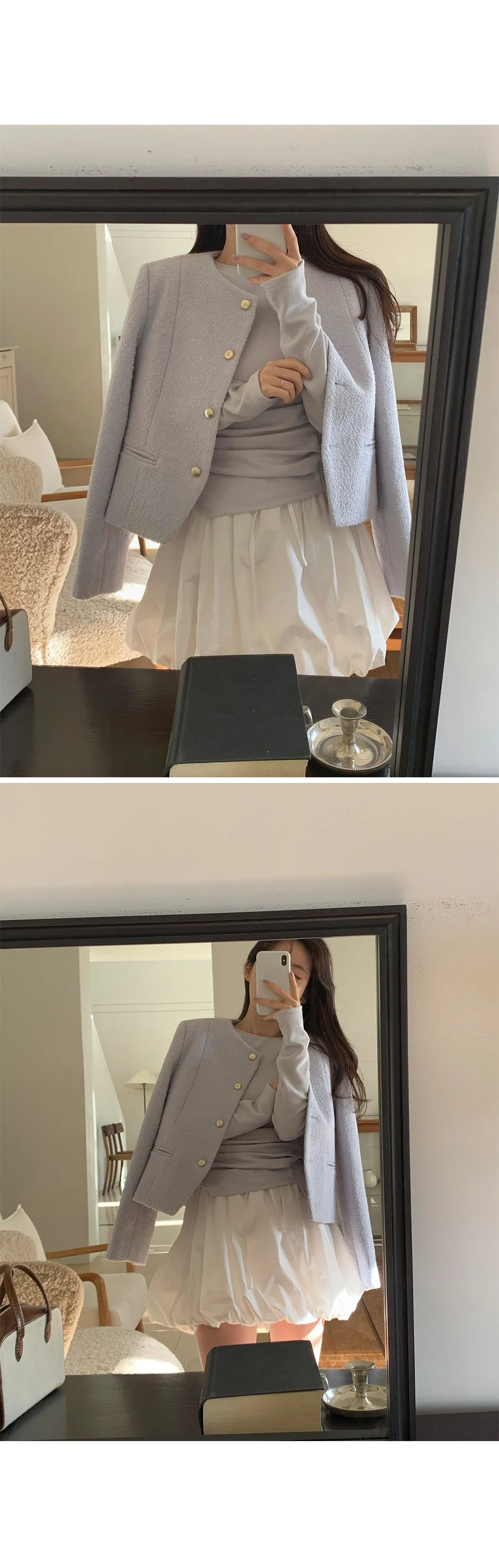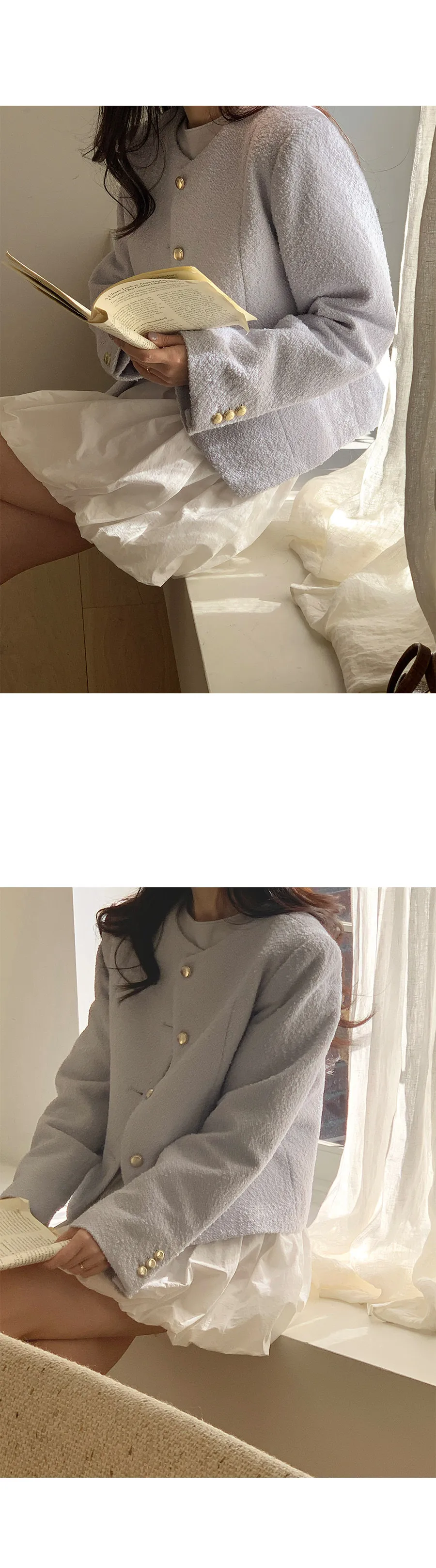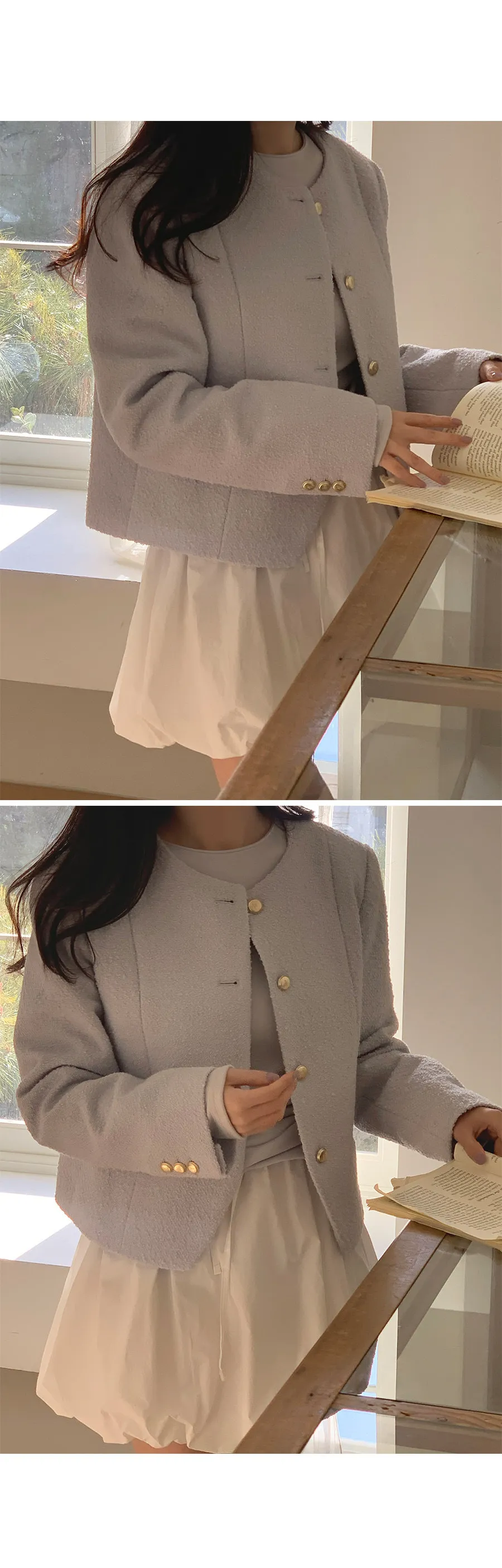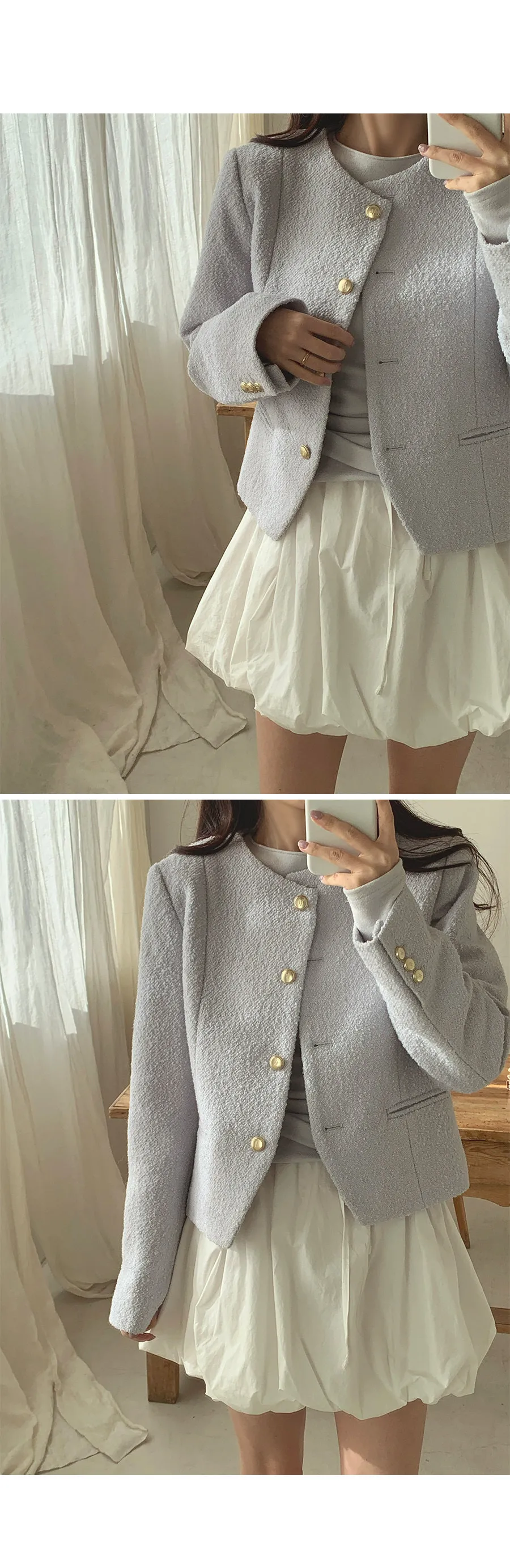 精緻現代感剪裁金扣花呢外套