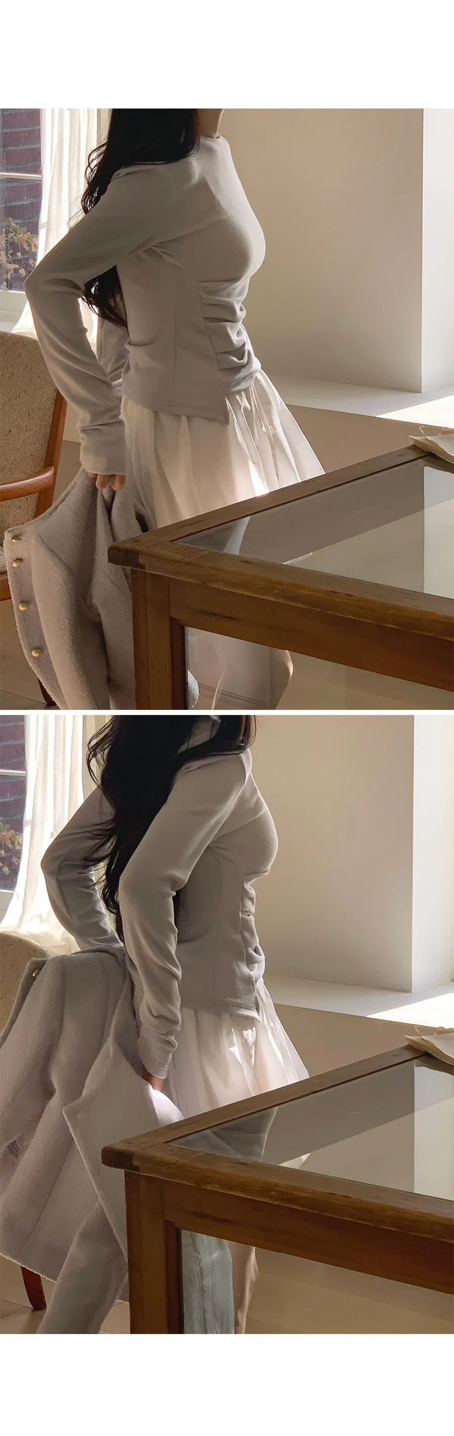 獨特精緻氛圍圓領下擺垂墜輪廓修身上衣