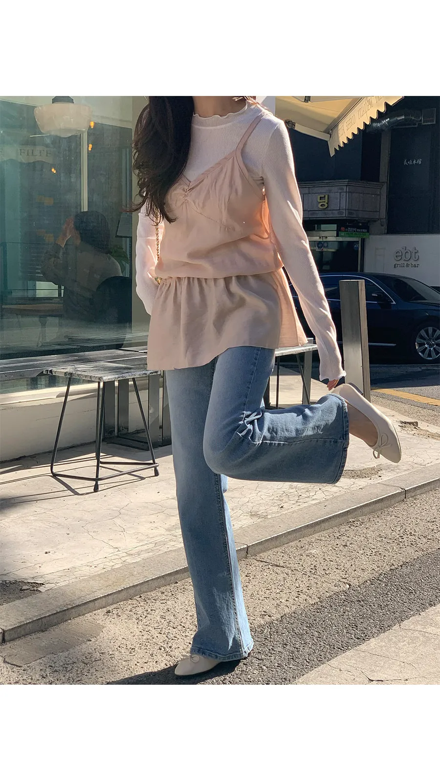 明亮清澈氛圍半靴型剪裁修身牛仔褲