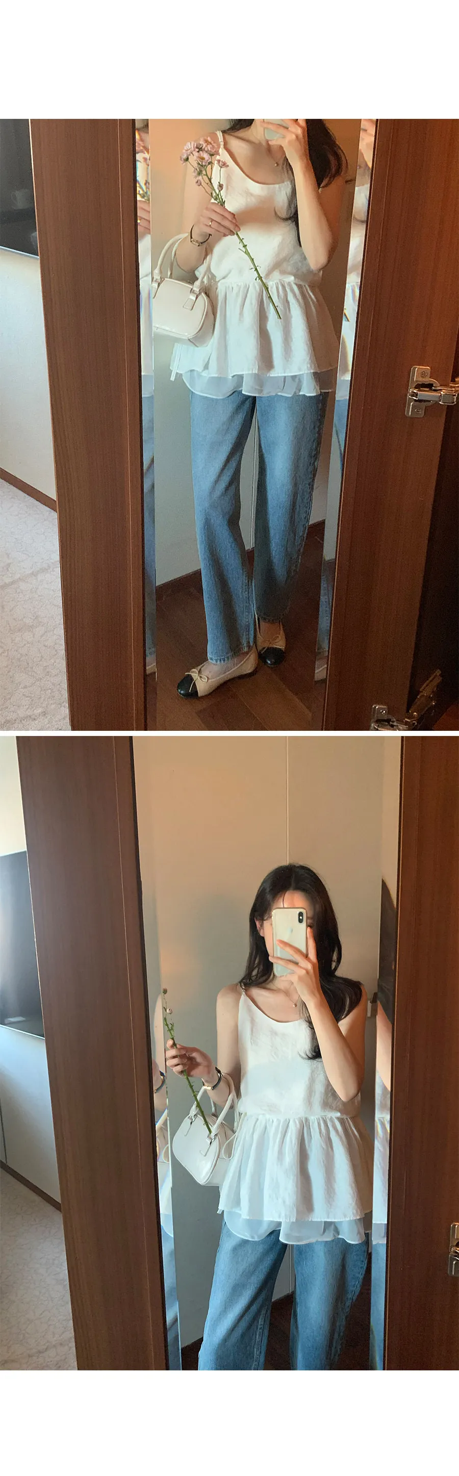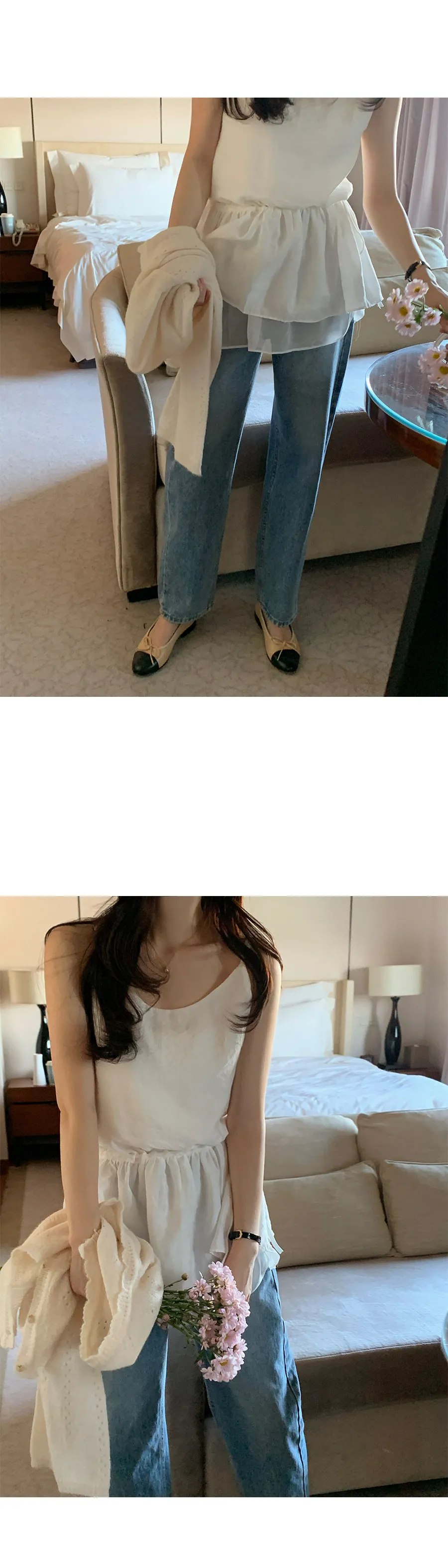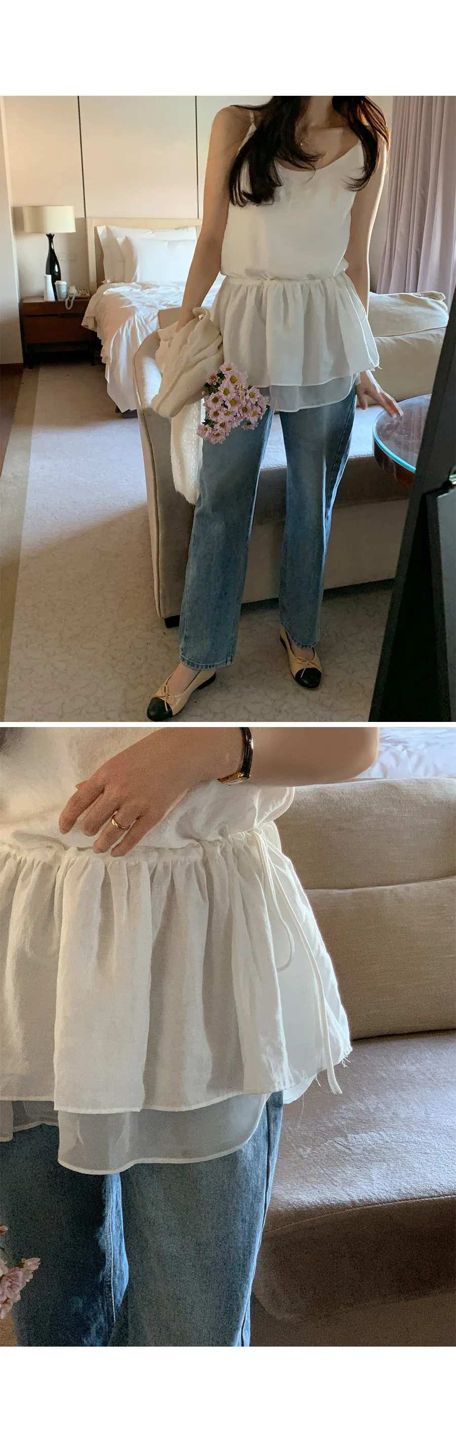 浪漫情調雙層次下擺腰綁帶穿搭無袖上衣