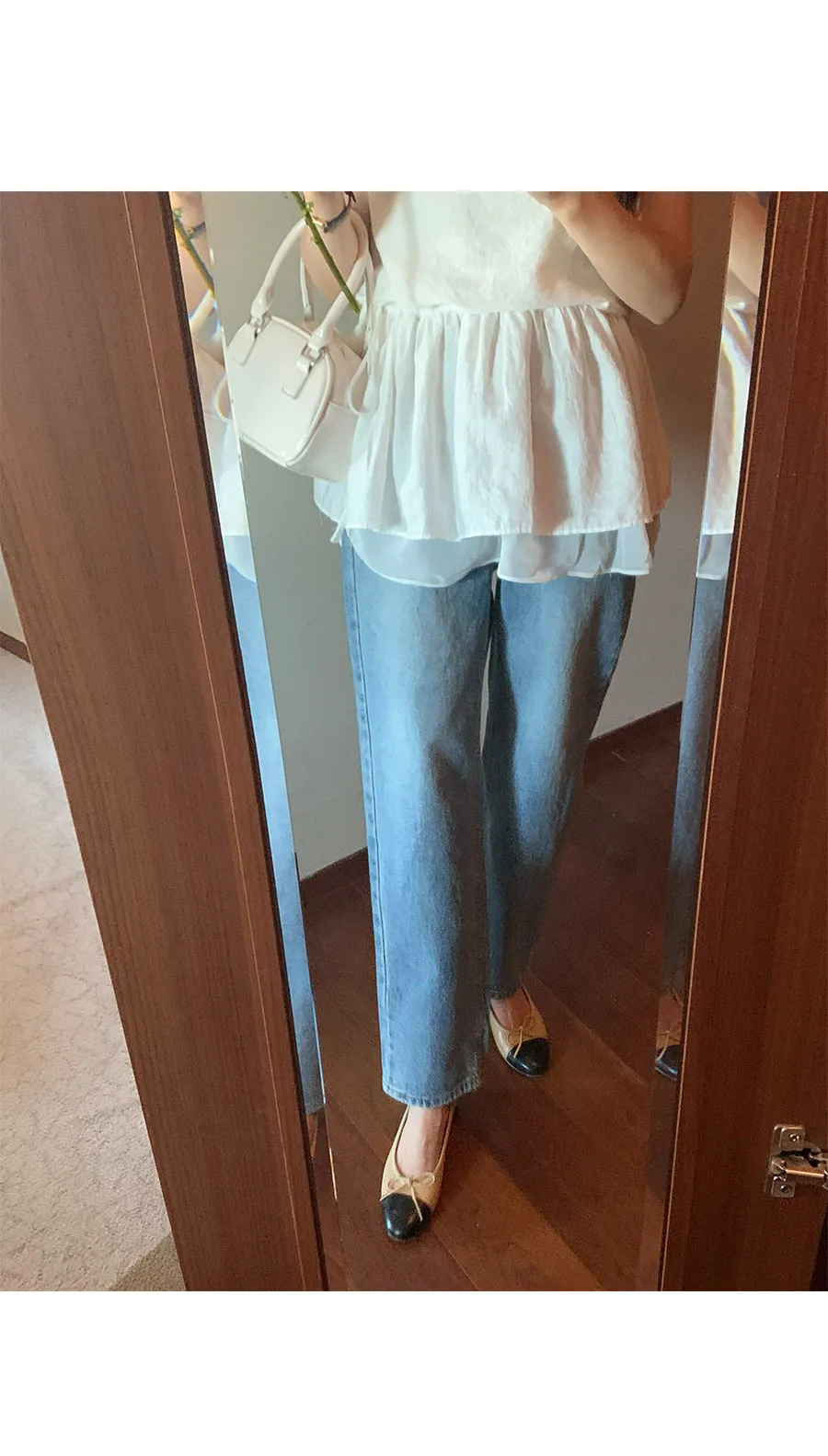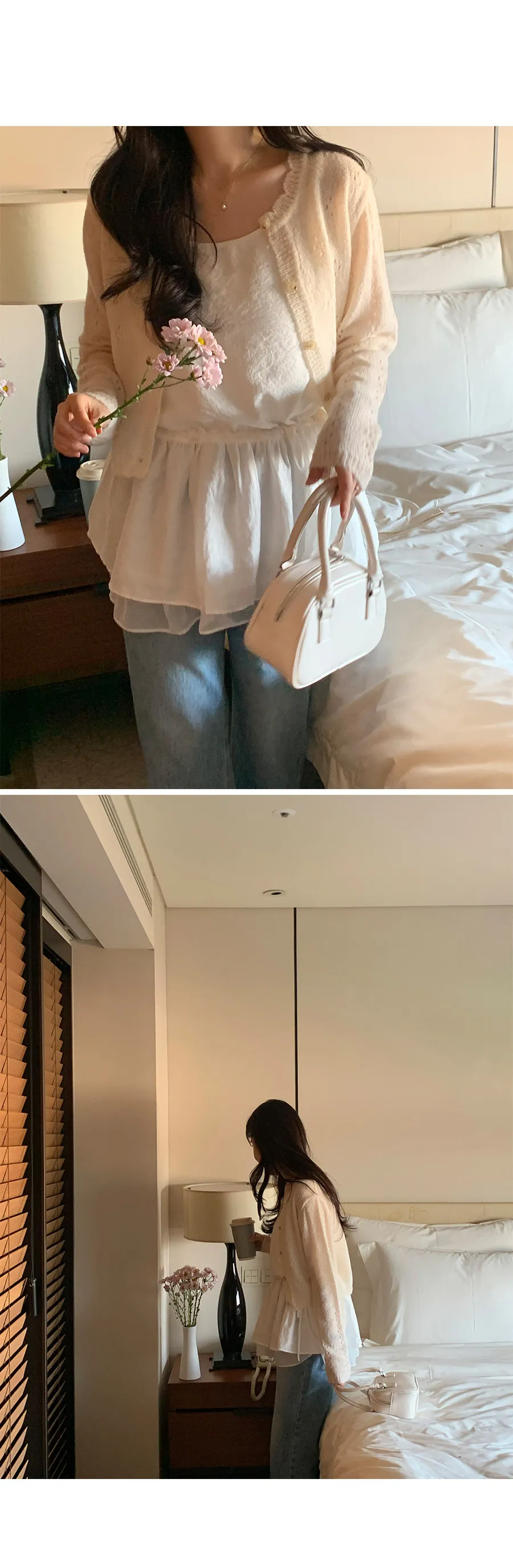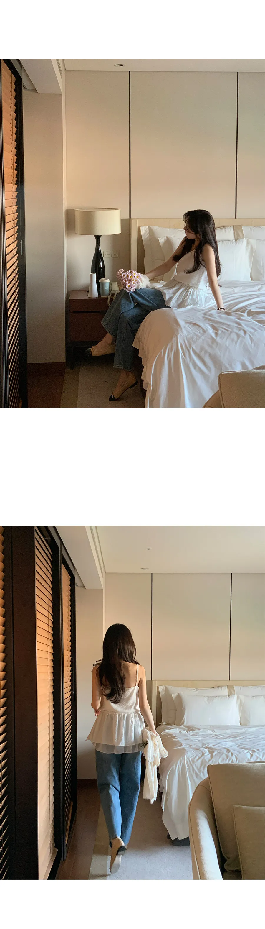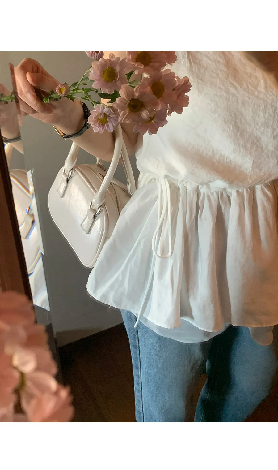 浪漫情調雙層次下擺腰綁帶穿搭無袖上衣