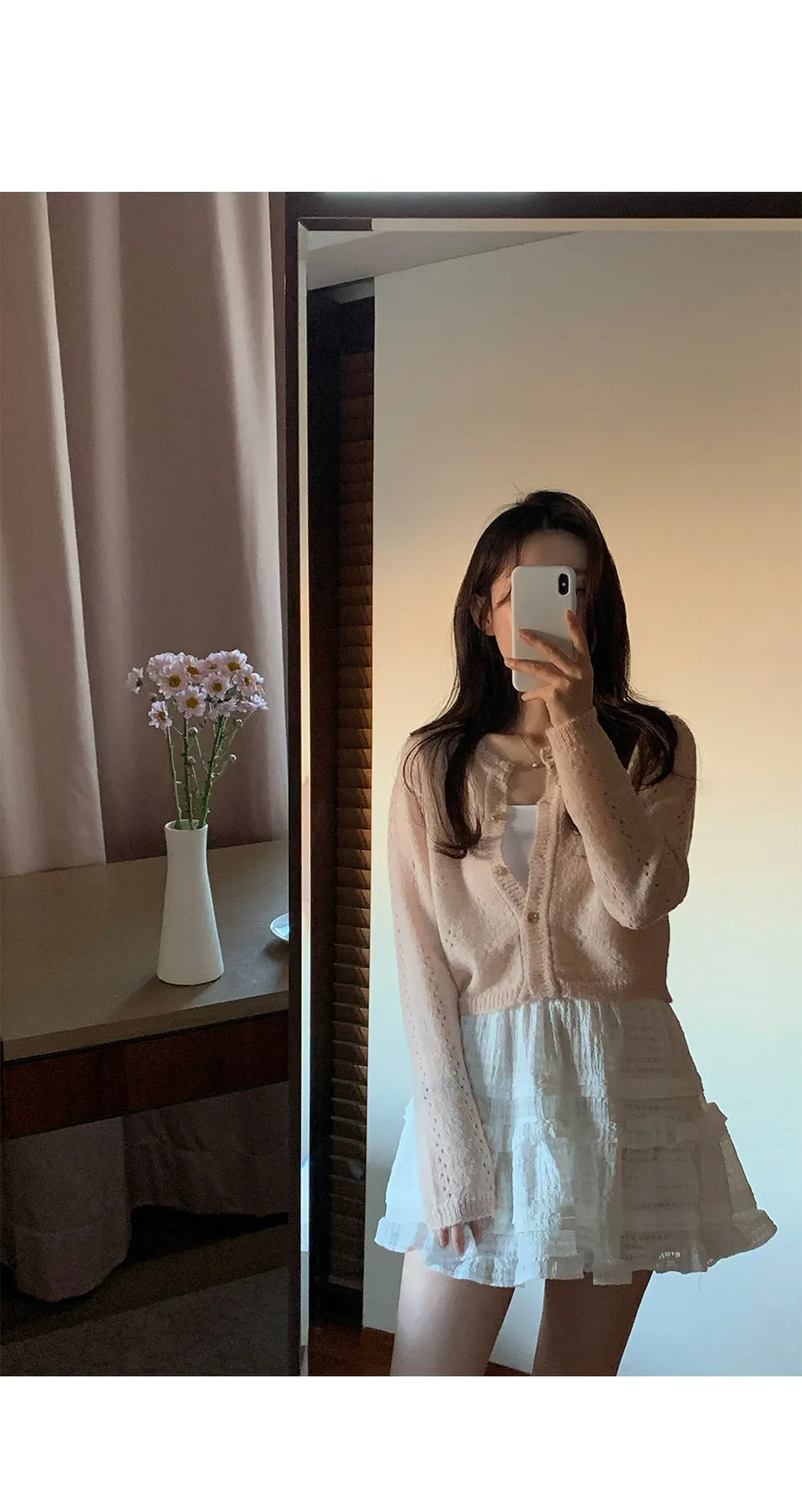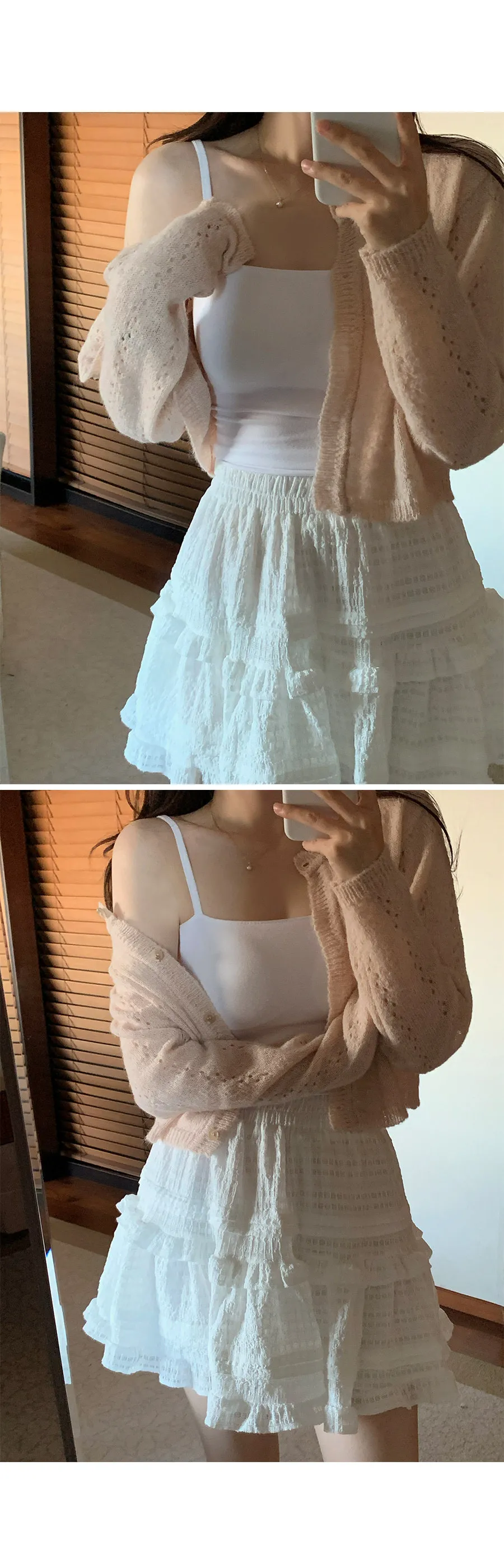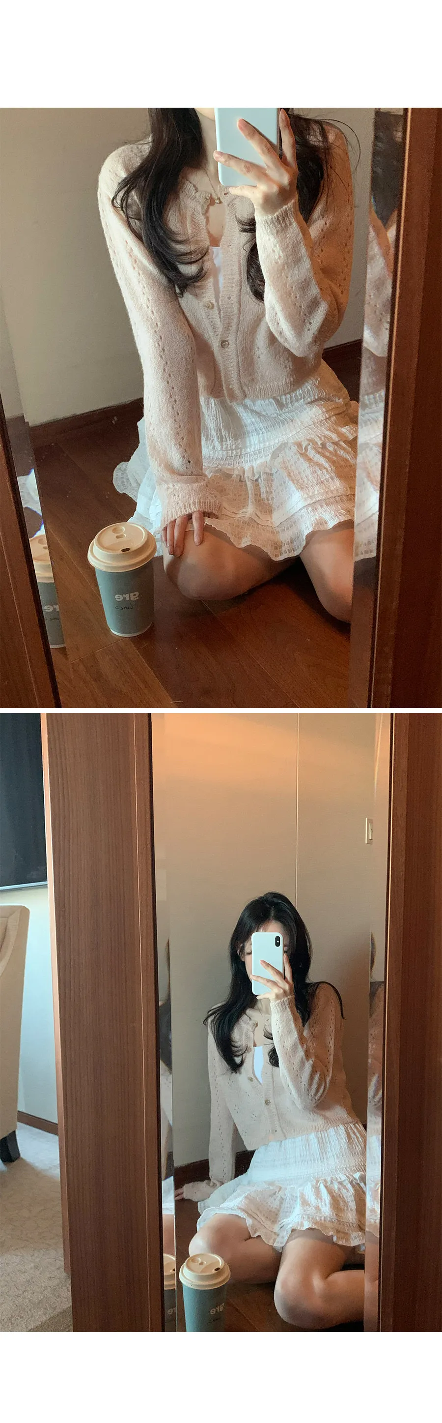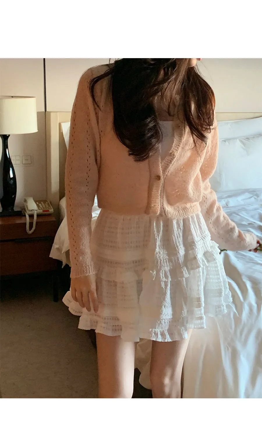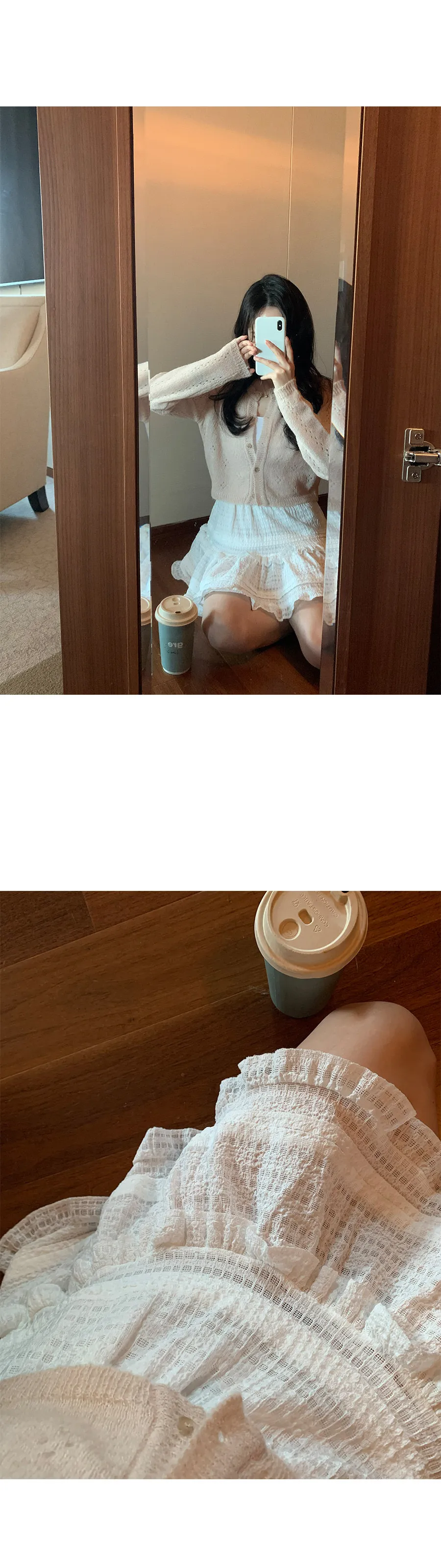 可愛氛圍褶皺蕾絲層次裙擺短褲裙