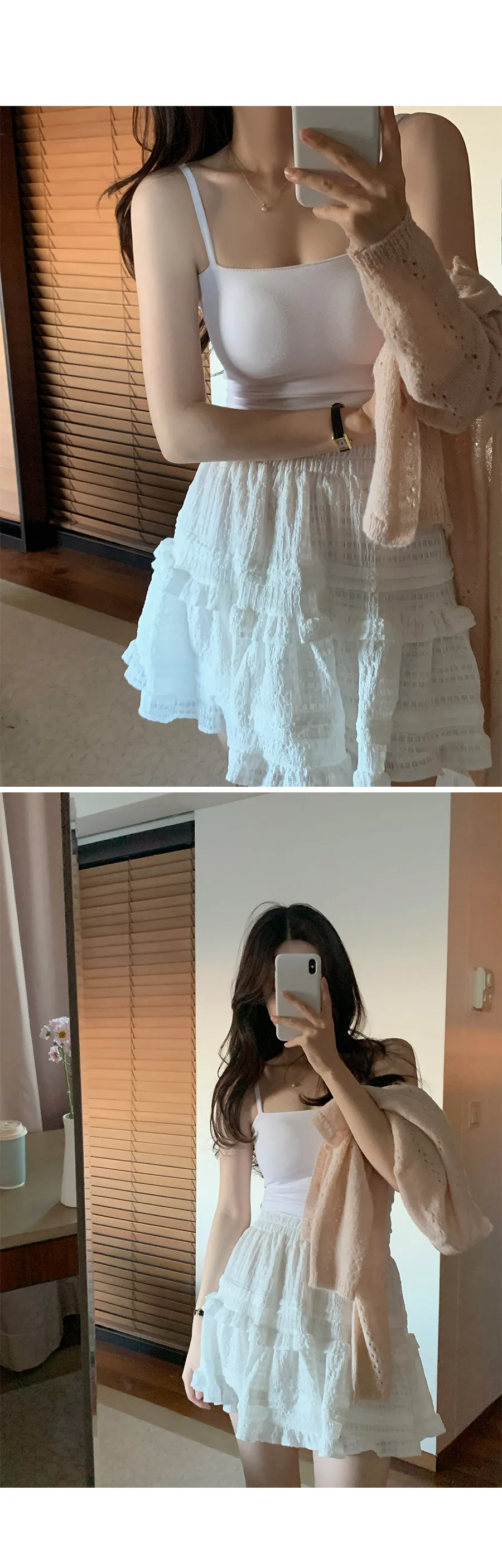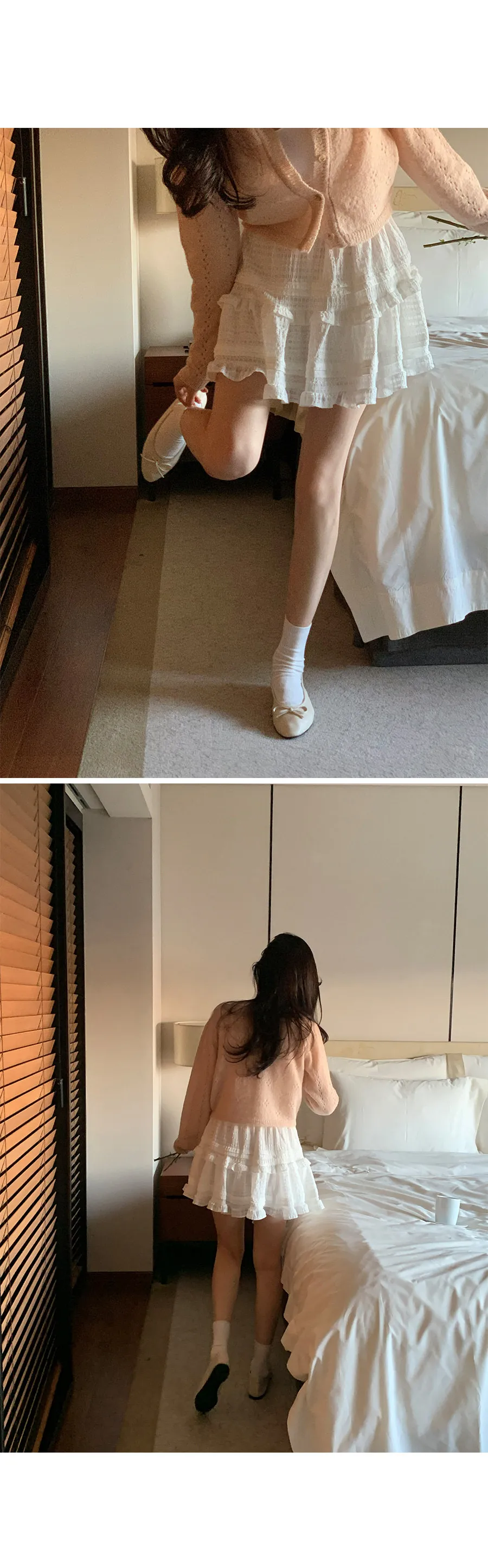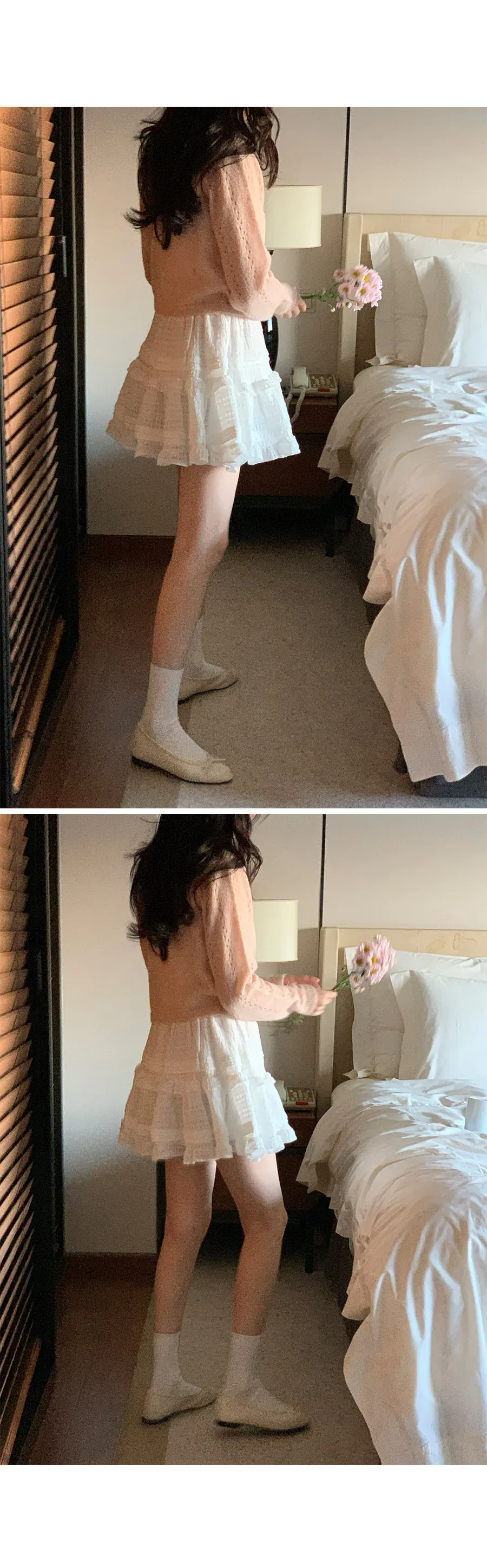 可愛氛圍褶皺蕾絲層次裙擺短褲裙