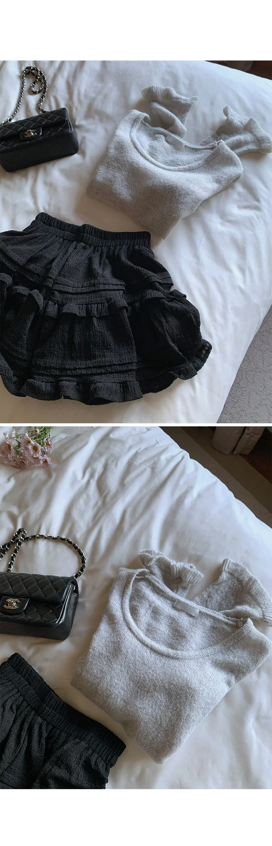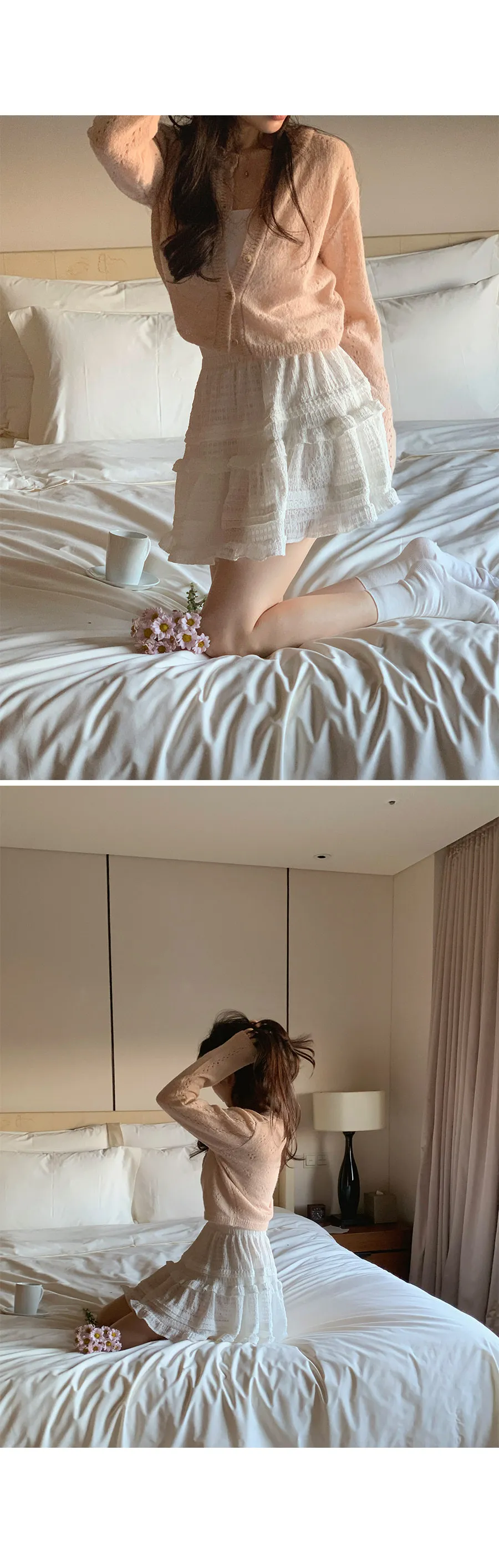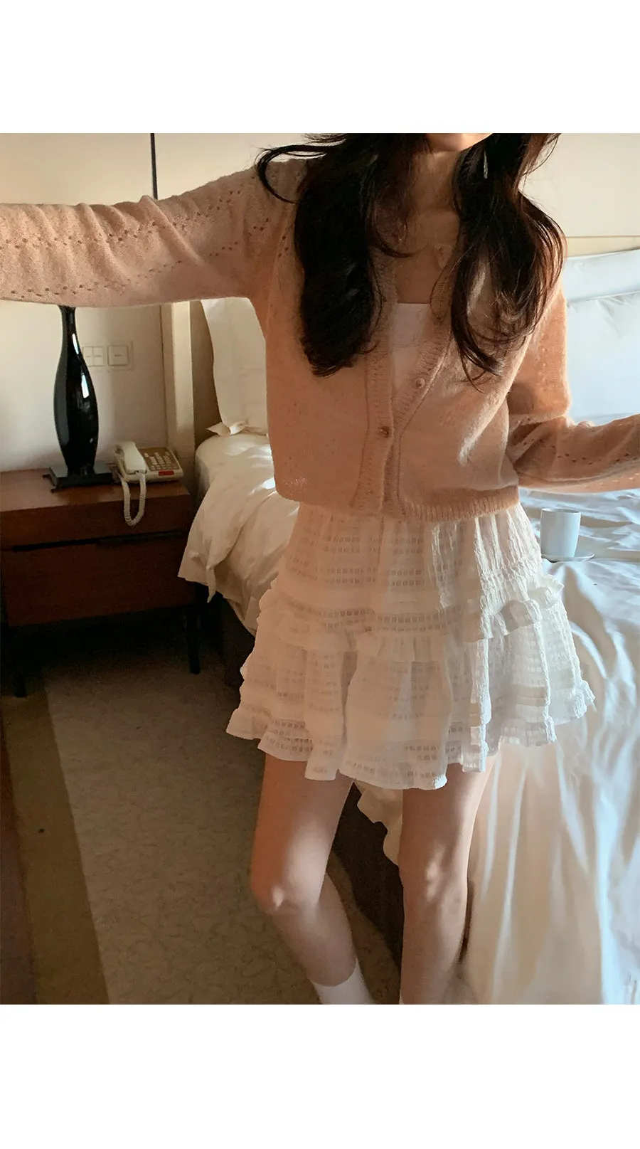 可愛氛圍褶皺蕾絲層次裙擺短褲裙