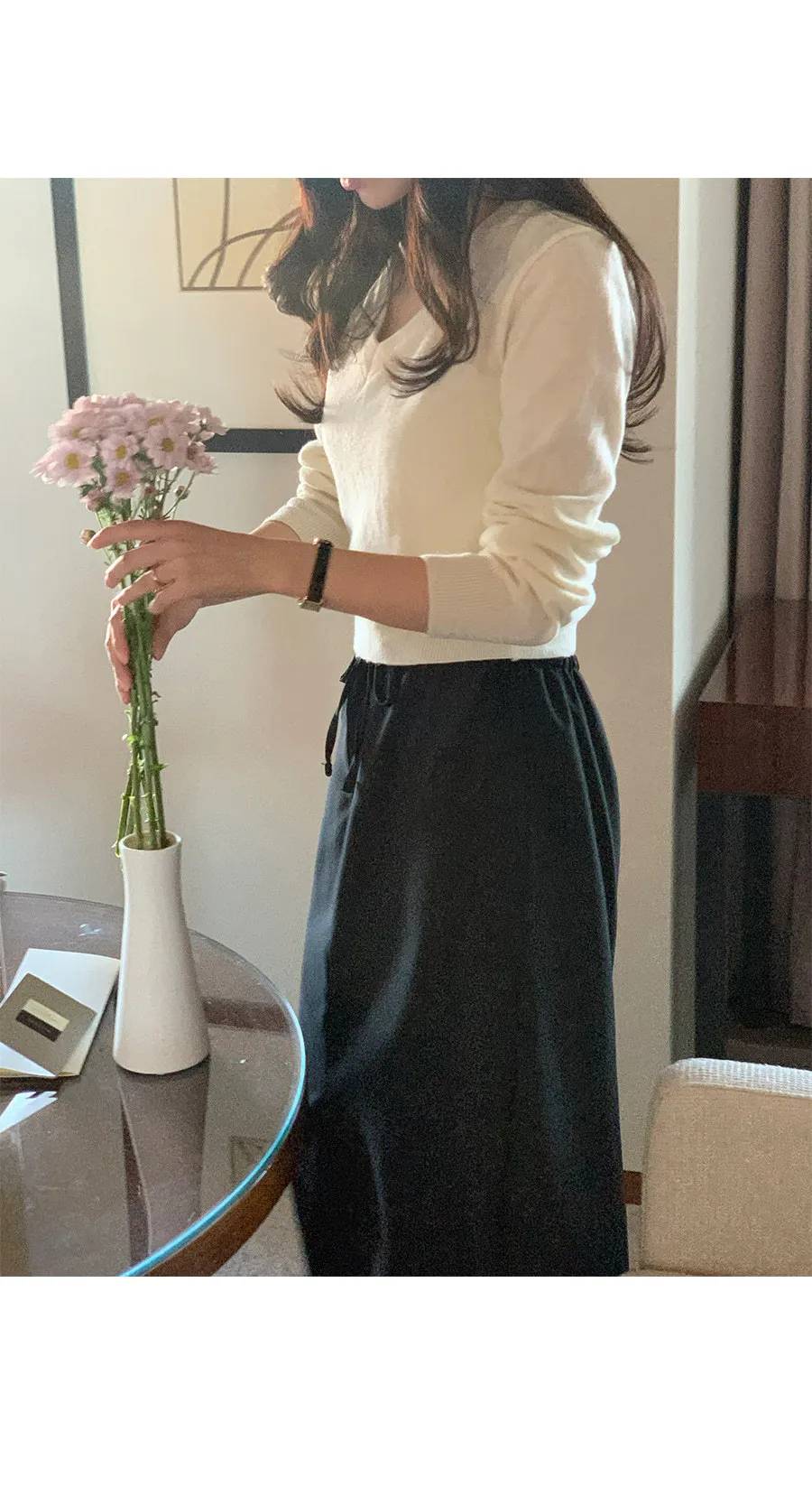 一種基本的針織品,具有乾淨的 V 領線條,顯得精緻,並且為標準版型,寬鬆度適中 ,非常適合日常穿著。 柔軟的針織材質穿著舒適,略薄的羊毛和羊絨混紡材質帶來舒適感, 是一款適合在季節之間分層穿著的實用單品讓您的裝扮休閒而又時尚! 這種針織品很容易與任何衣服搭配,例如牛仔褲或裙子,所以 想你會經常穿它! 它有 4 種顏色,並且 有適合季節的各種顏色:)
