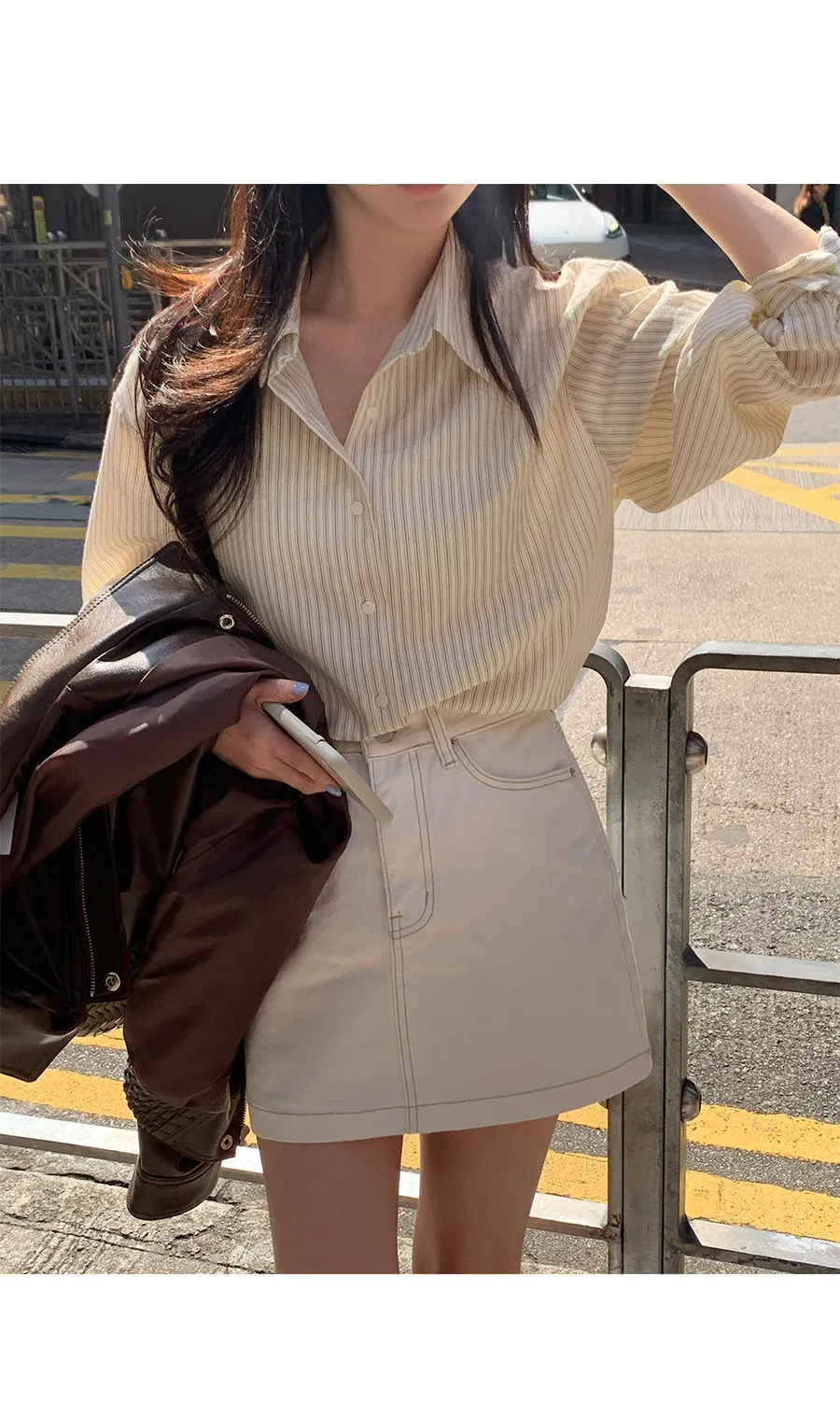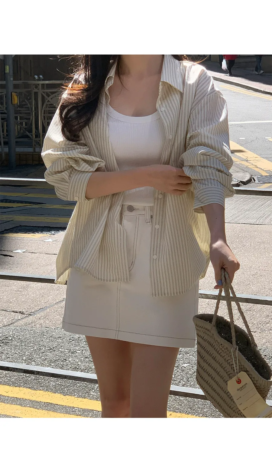 增添微妙感的條紋襯衫。這是一件寬鬆襯衫,適合任何體型,厚度較輕,採用亞麻混紡材質 ,除冬季外,四季均可穿著, 實用性強,顏色淡雅但不過分的條紋圖案, 可輕鬆搭配各種造型 。現代而乾淨的設計和服裝非常適合日常穿著,並且 可以與牛仔褲、裙子和休閒褲等任何下裝完美搭配, 因此您可以穿著它來打造正式造型或作為賓客造型,:)
