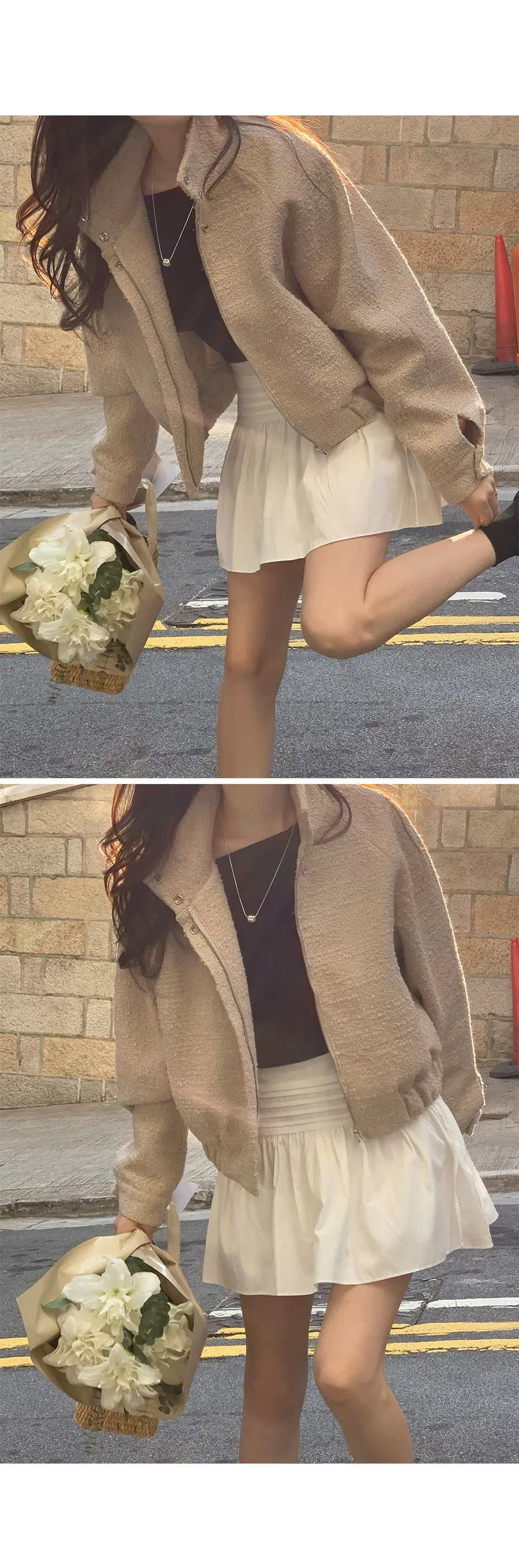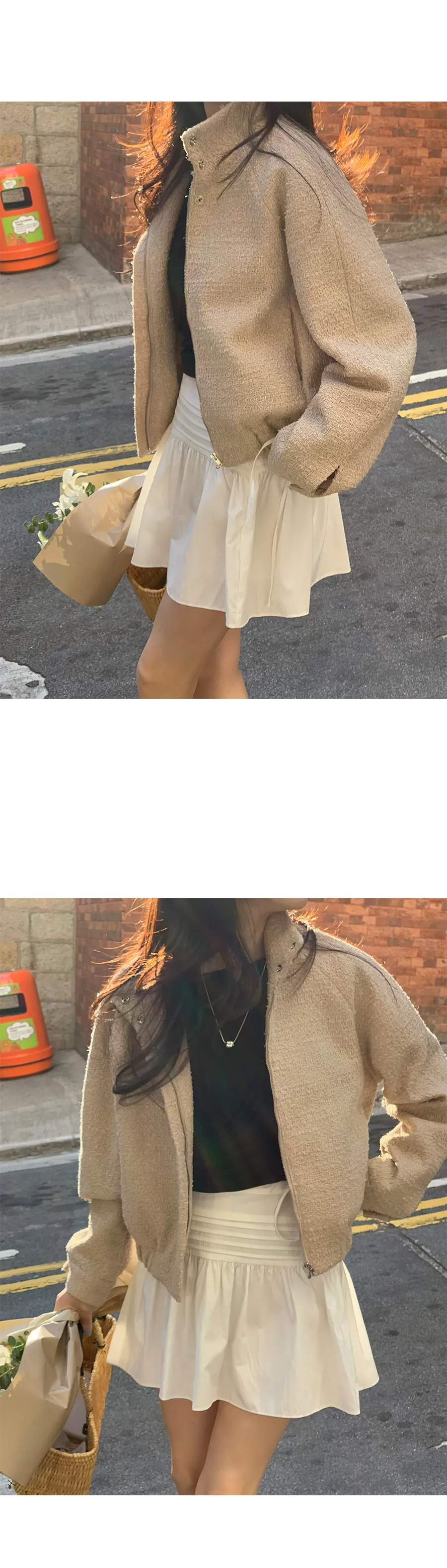 非常適合時尚享受的花呢半高領口外套。這款外套採用寬鬆的設計,帶來休閒感,同時採用花呢材質,散發出女性氣息 。這款半短外套非常適合中期休閒穿著,袖子和領口上的開合銀色鈕扣增添了微妙的點綴。 它更加實用,因為它可以用拉鍊和銀色鈕扣雙開合 ,半高領口讓您可以在寒冷的天氣裡穿著它,只需將拉鍊一直拉到上面 即可遮住您的脖子。袖子和下擺上的帶狀細節 提供了更舒適的穿著體驗,休閒而又女性化,這是一款您不想錯過的產品:)