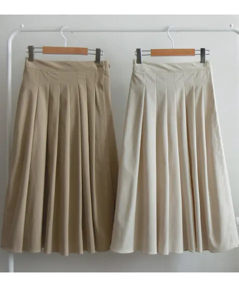 [腰部鈕扣可調節] [裹身式裙子] [質感高密度布料] [時尚的褶皺展現迷人線條] [明亮色彩給人季節感] [推薦作為適合搭配的邊緣合身褶皺裙]