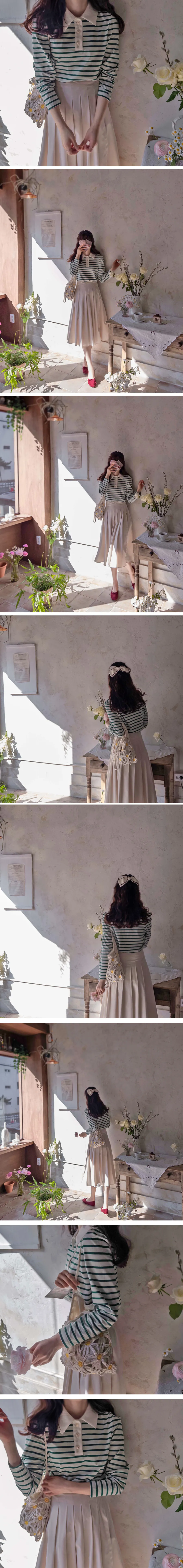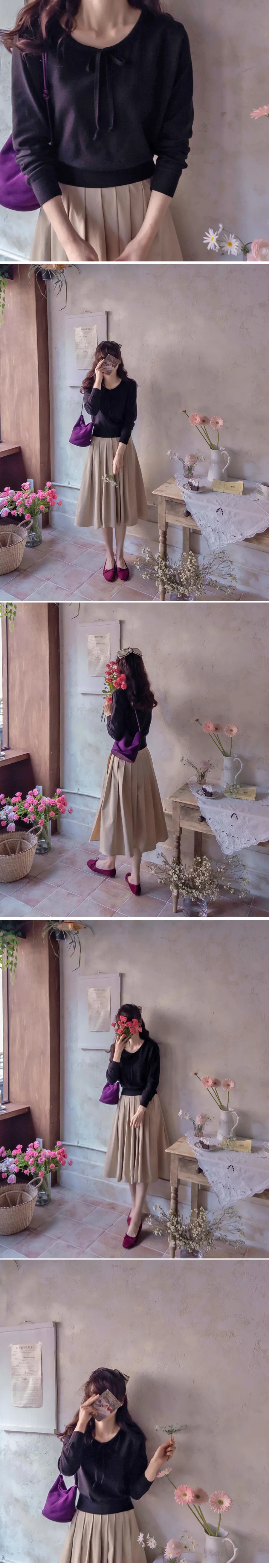 優雅氛圍領口綁帶柔軟彈性針織上衣